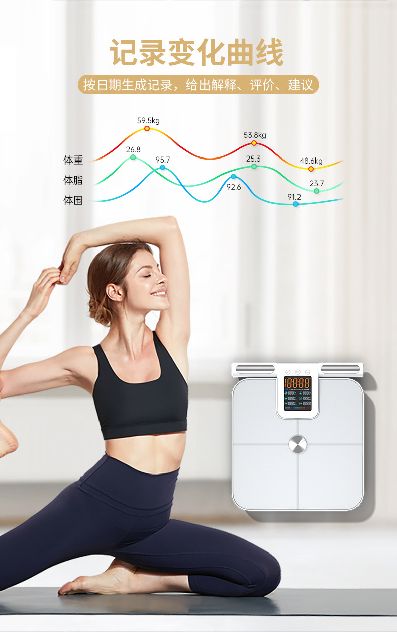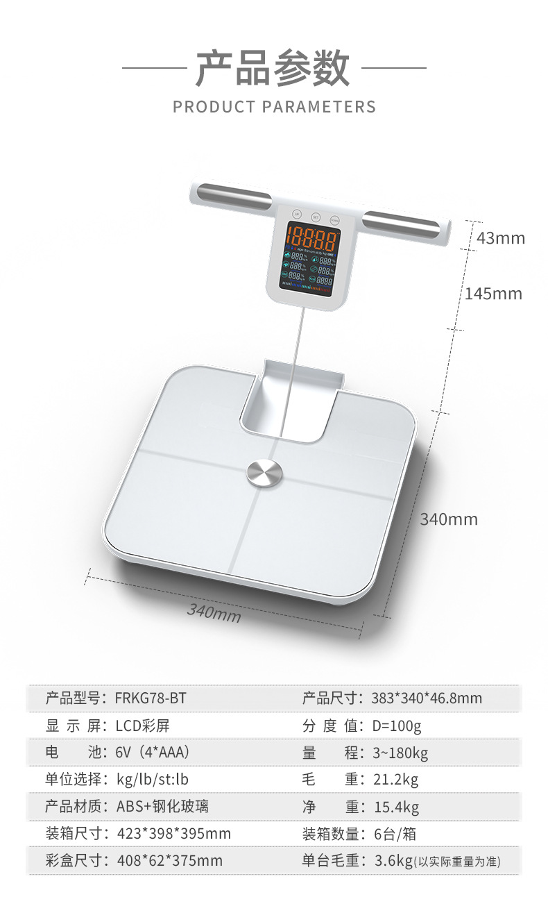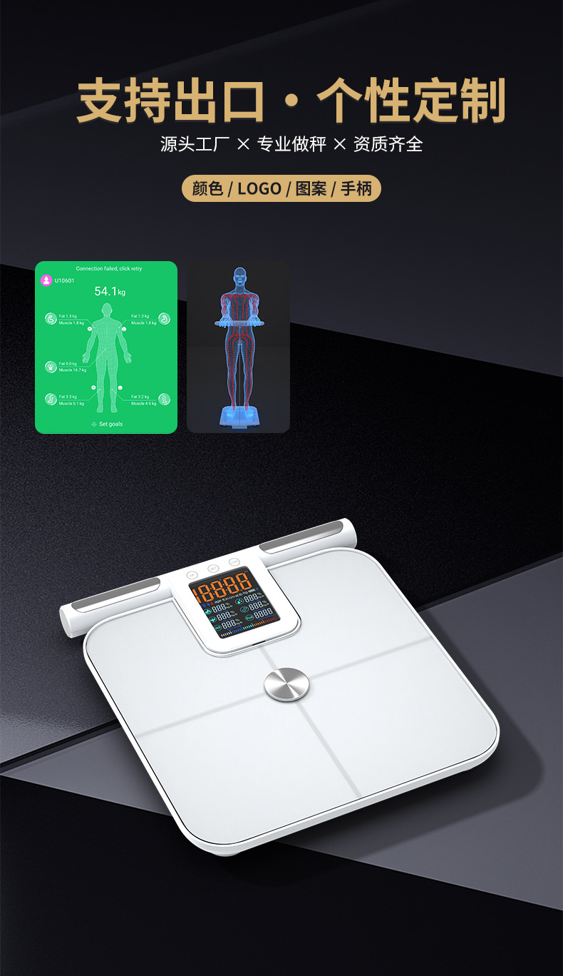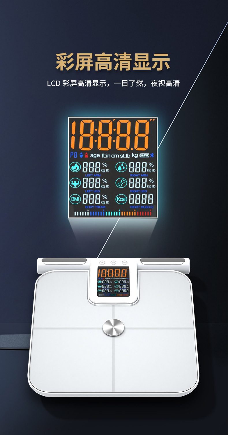 福瑞康八电极体脂秤工厂智能体脂秤外贸跨境大量程称重测脂体脂秤