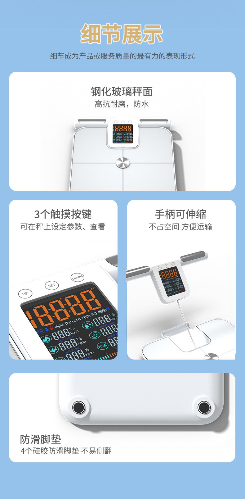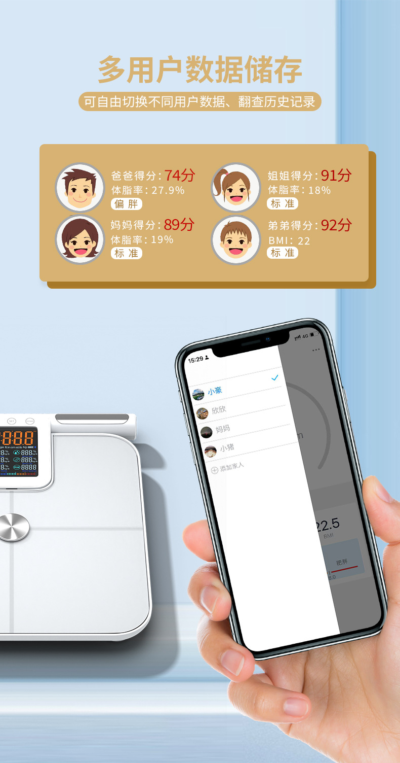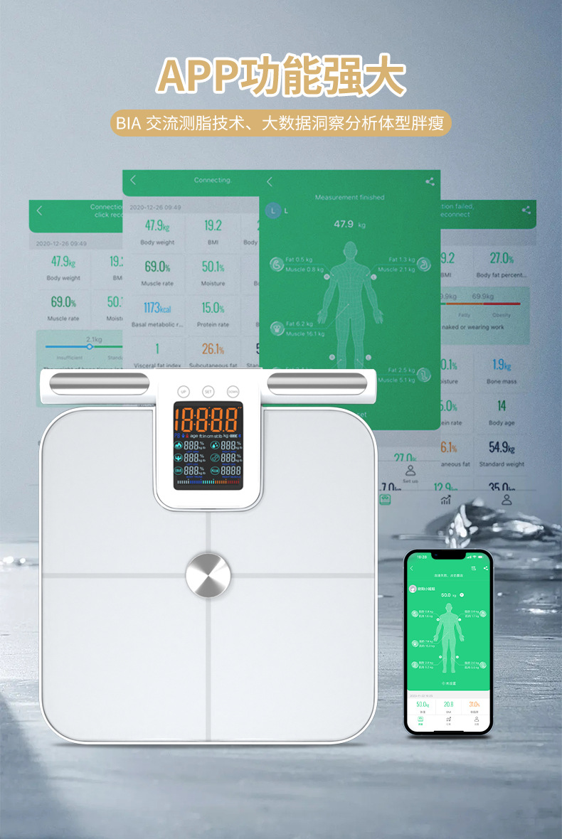 福瑞康八电极体脂秤工厂智能体脂秤外贸跨境大量程称重测脂体脂秤