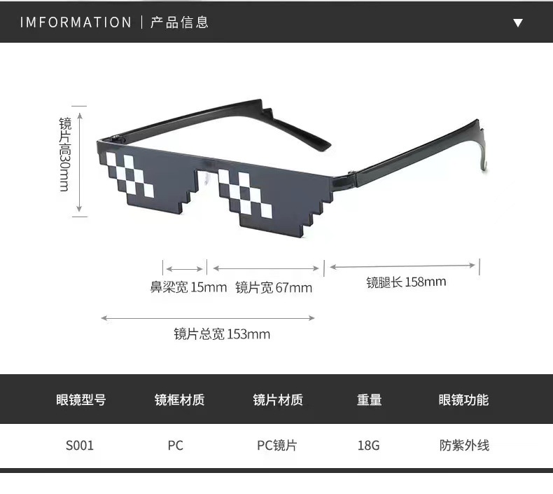 个性马赛克眼镜二次元搞怪墨镜 蹦迪搞笑太阳镜派对婚礼像素眼镜