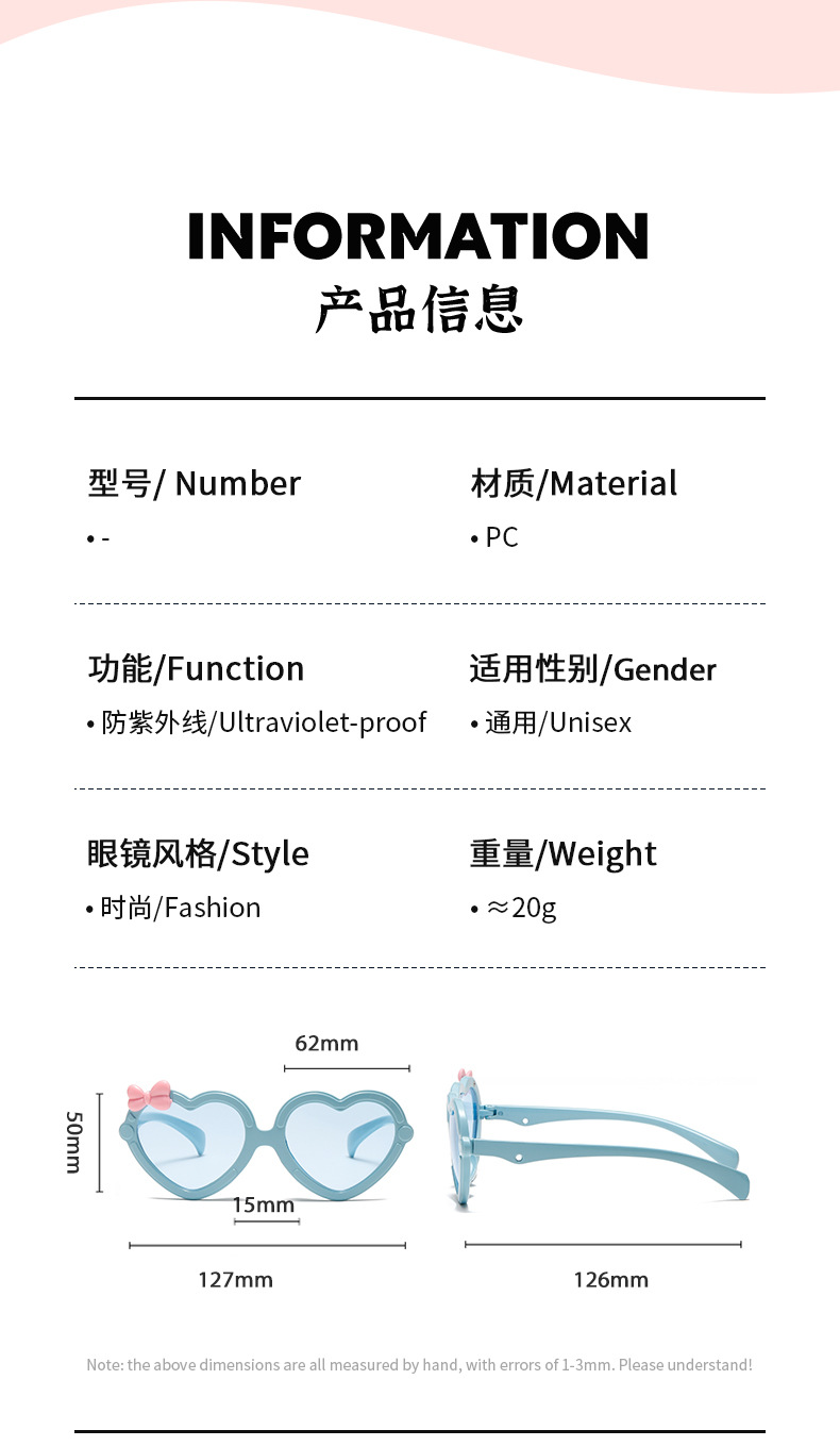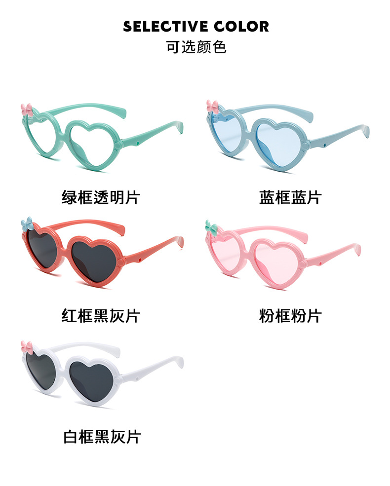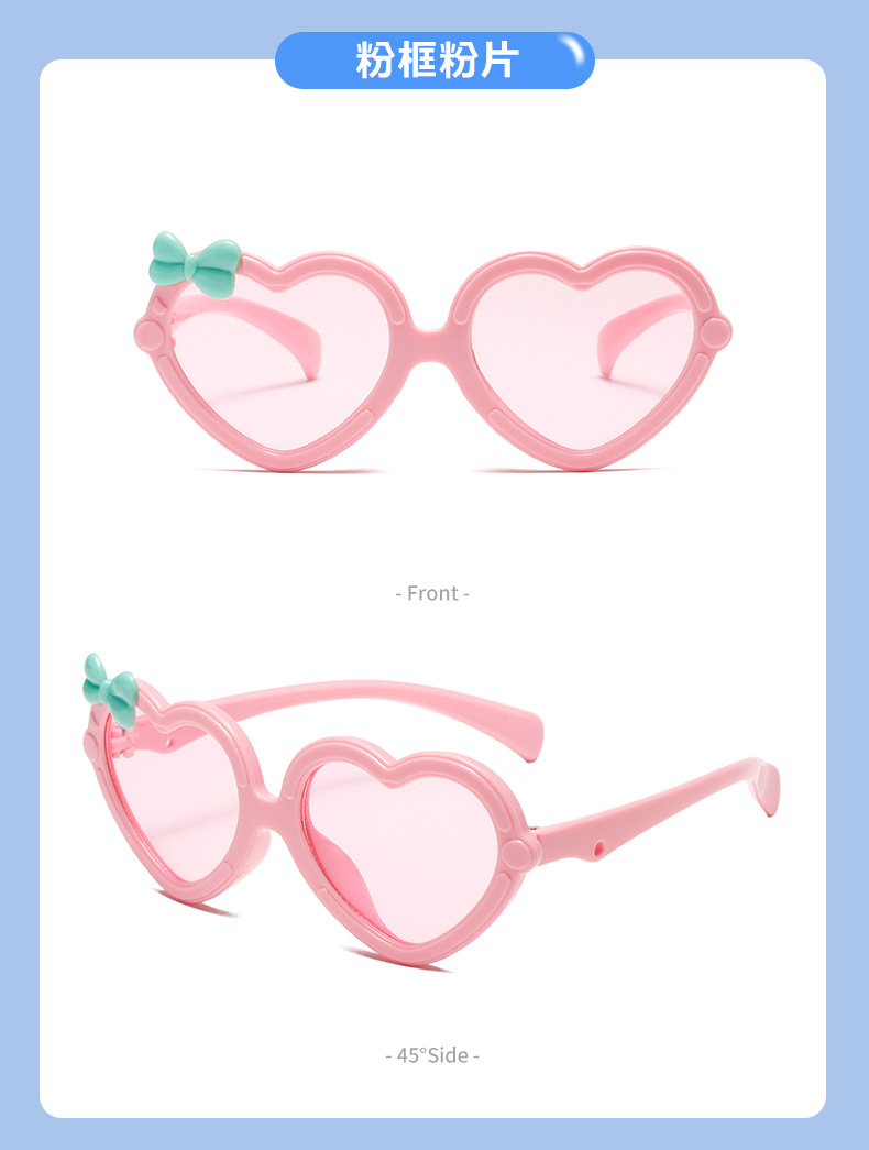 新款儿童爱心太阳镜可爱少女异形桃心眼镜多色派对镜心形墨镜批发