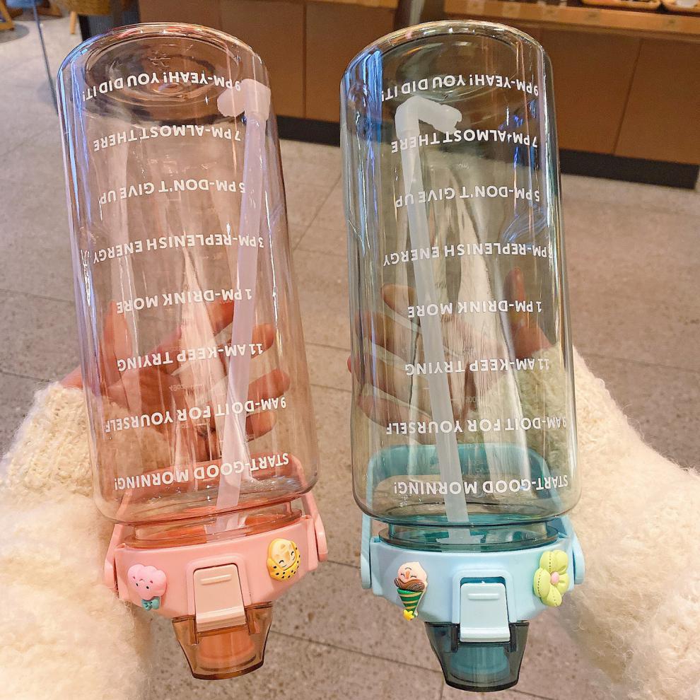大容量塑料水杯夏季高颜值简约便携太空杯户外运动健身弹盖吸管杯
