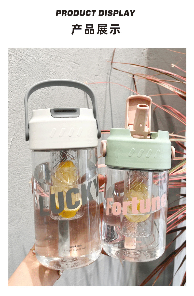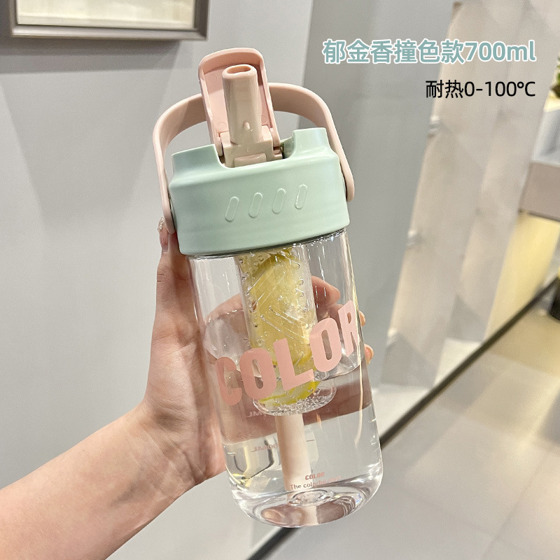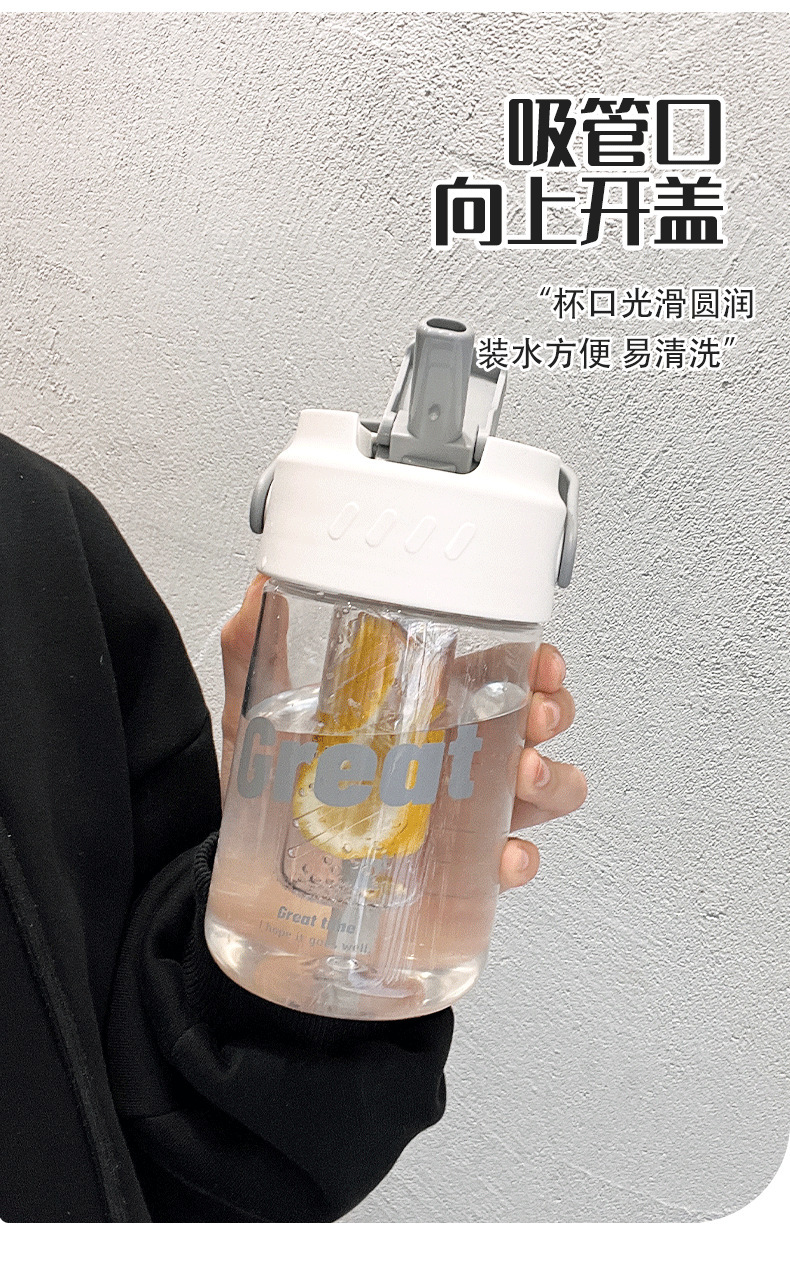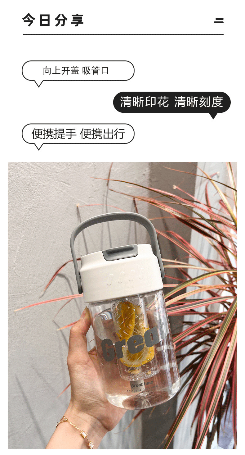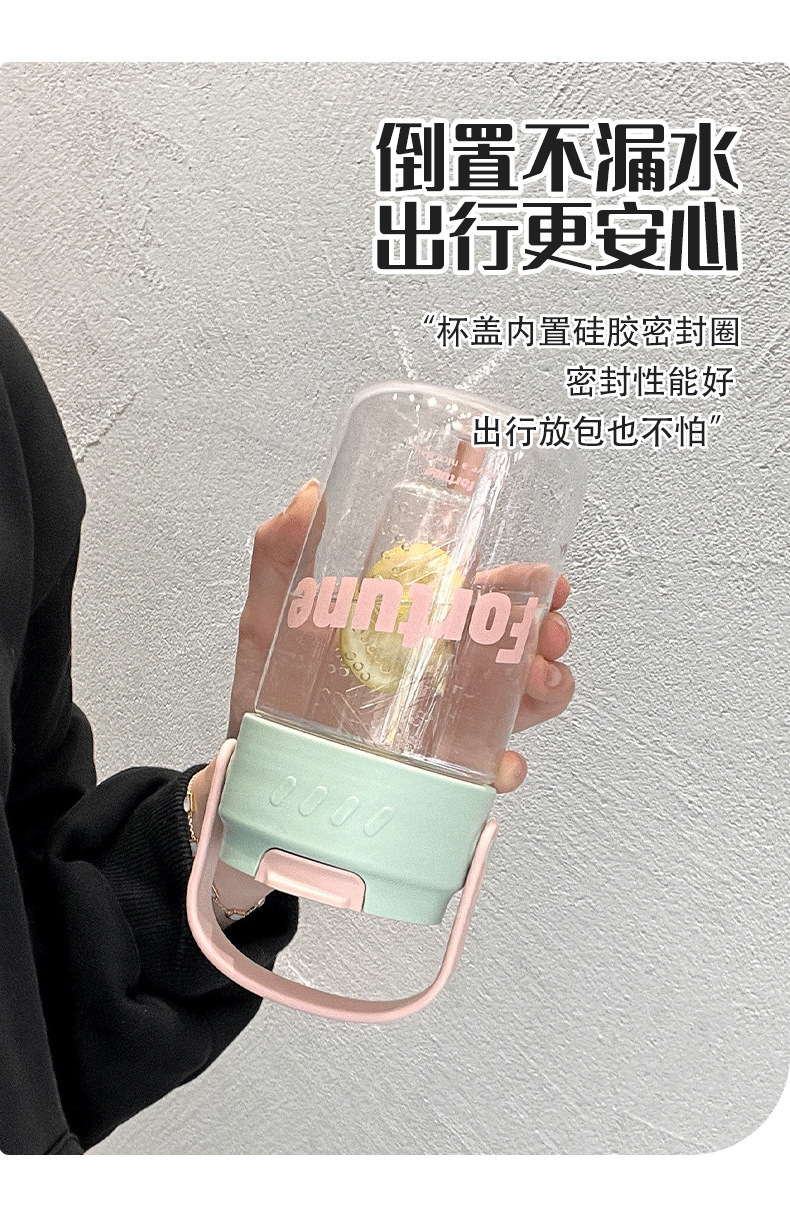 高颜值塑料水杯女生大容量夏季果茶杯学生上学专用便携带吸管杯子