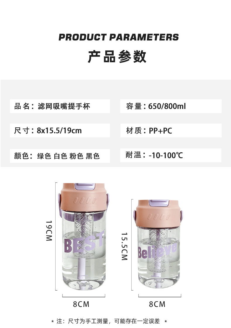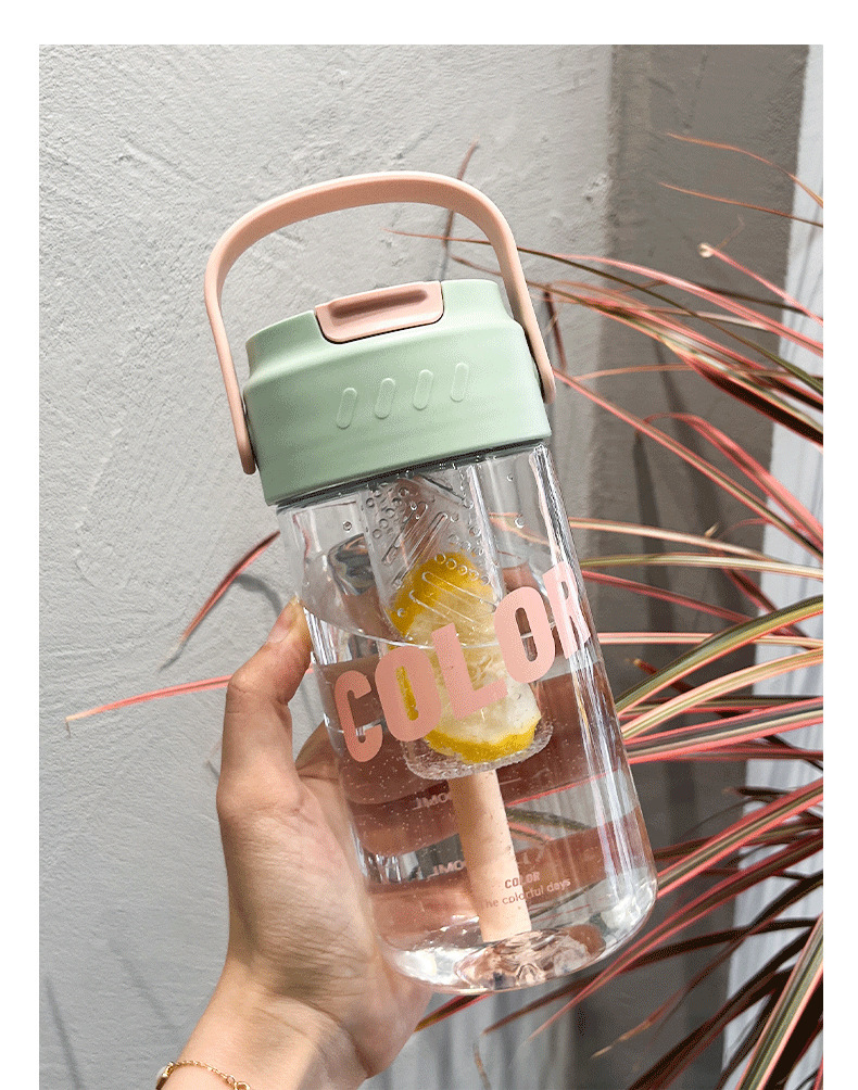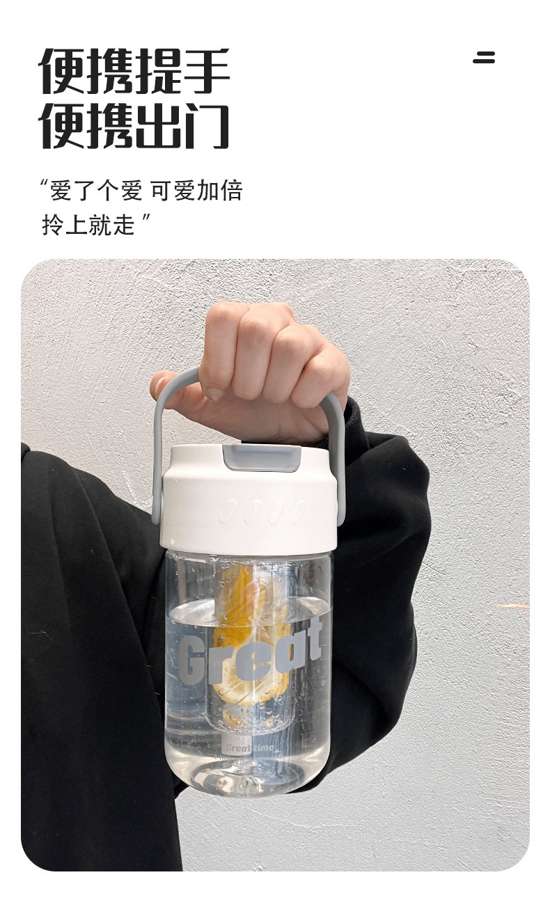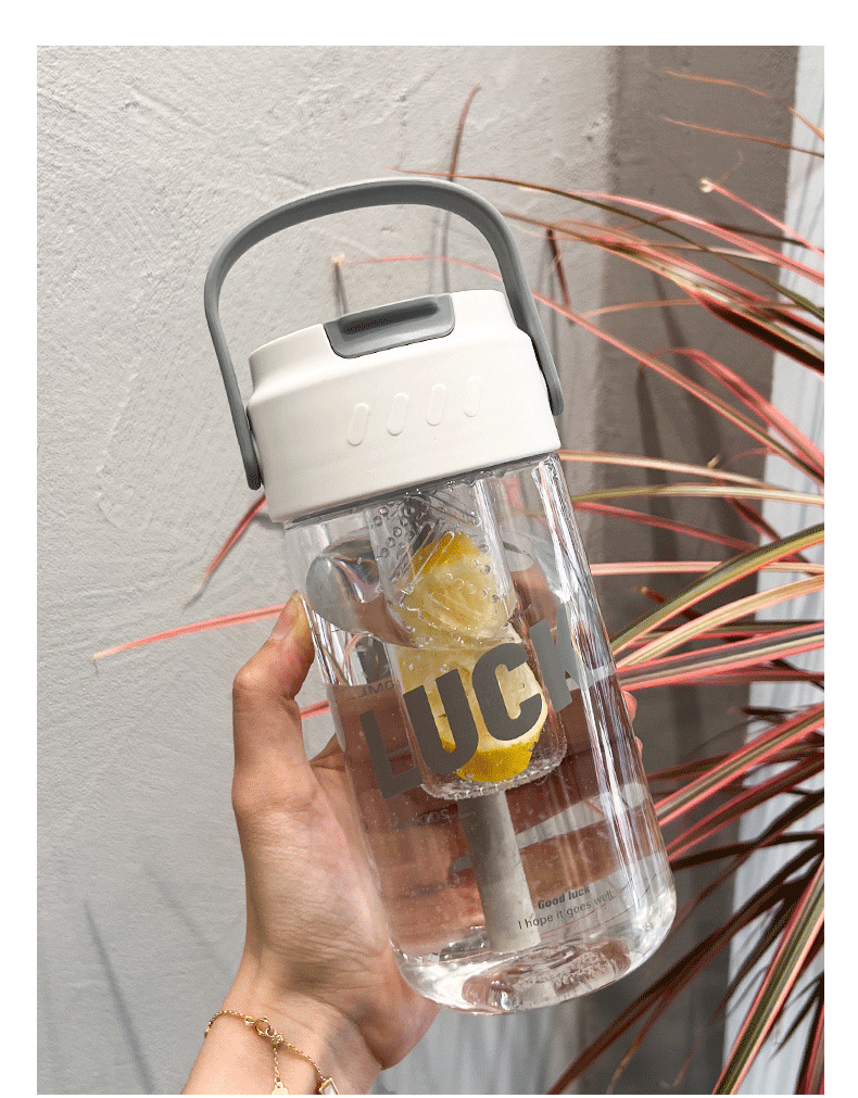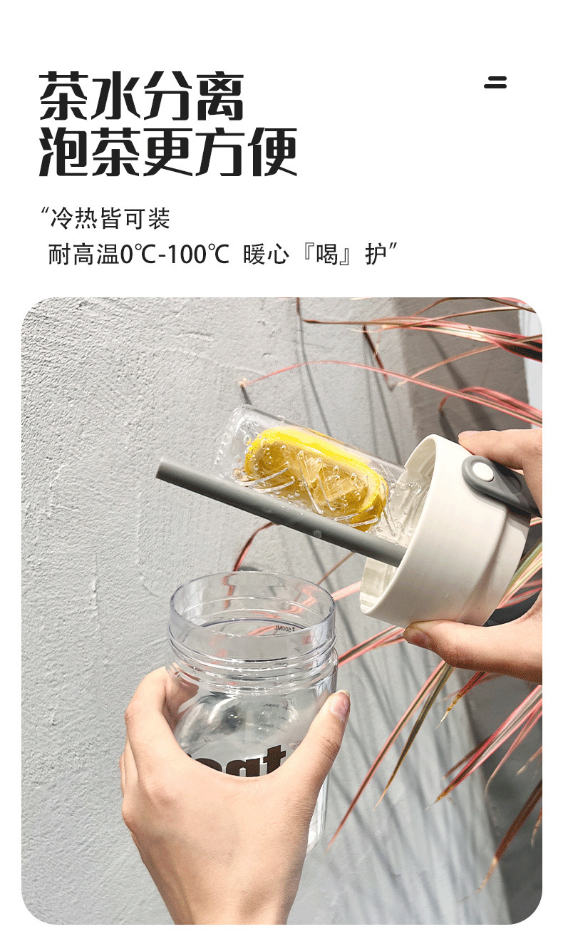高颜值塑料水杯女生大容量夏季果茶杯学生上学专用便携带吸管杯子