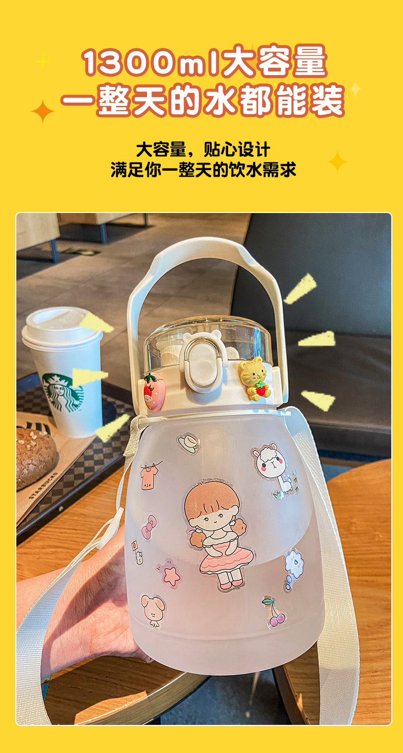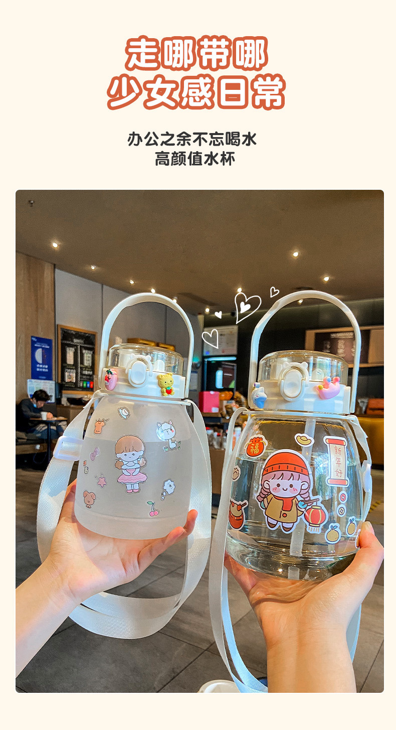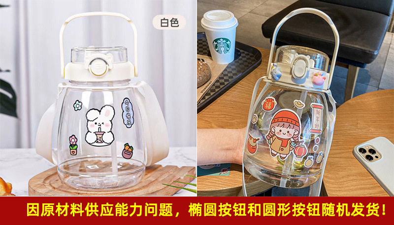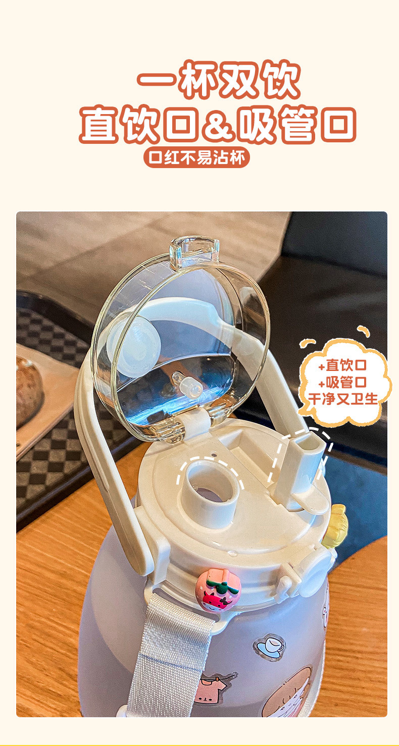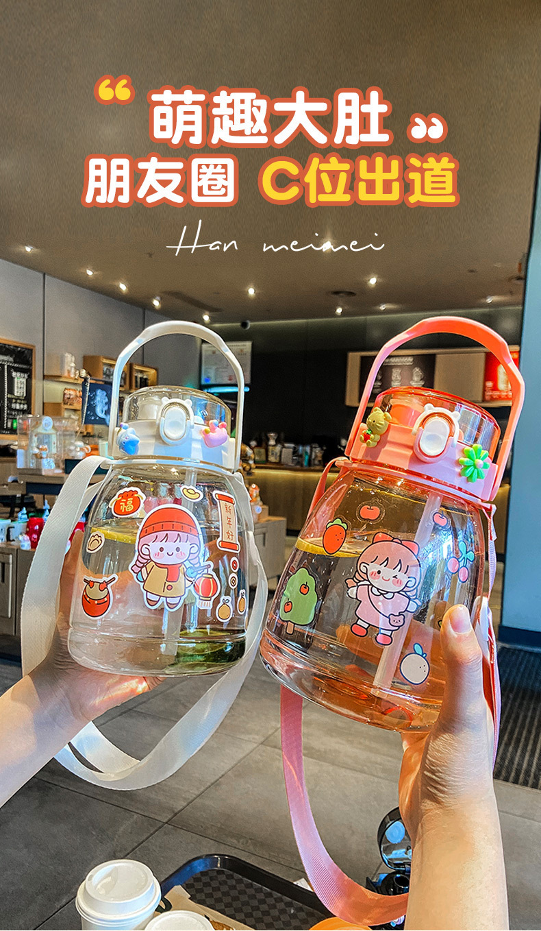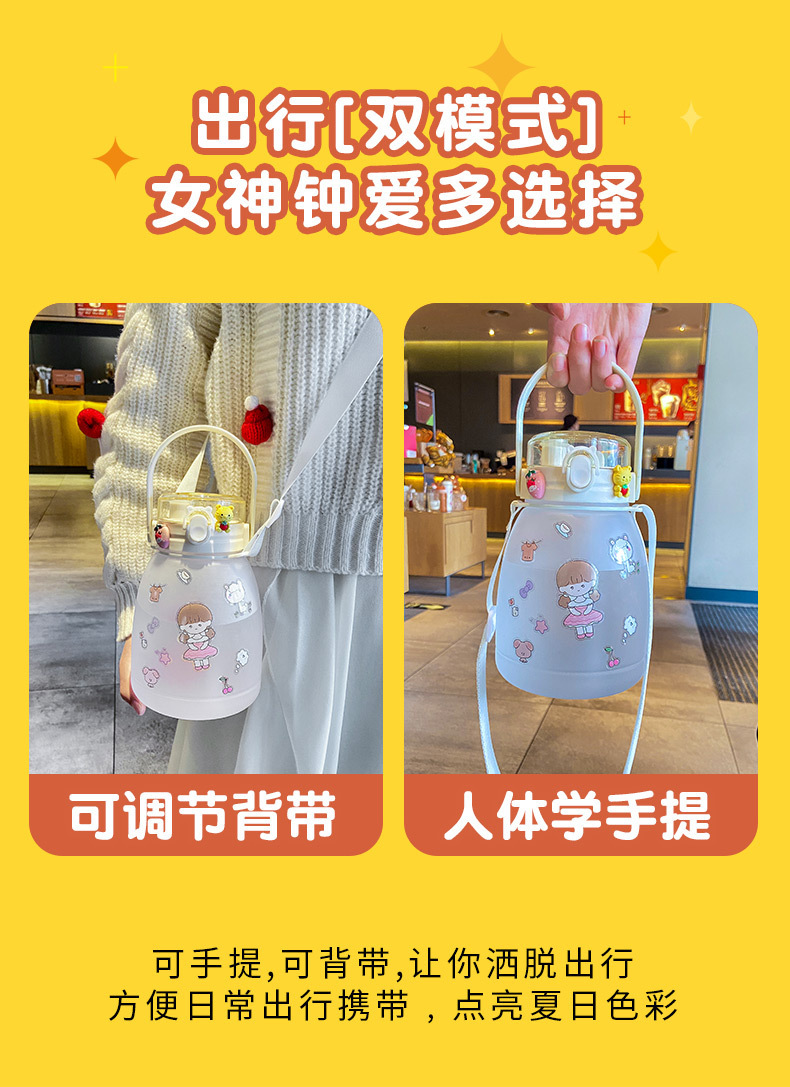 大肚杯女水杯高颜值夏季大容量儿童背带超大水壶吨吨桶便携吸管杯