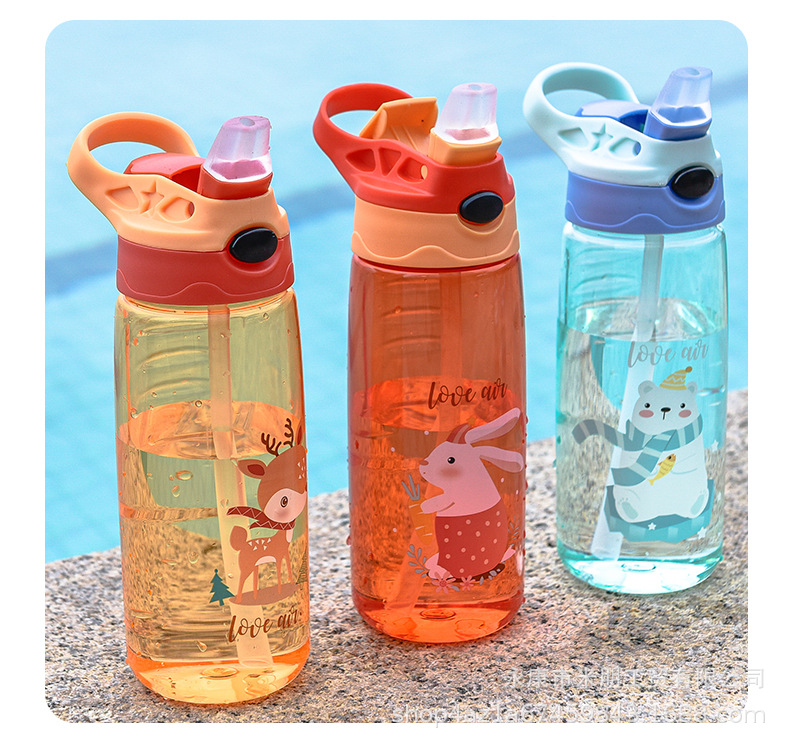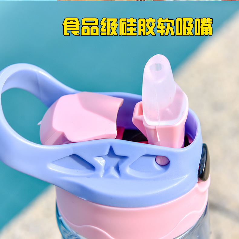 大容量亮仔塑料杯儿童星星吸管水杯夏季运动男女卡通鸭嘴杯幼儿杯