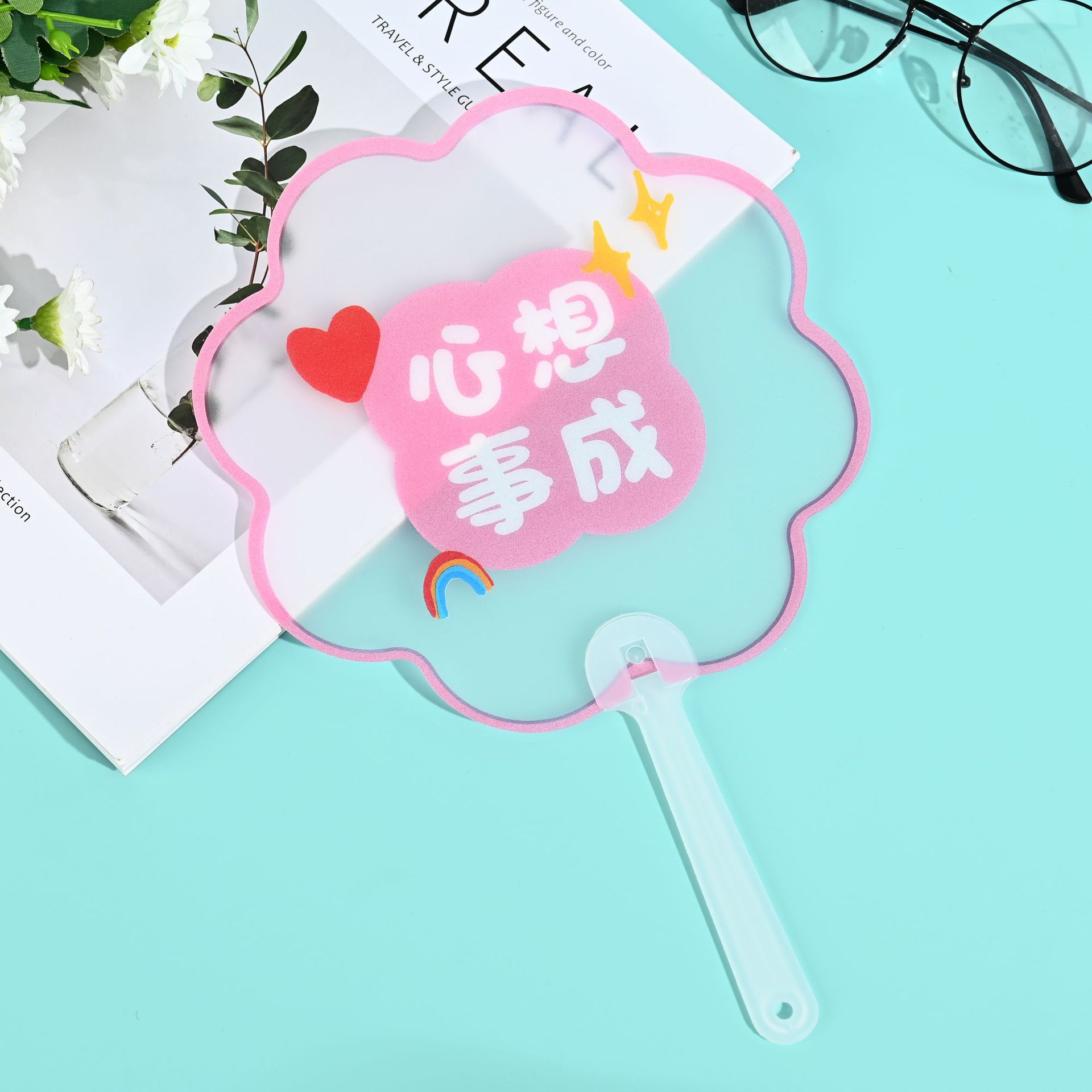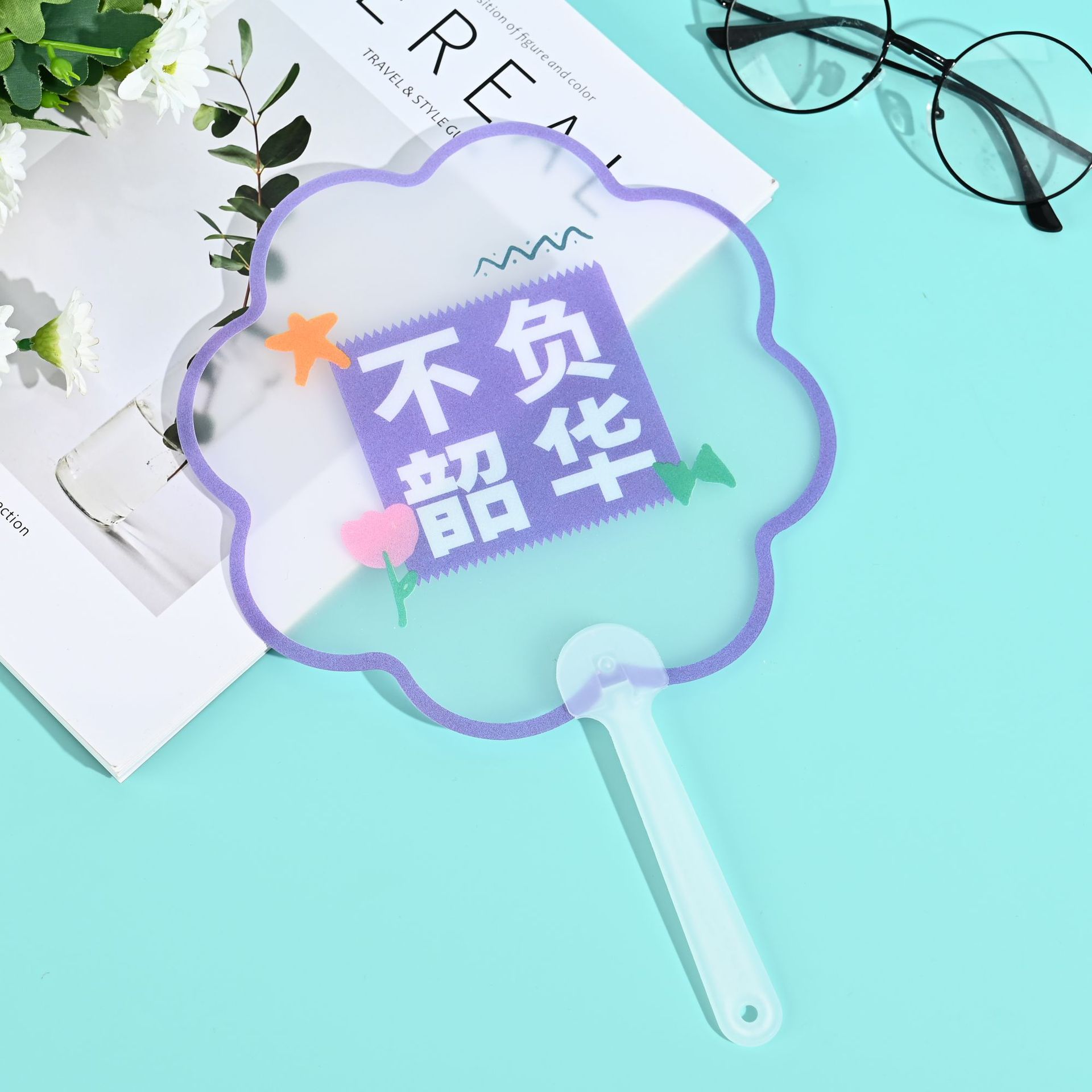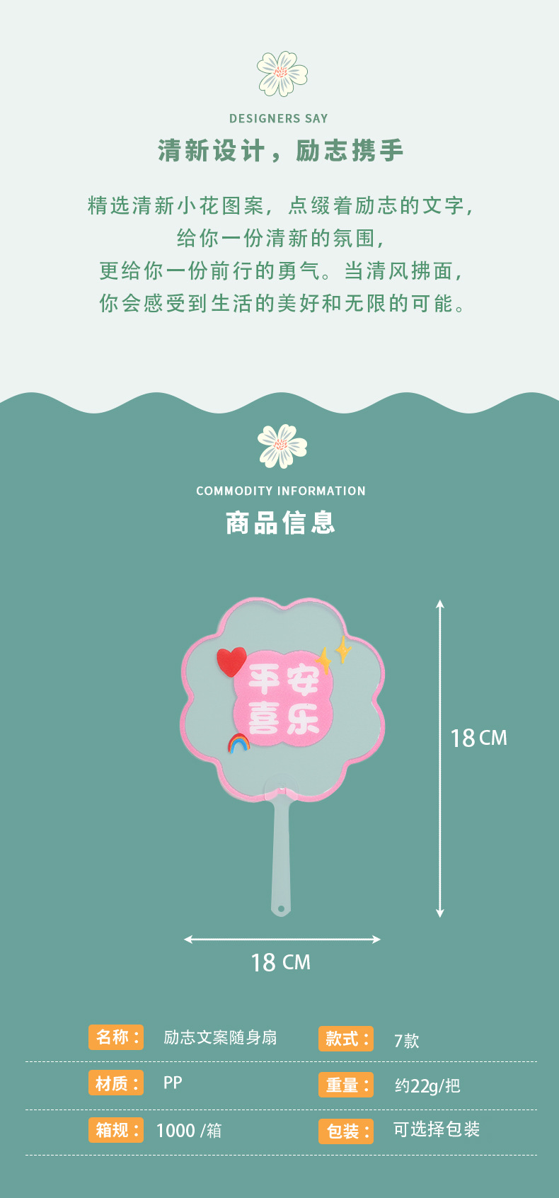 励志文字扇子夏季圆扇创意pp扇子迷你便携手摇扇广告扇可加印LOGO
