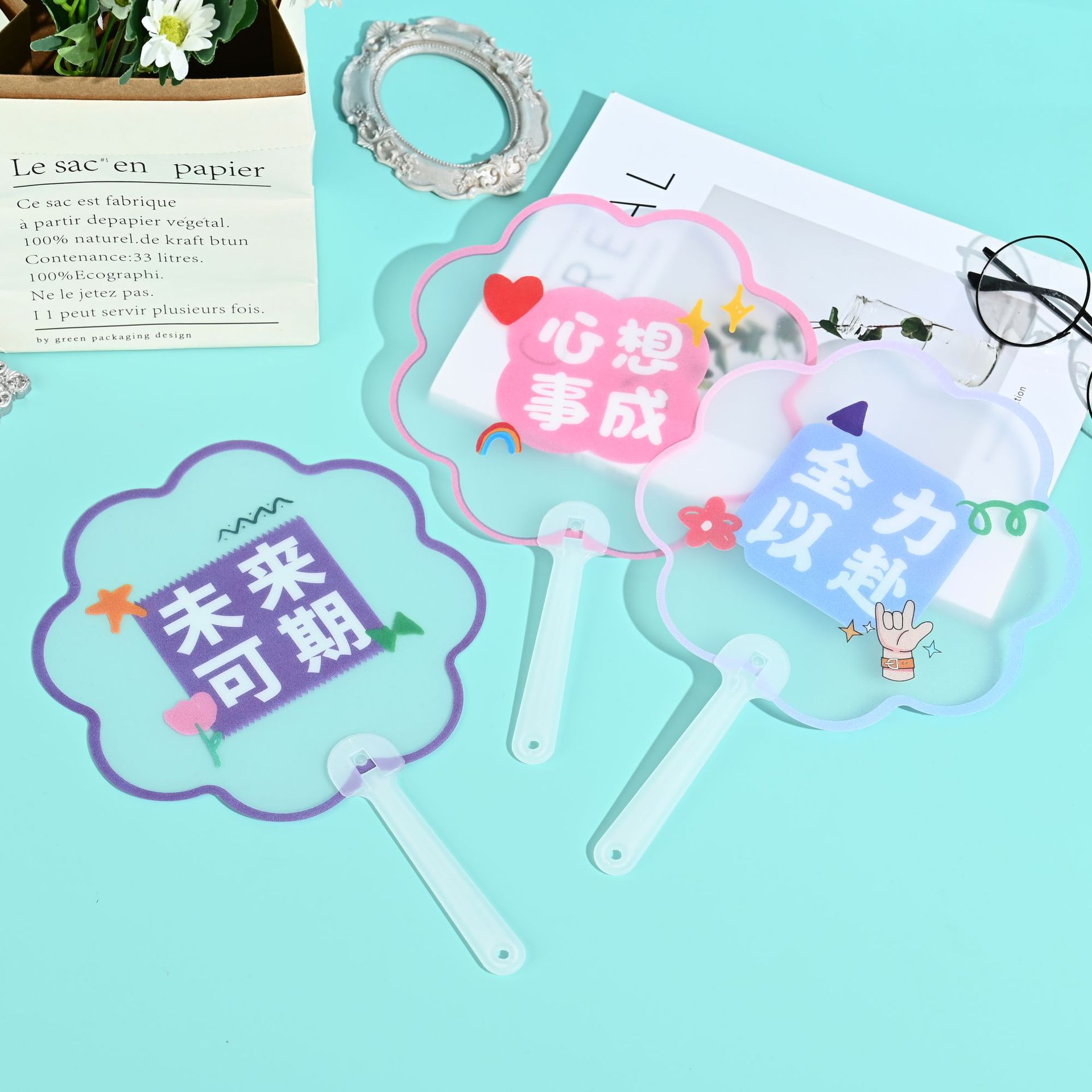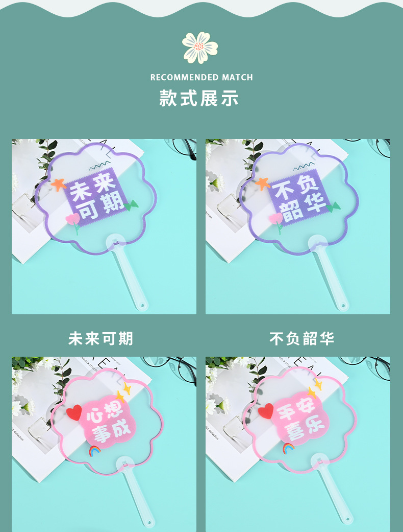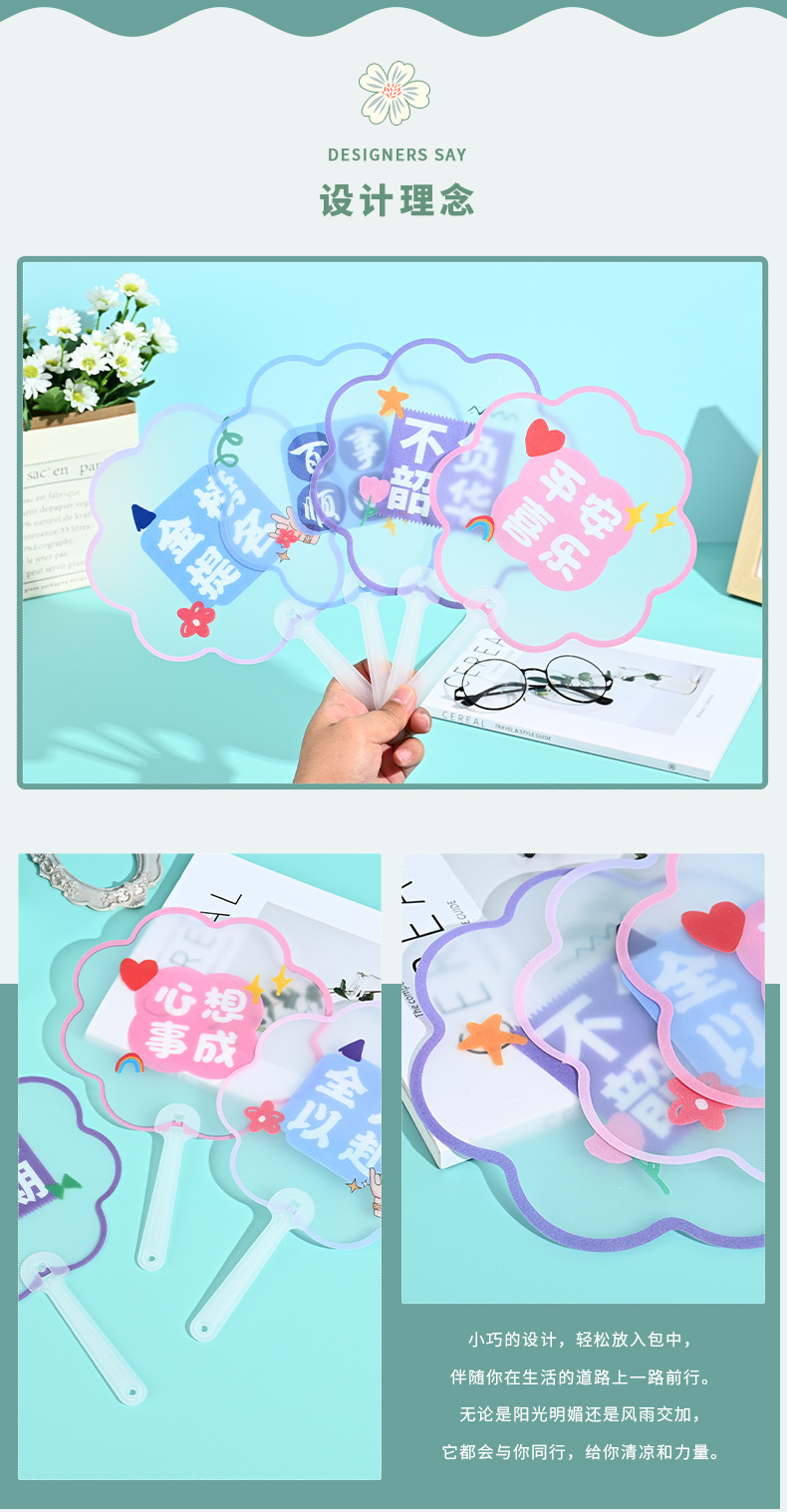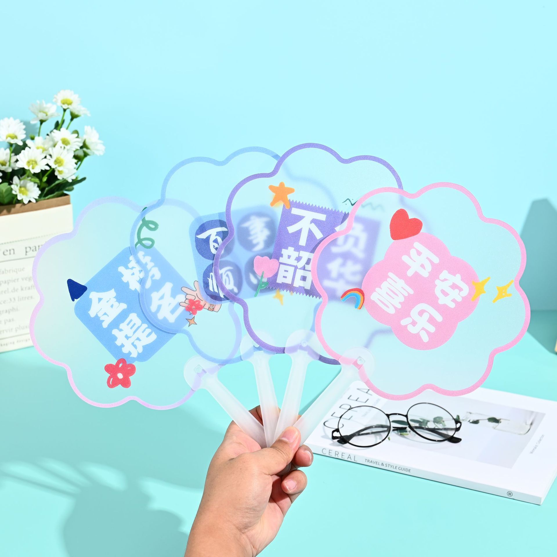 励志文字扇子夏季圆扇创意pp扇子迷你便携手摇扇广告扇可加印LOGO