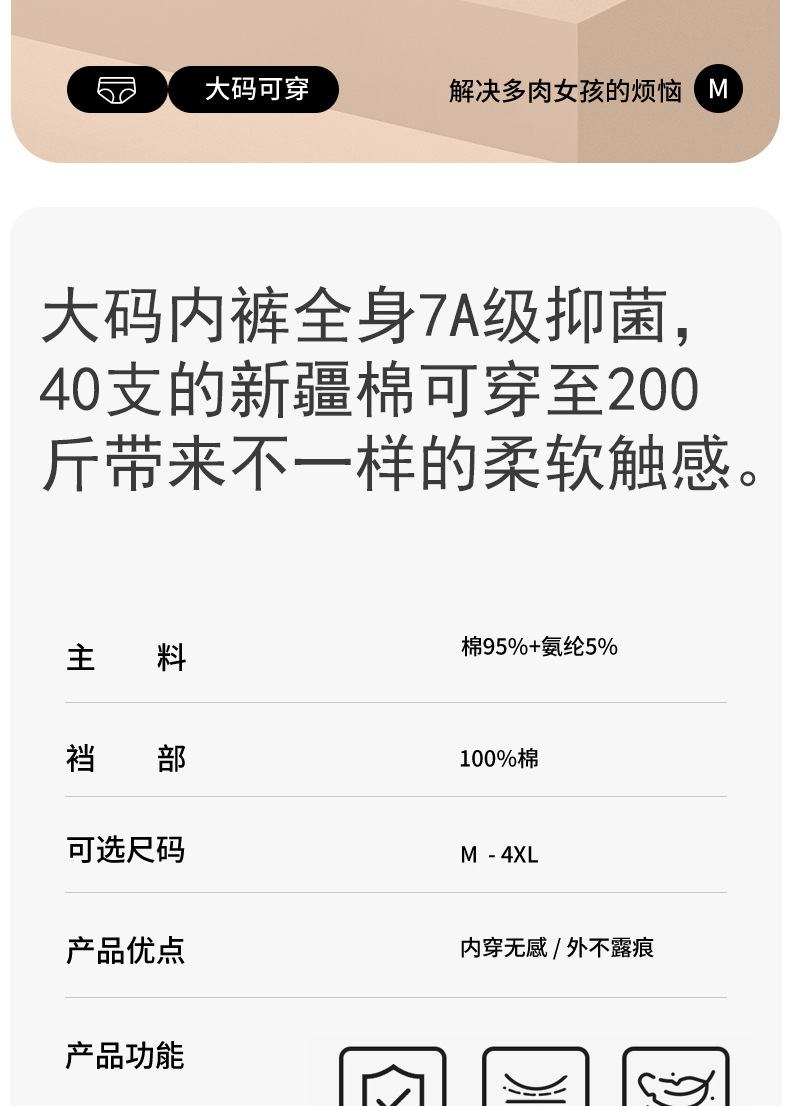 大码内裤女纯棉a类200斤不夹臀薄款抗 菌裆三角裤加肥加大纯棉