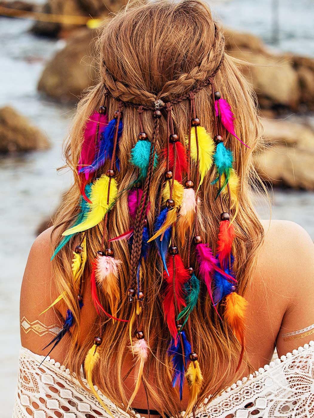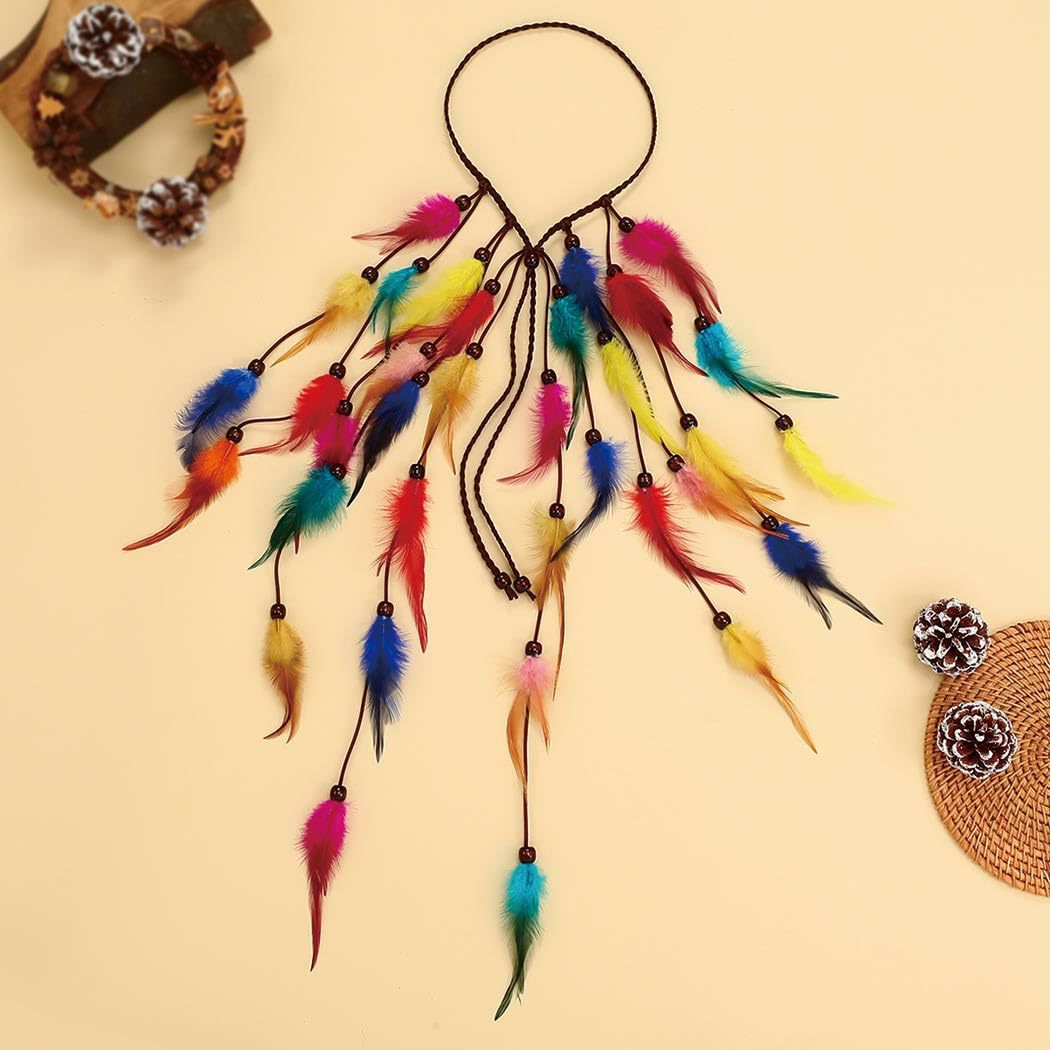 跨境波西米亚彩色羽毛发带 2025彩色羽毛头饰印第安彩色羽毛发饰