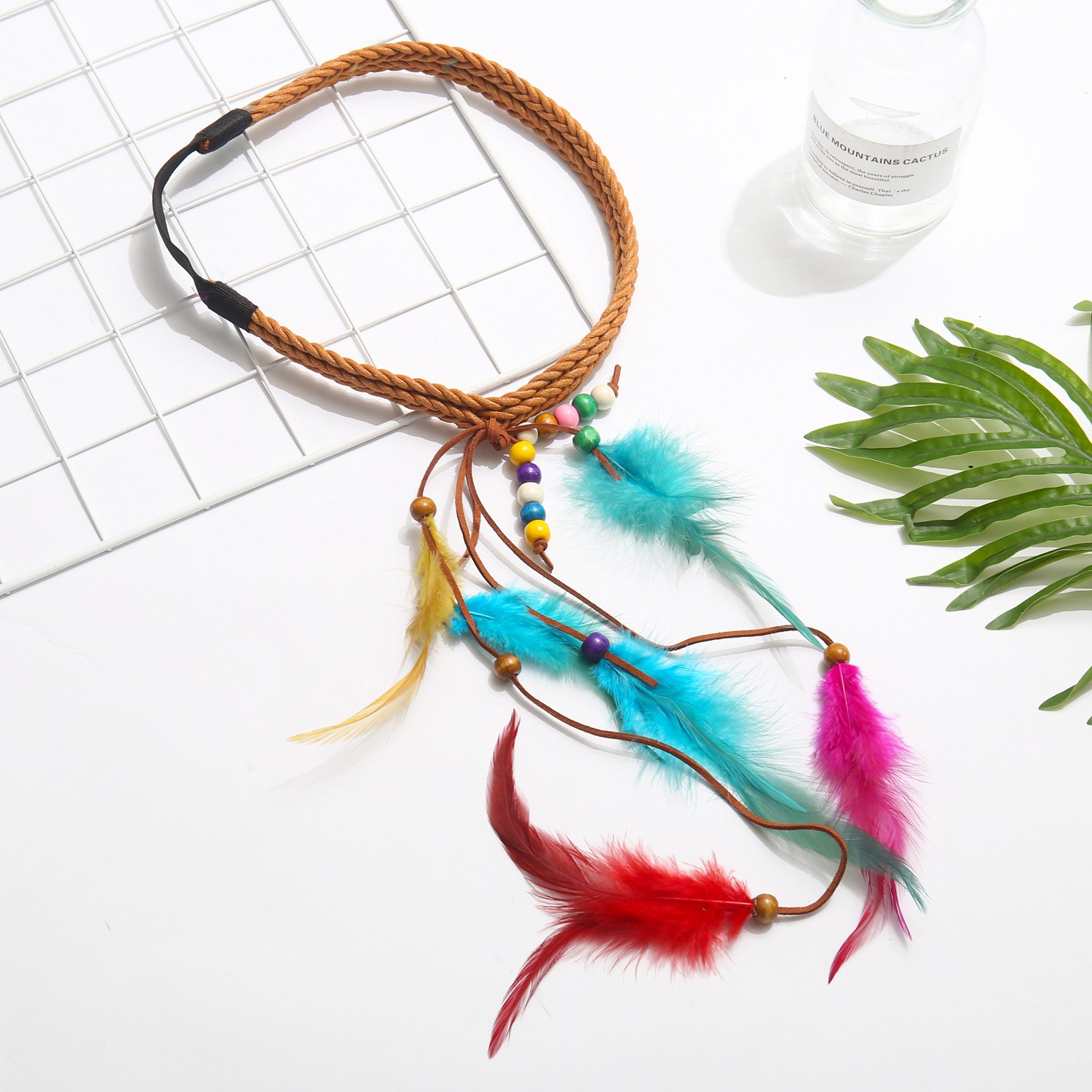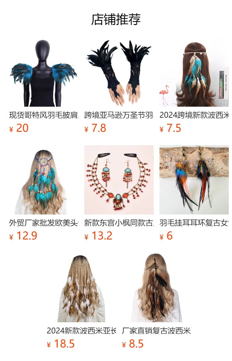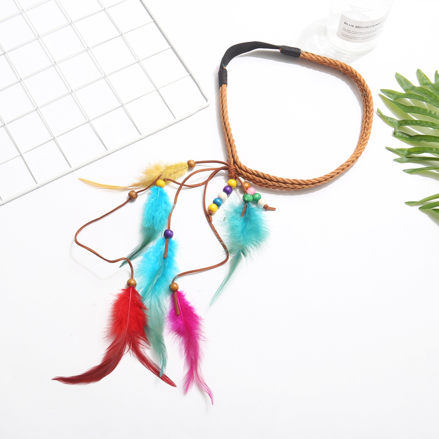 复古民族风格串珠头带人造羽毛流苏头饰女式发饰