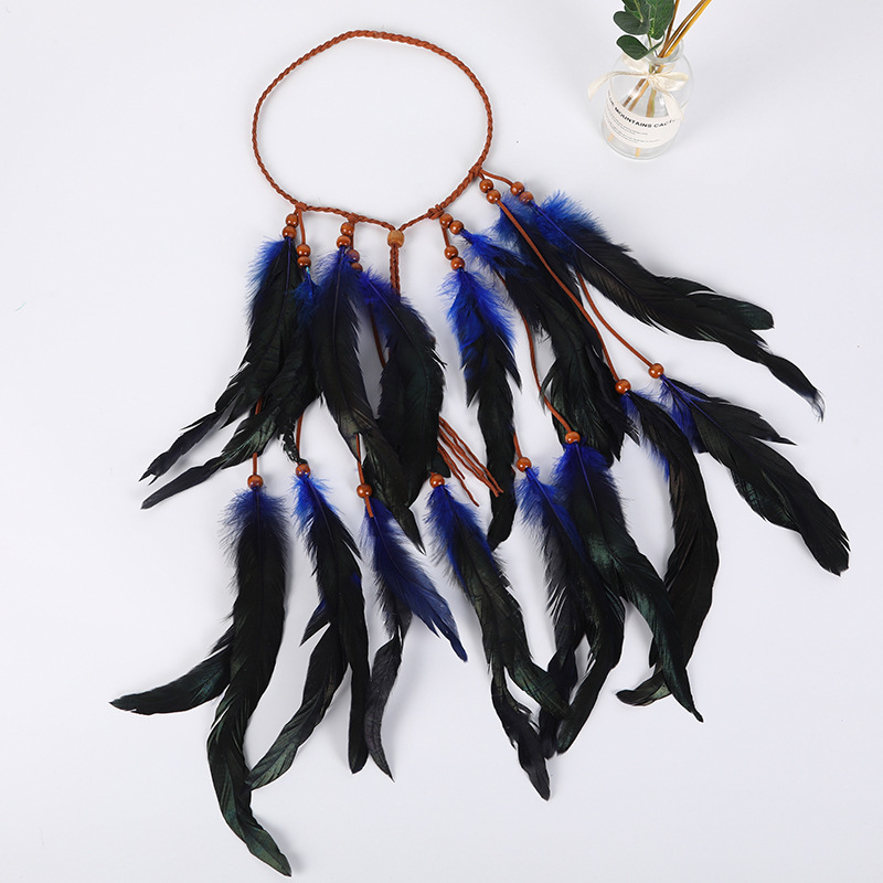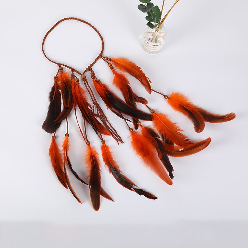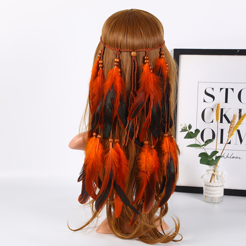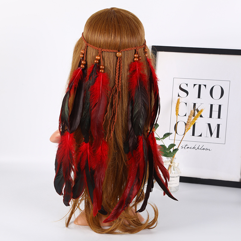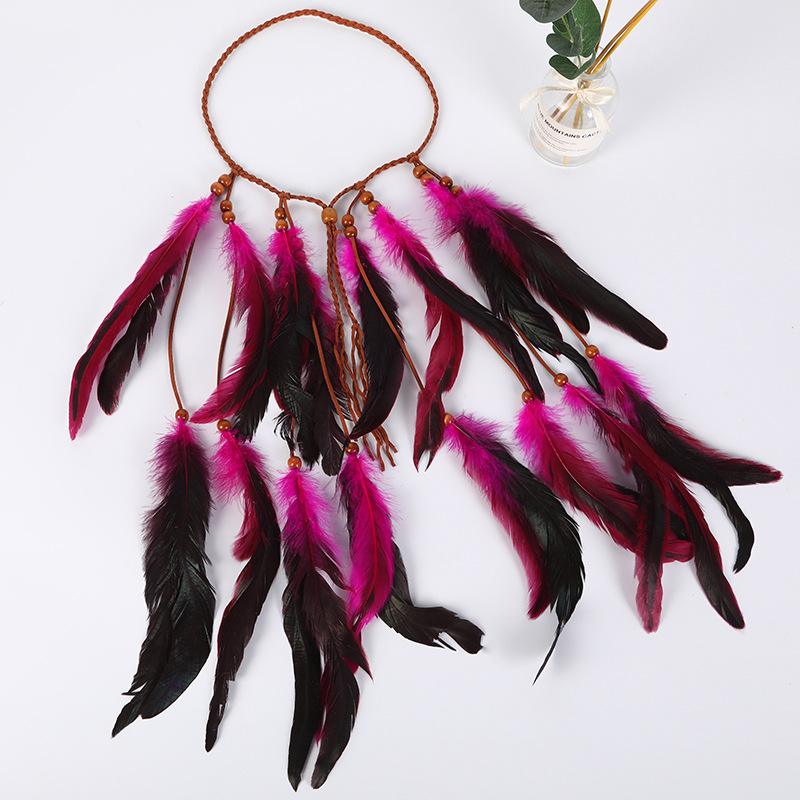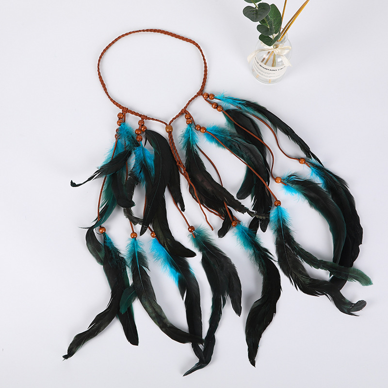 YM127跨境多根长款彩色羽毛发带 波西米亚民族风羽毛头饰景区拍照