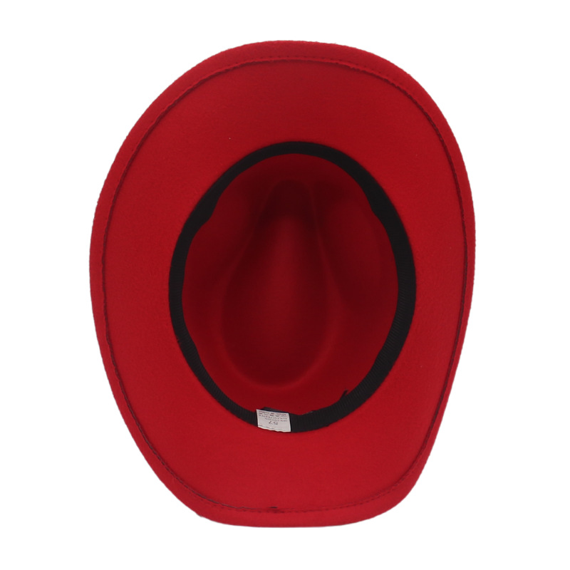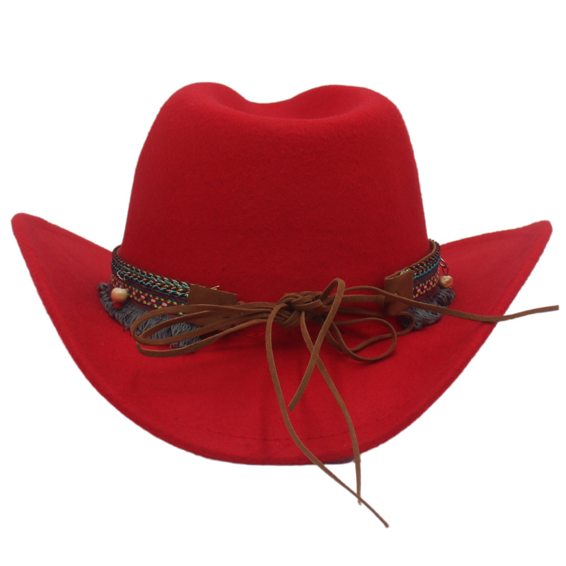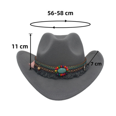 跨境宝石配饰西部牛仔帽少数民族藏式礼帽草原卷边毛呢毡帽爵士帽