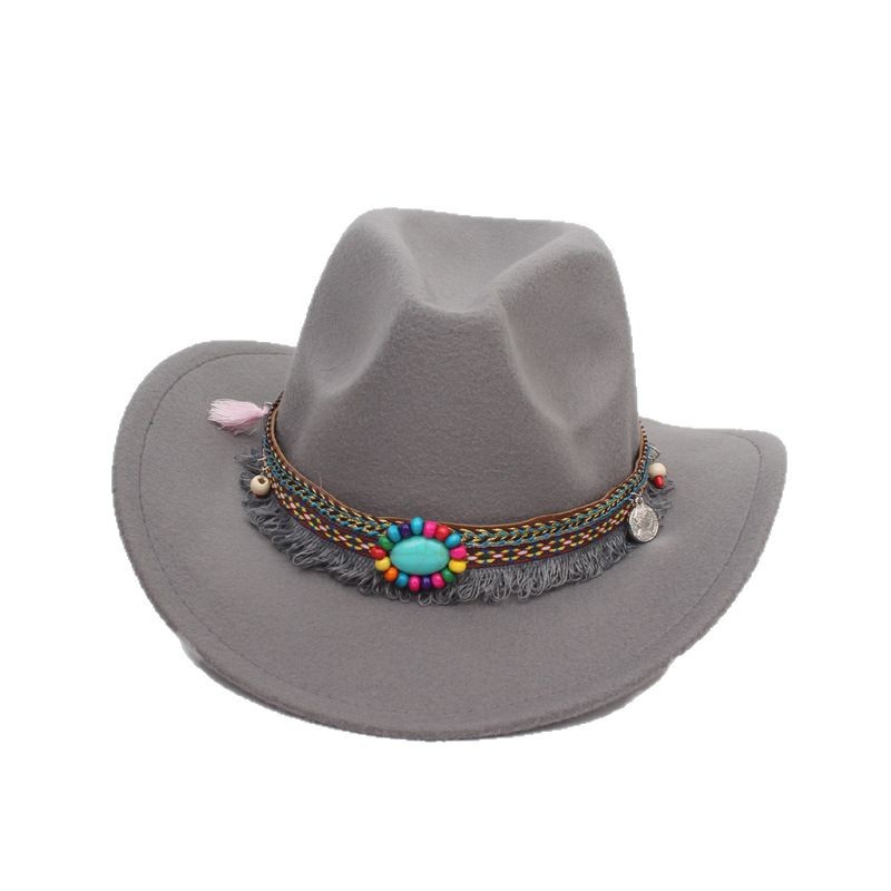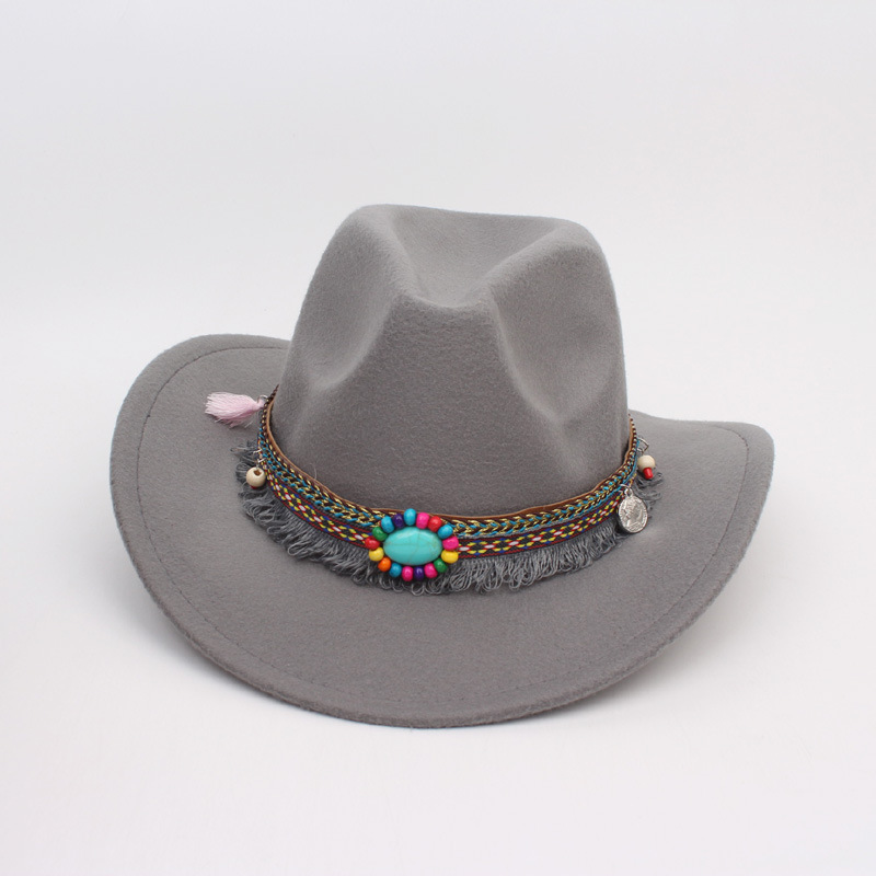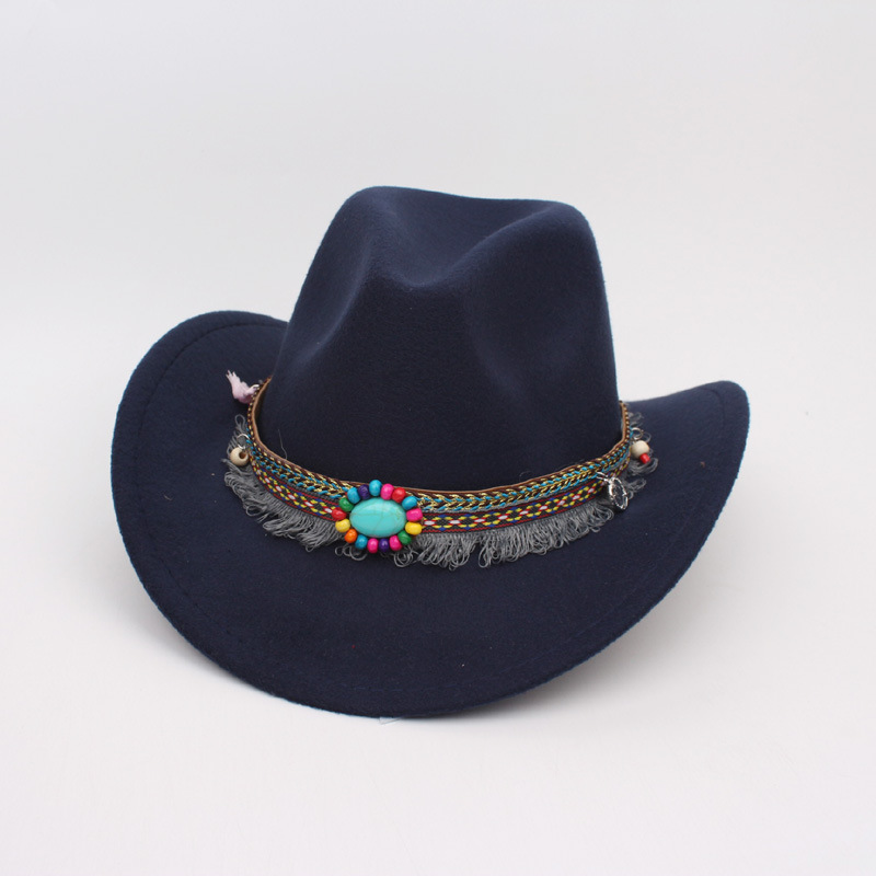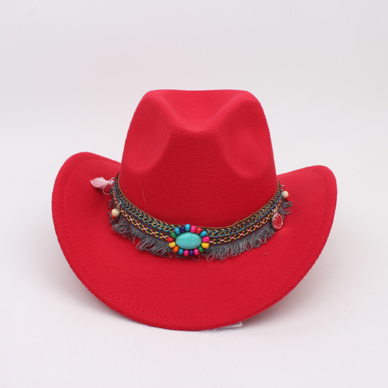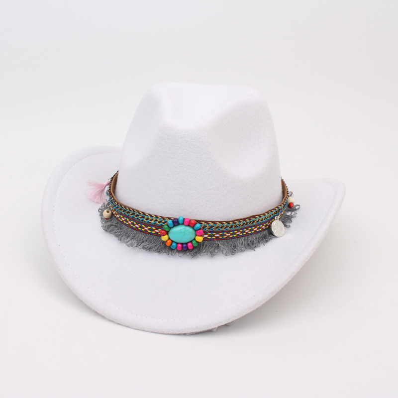 跨境少数民族礼帽流苏西部牛仔帽爵士帽绿松石毛毡帽卷边藏式帽子