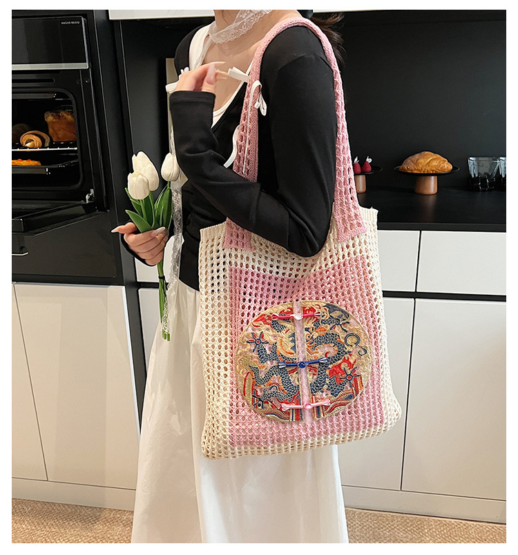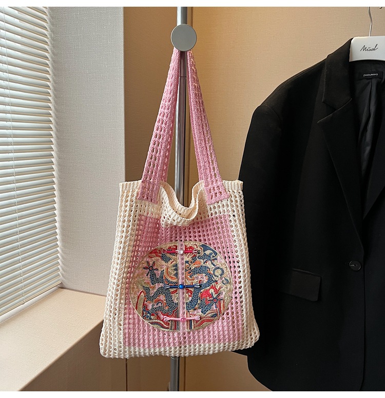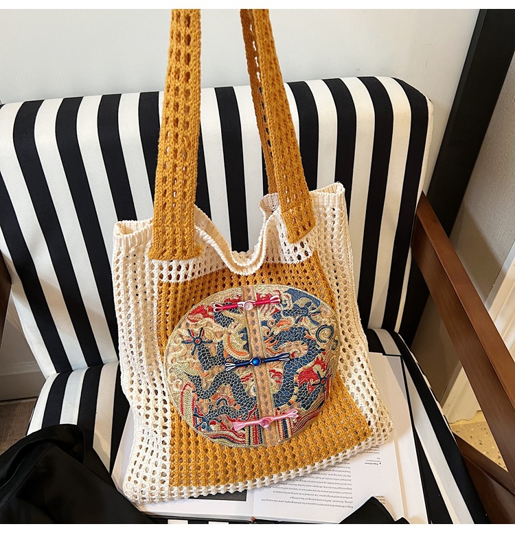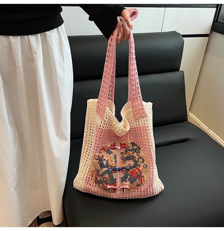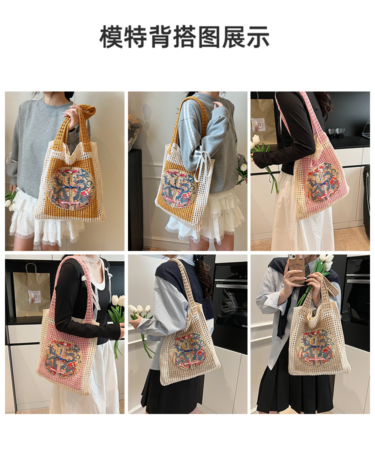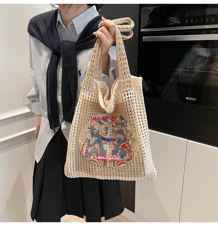 新中式国风刺绣草编包包女2025新款大容量单肩包休闲编织手提包