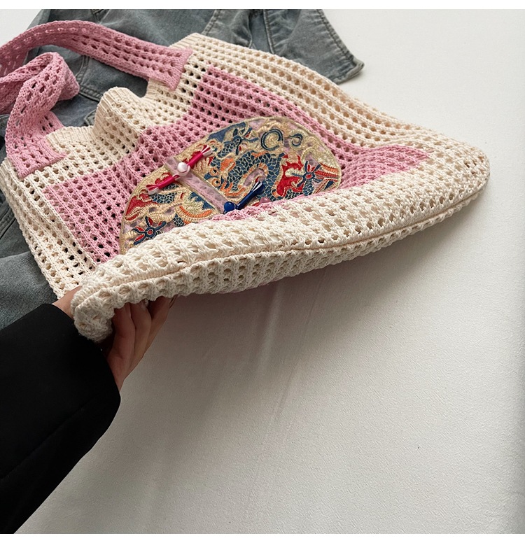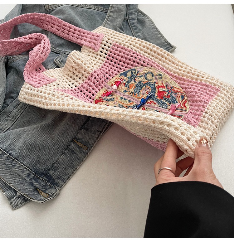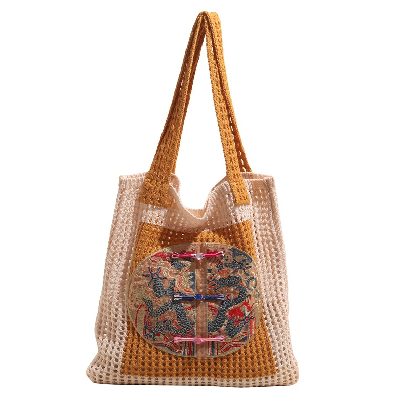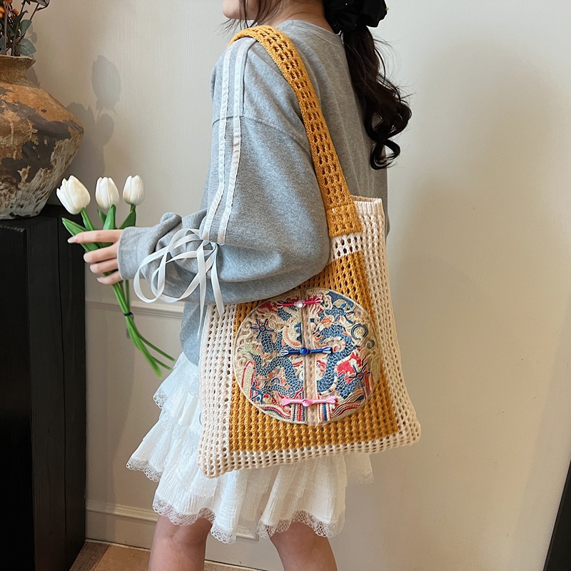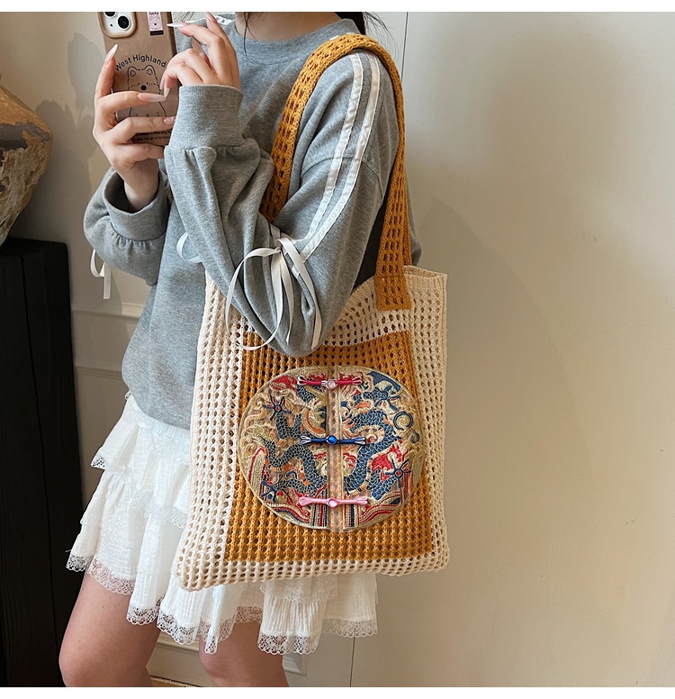 新中式国风刺绣草编包包女2025新款大容量单肩包休闲编织手提包