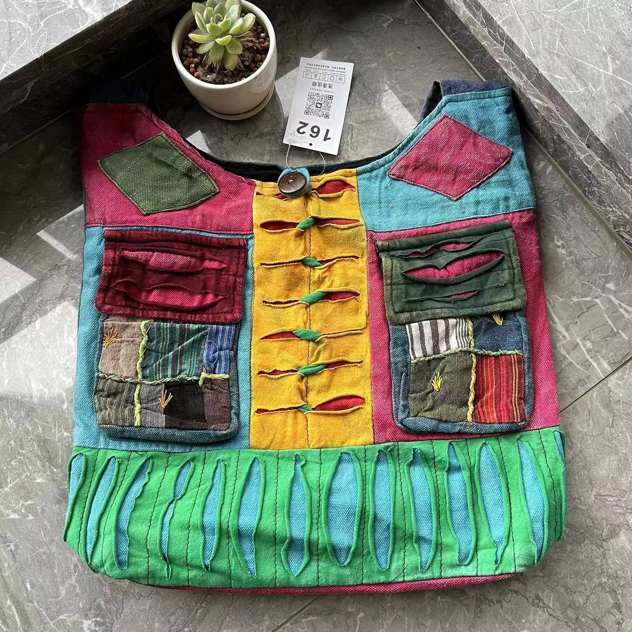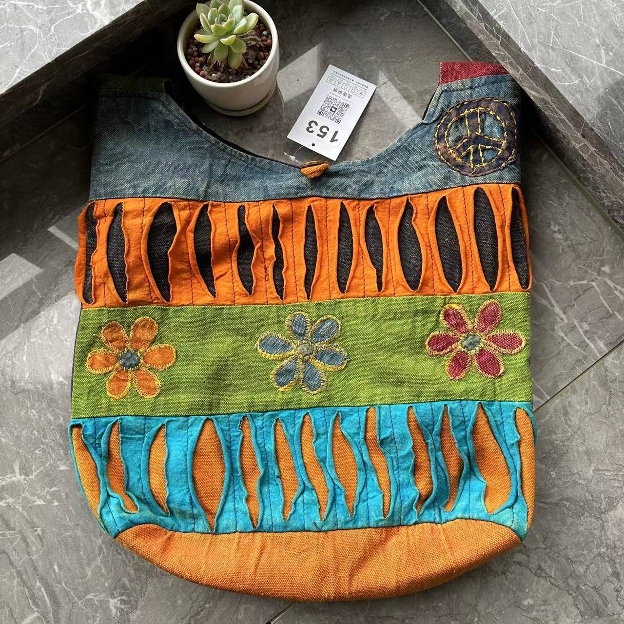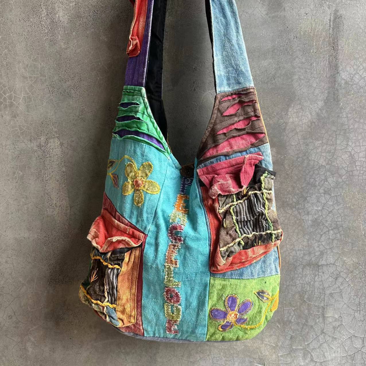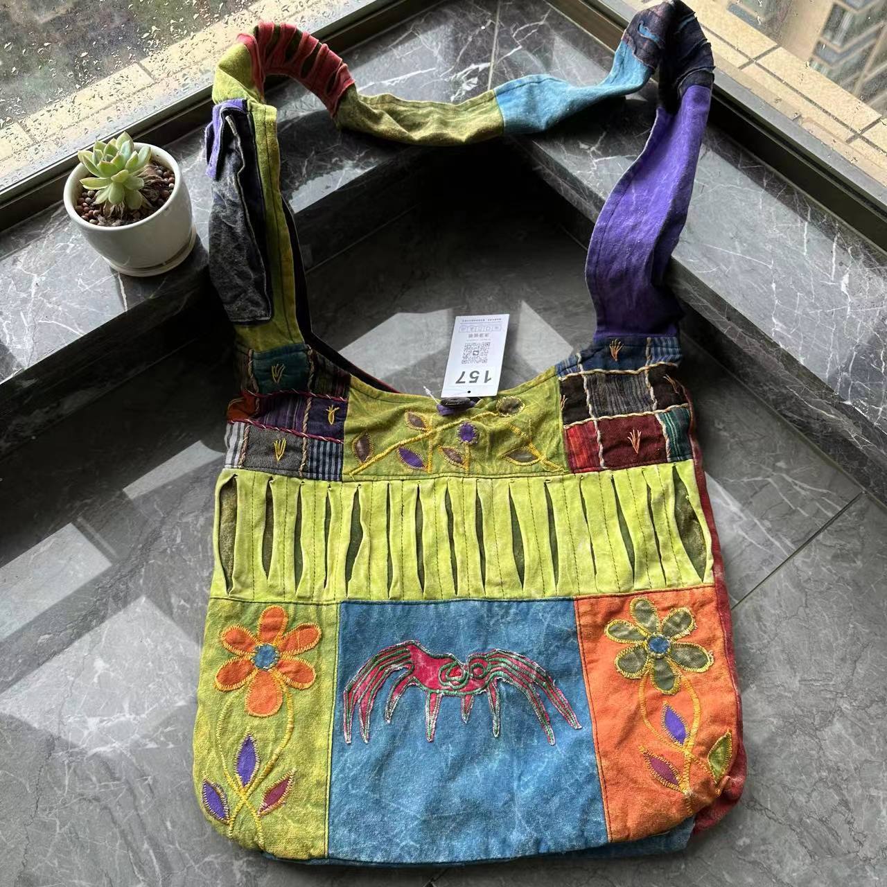 尼泊尔民族风拼接刺绣单肩包流浪包个性波西米亚嬉皮旅游小众布包