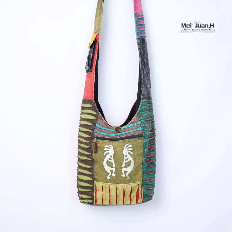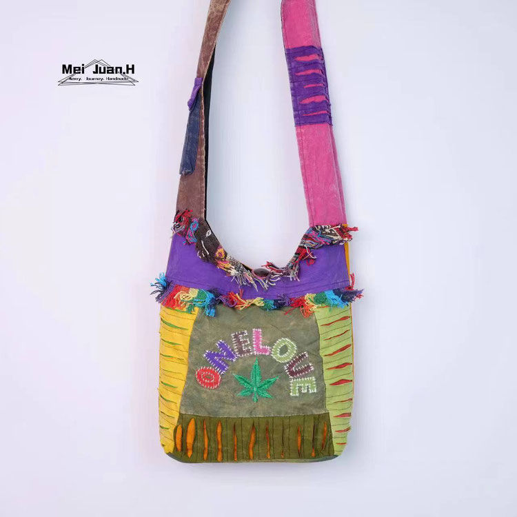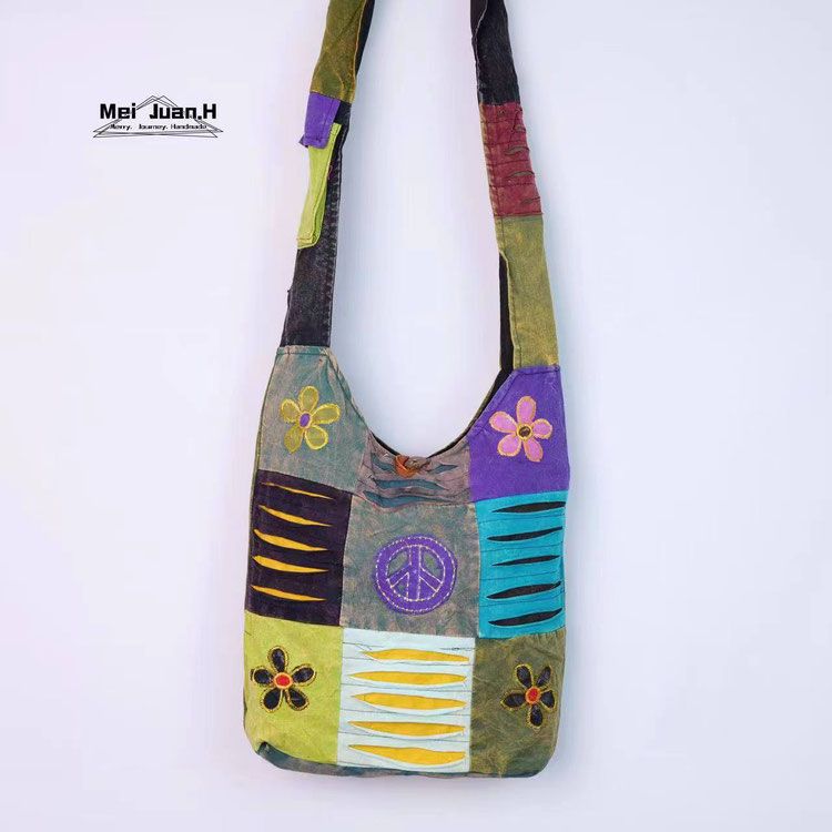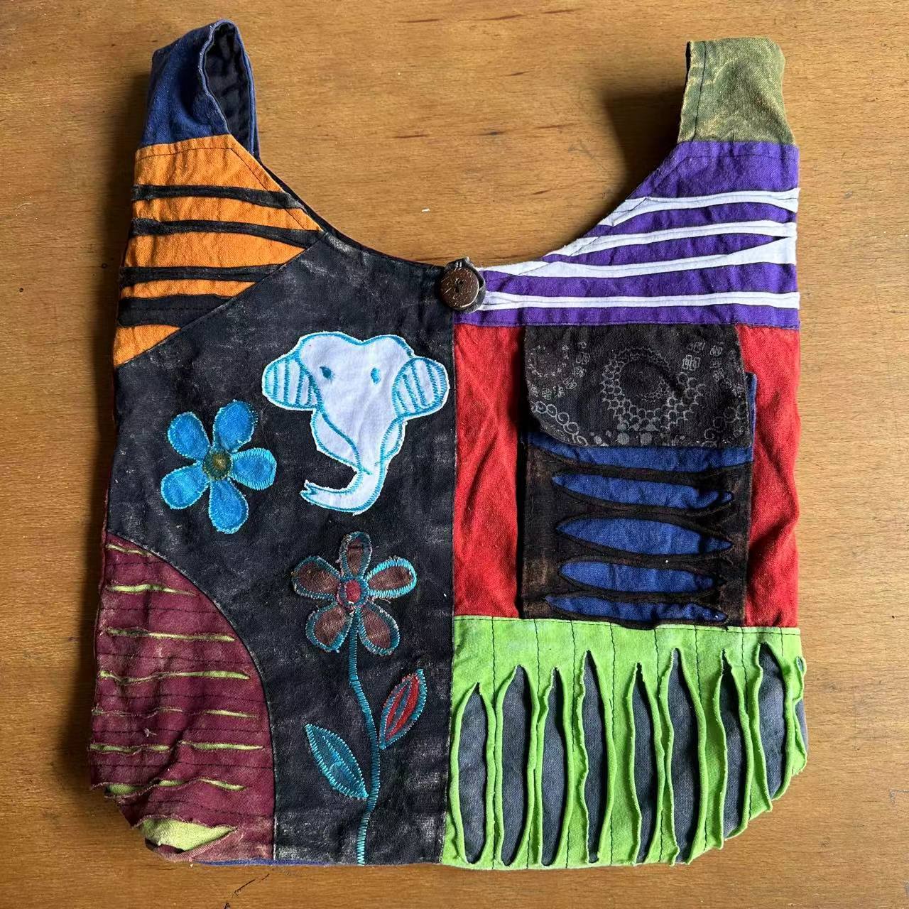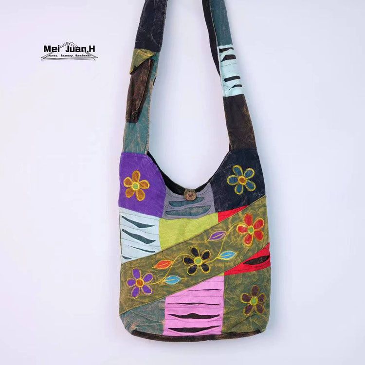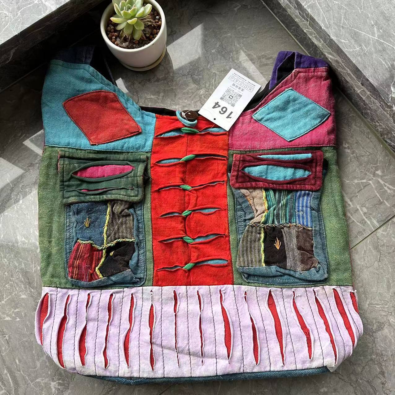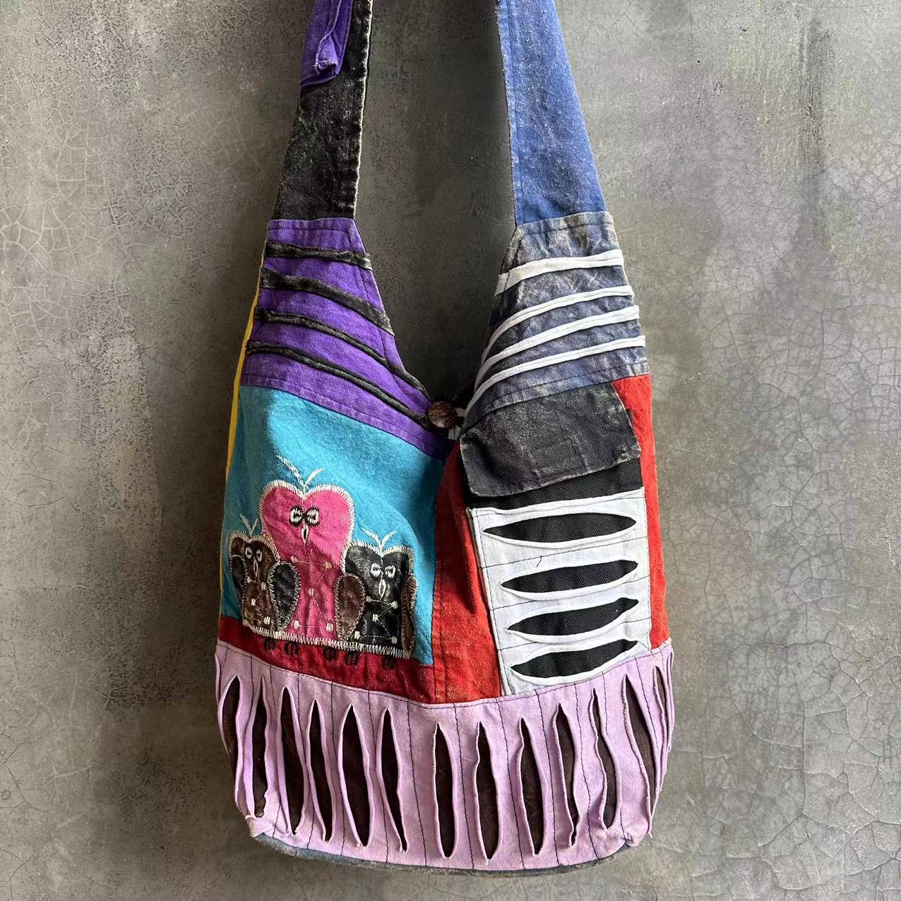 尼泊尔民族风拼接刺绣单肩包流浪包个性波西米亚嬉皮旅游小众布包
