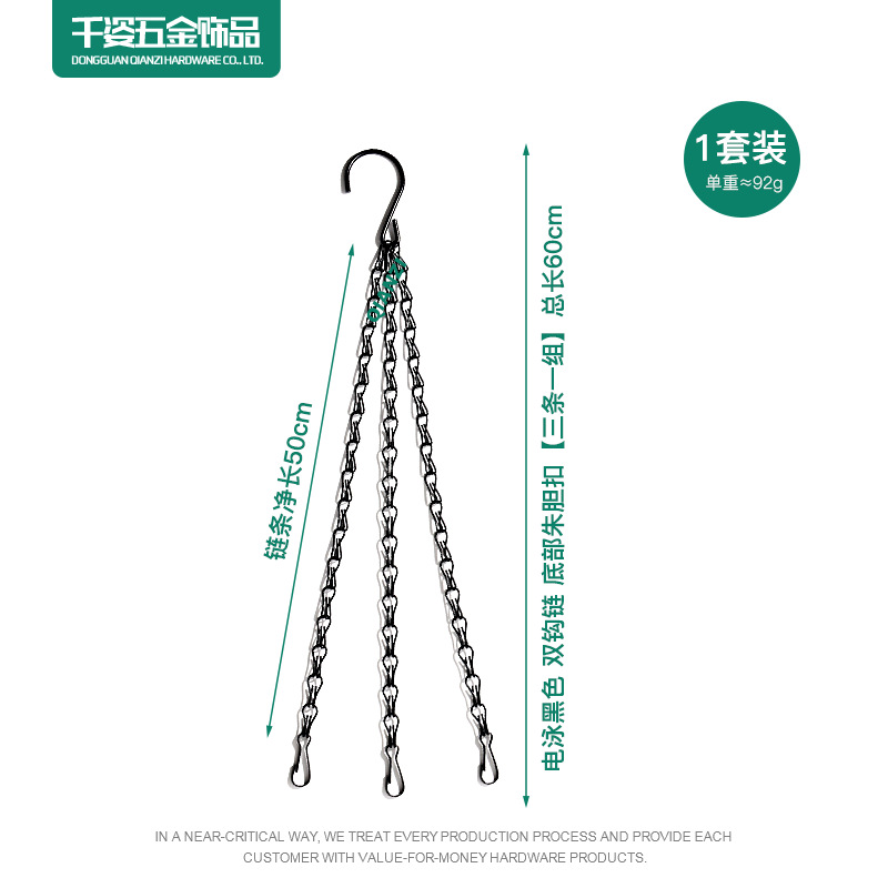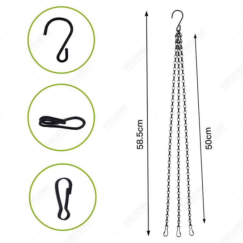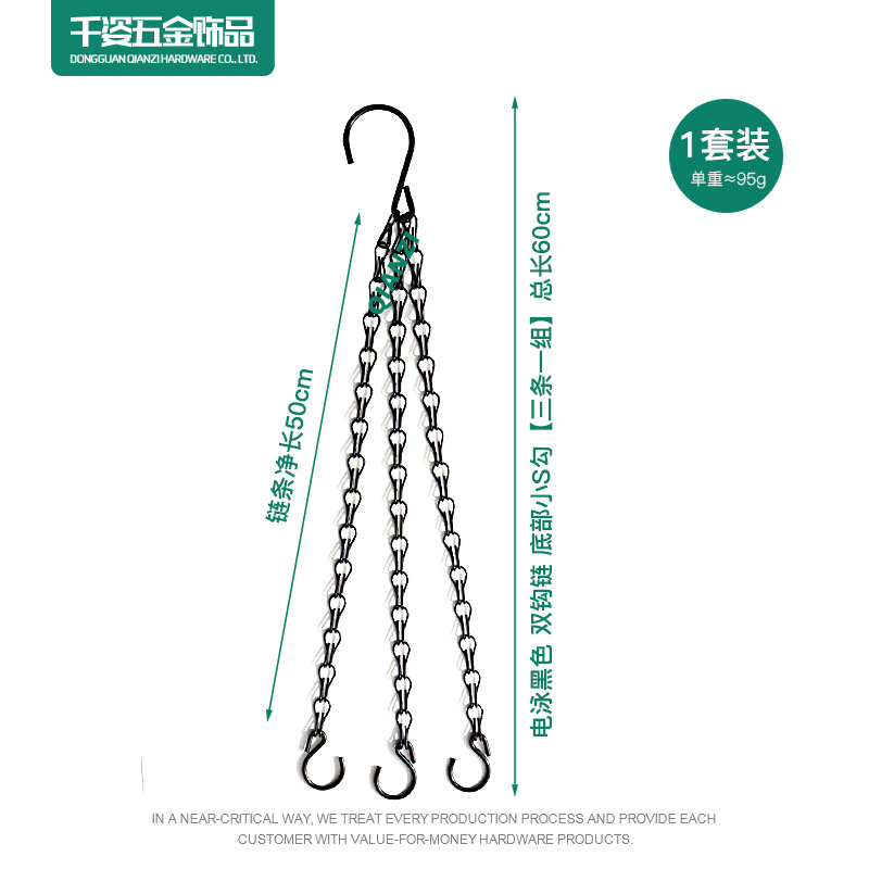 厂家直销黑色园艺花盆链双钩铁链花篮吊链家居装饰悬挂鸟笼灯挂链