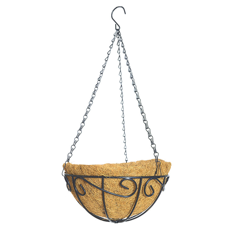 新款椰棕吊兰花架悬挂铁艺吊篮阳台栏杆带椰棕铁链一套吊蓝花盆