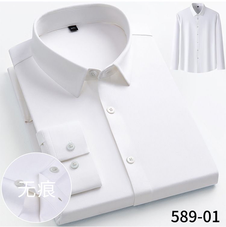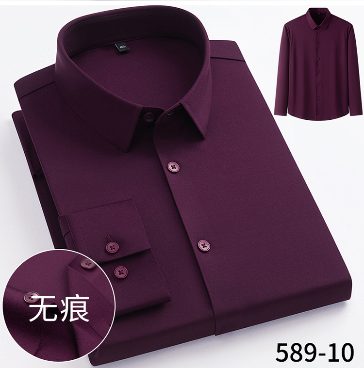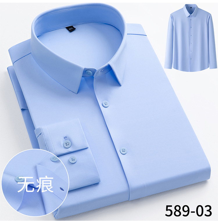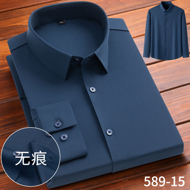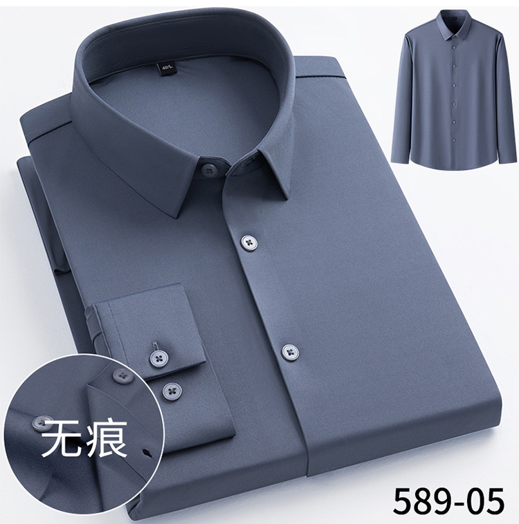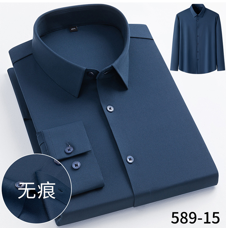 春季新款无痕压胶免烫长袖衬衫男四面弹锦氨商务休闲衬衣超弹