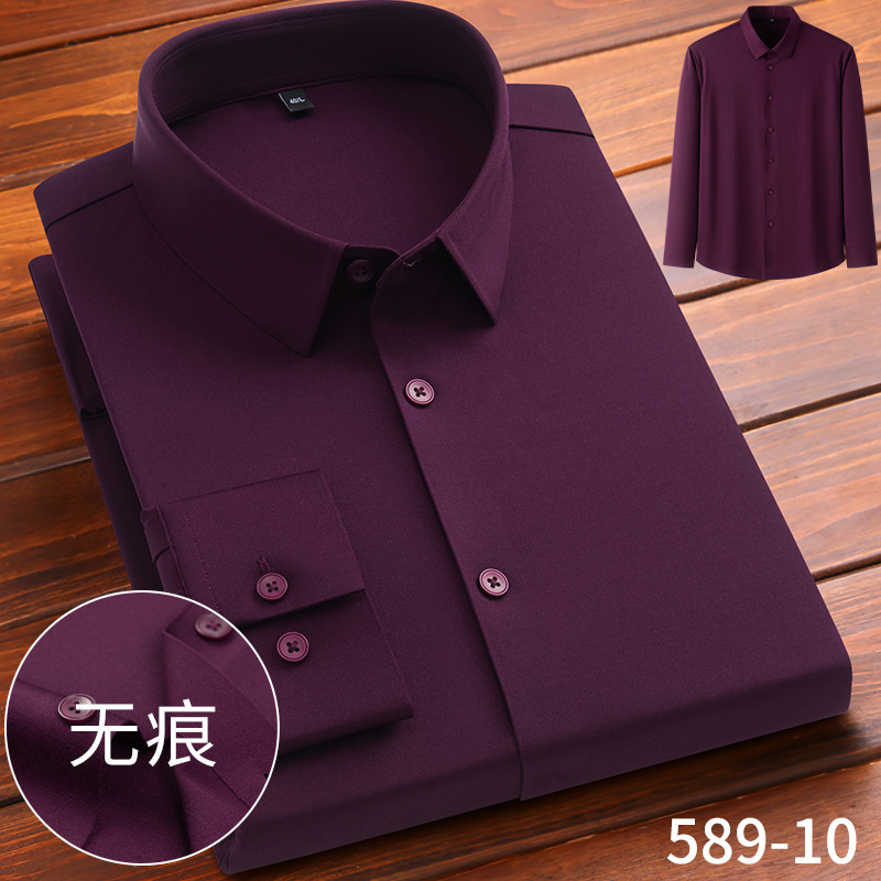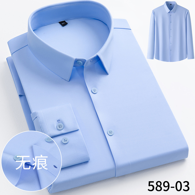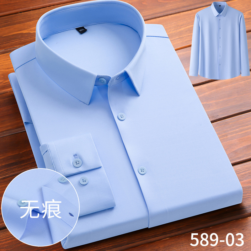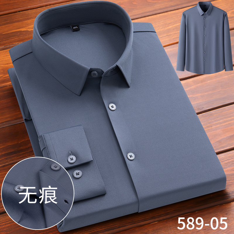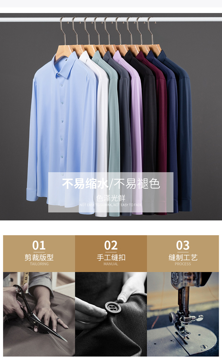 春季新款无痕压胶免烫长袖衬衫男四面弹锦氨商务休闲衬衣超弹
