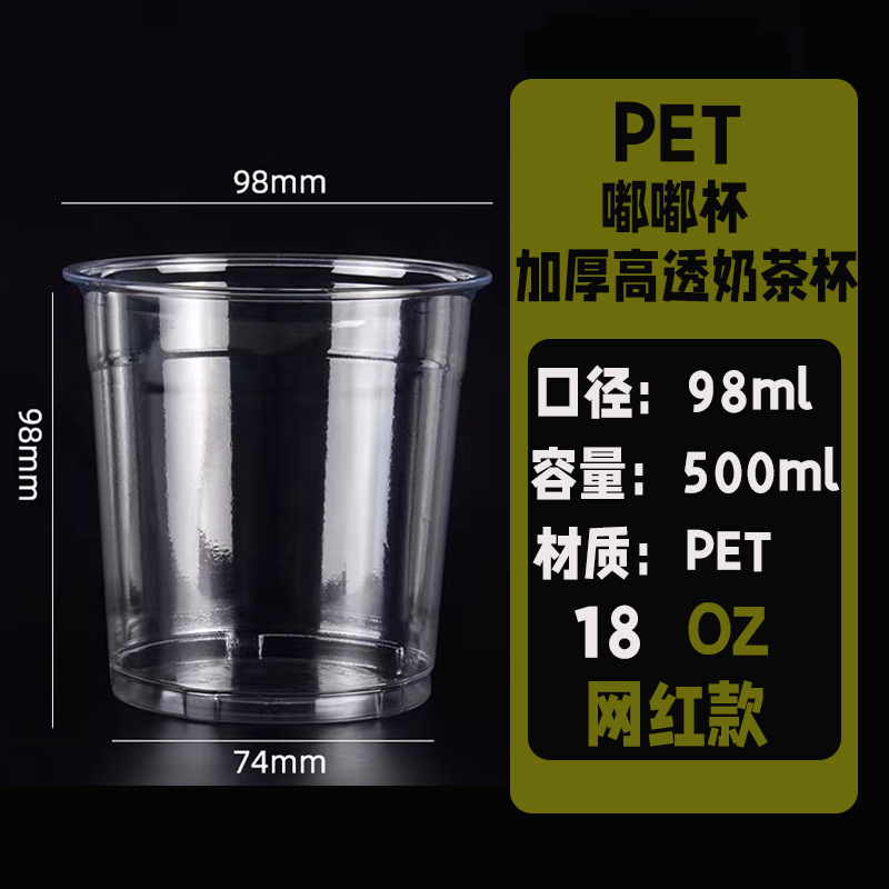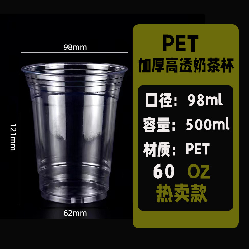 98口径一次性冰美式外卖塑料杯PET500ml生椰拿铁咖啡外带冷饮杯子