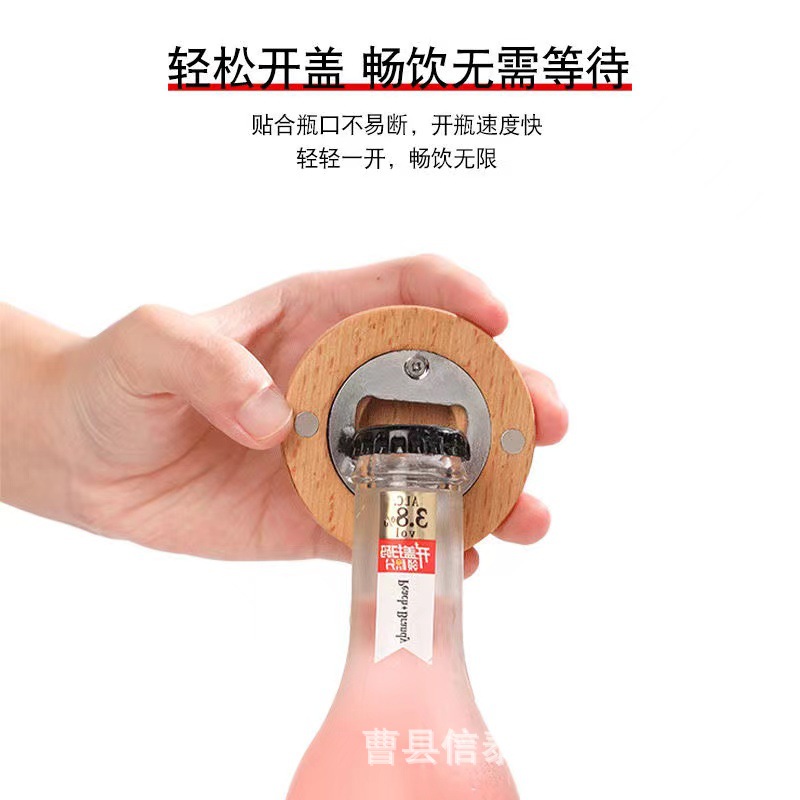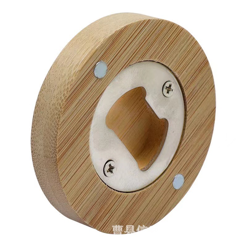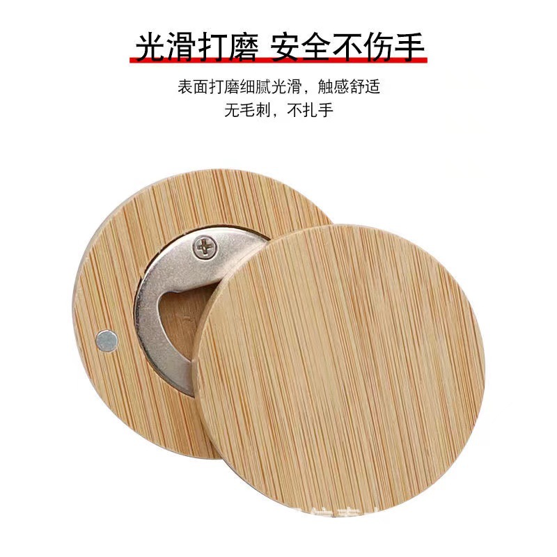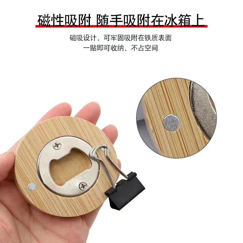木质圆形啤酒开瓶器竹木酒水饮料启瓶器磁吸式冰箱贴啤酒开盖器