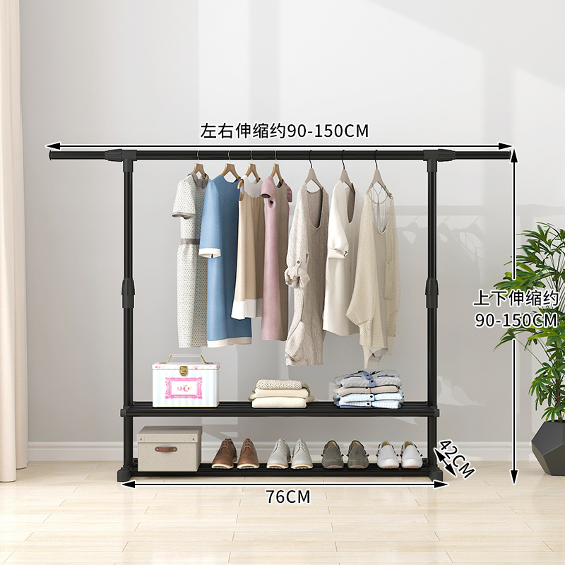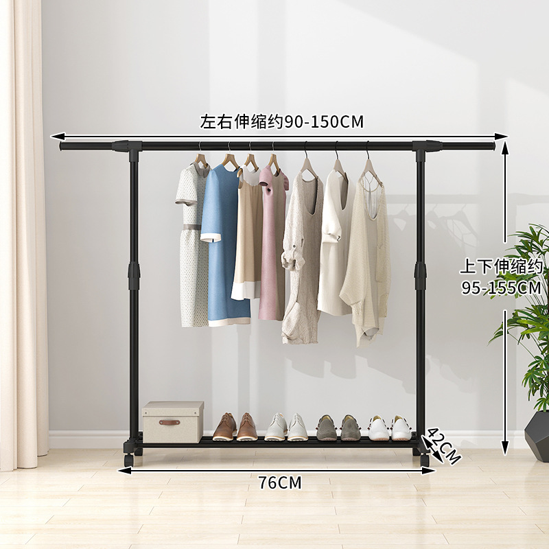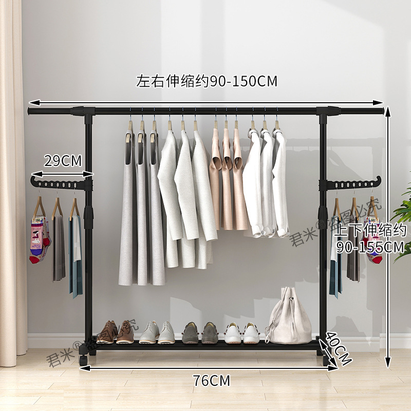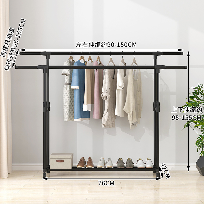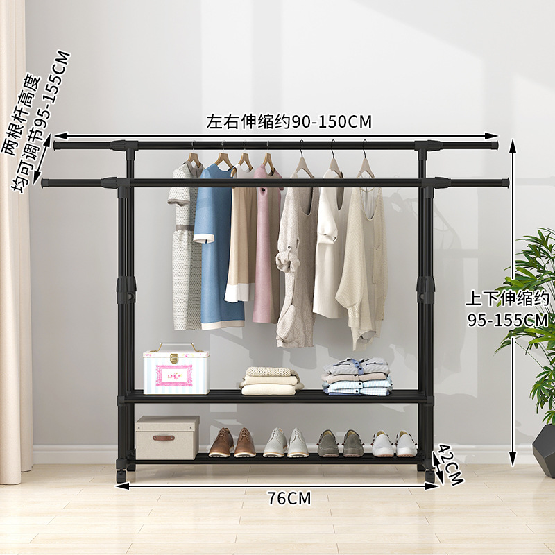 晾衣架落地伸缩折叠可移动简易双杆式室内凉衣服架子阳台挂晒衣架