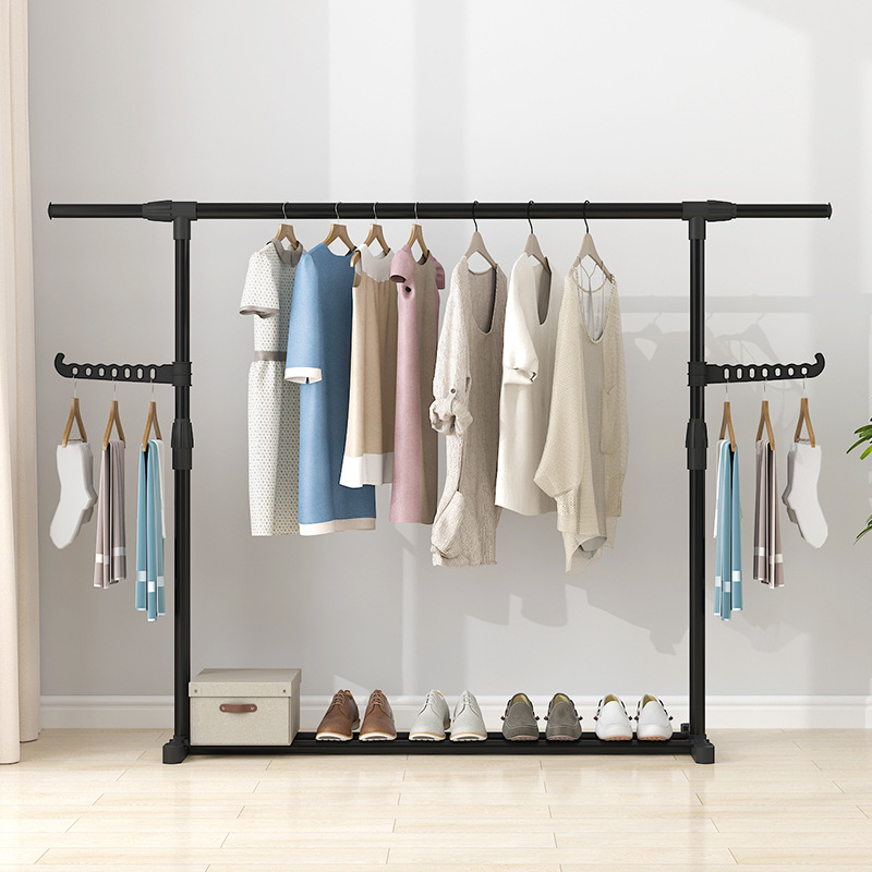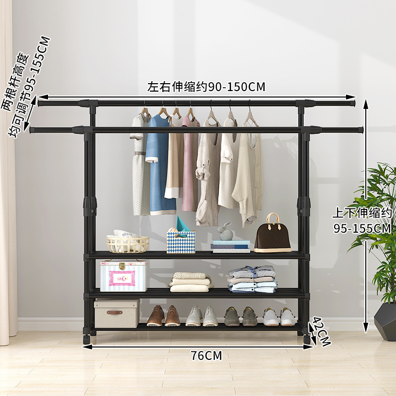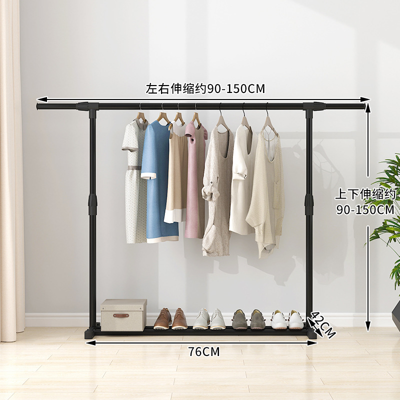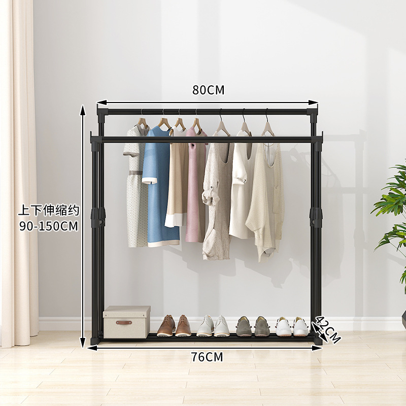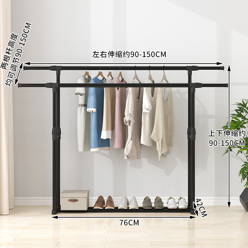 晾衣架落地伸缩折叠可移动简易双杆式室内凉衣服架子阳台挂晒衣架