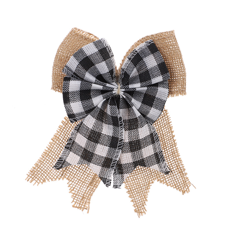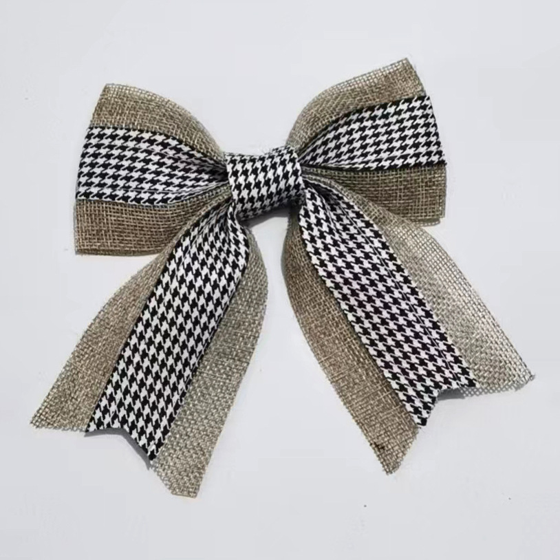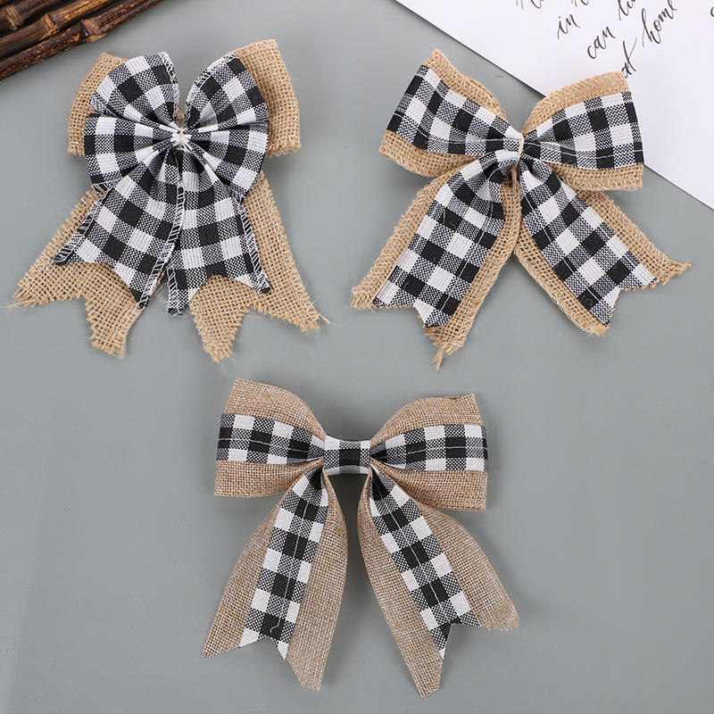 麻布蝴蝶结 黑白格圣诞装饰蝴蝶结 装饰鞋帽礼品衣服服装装饰
