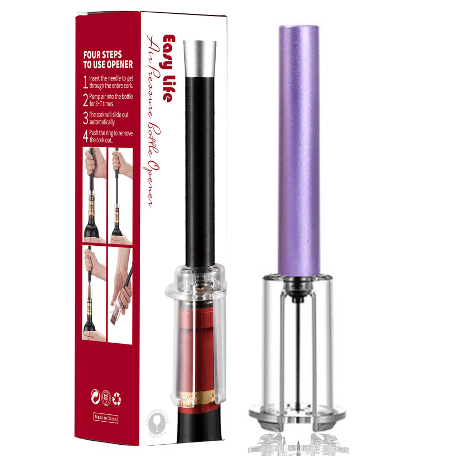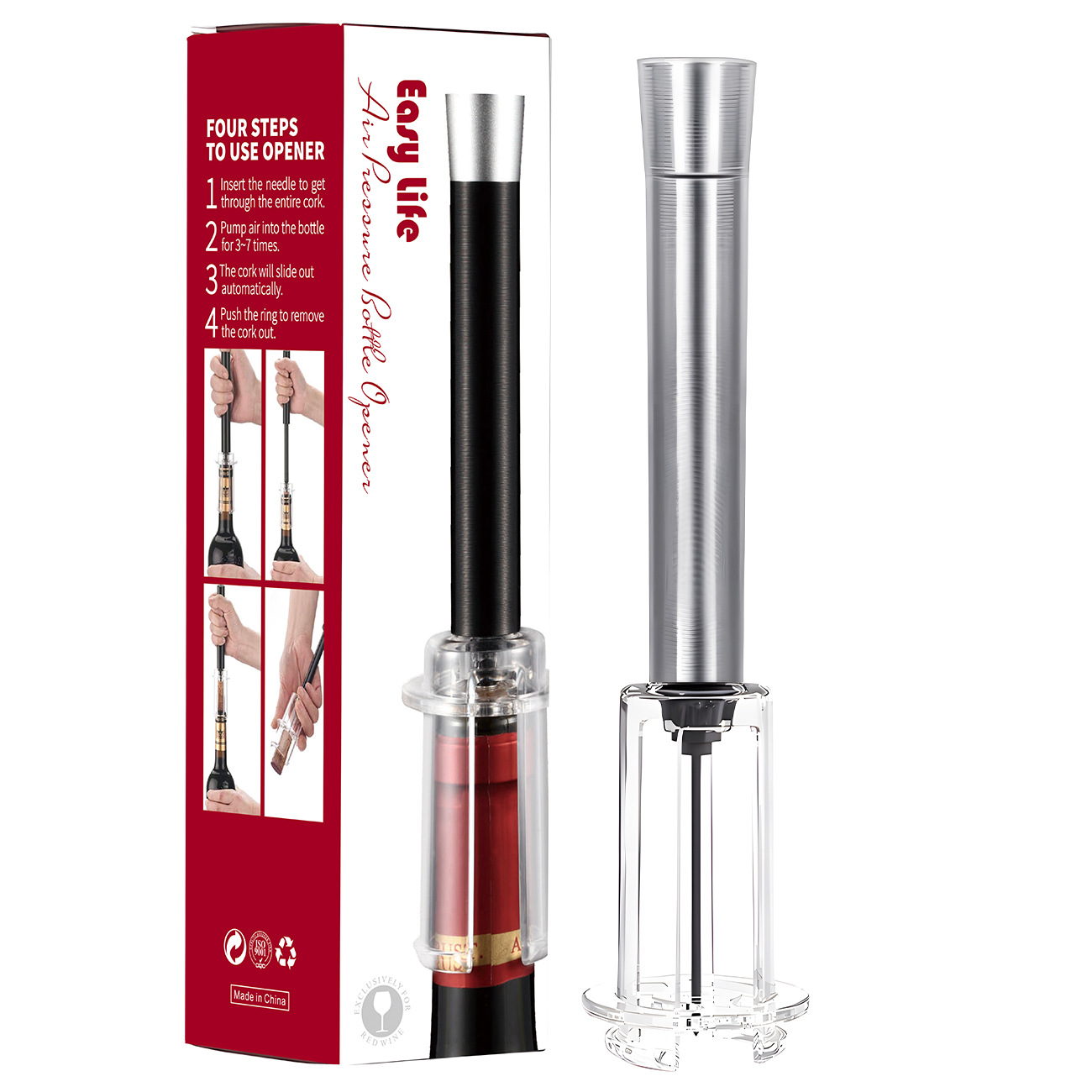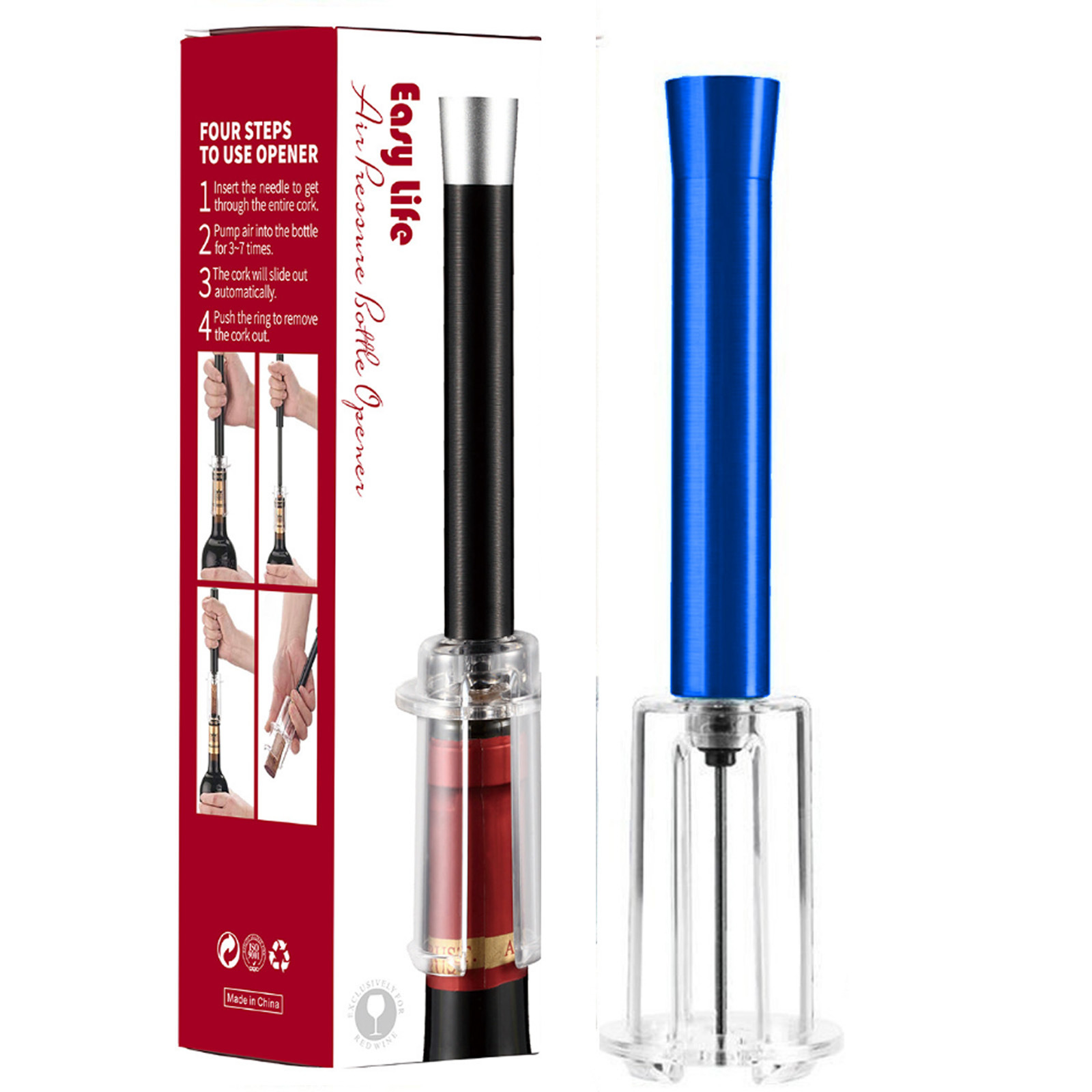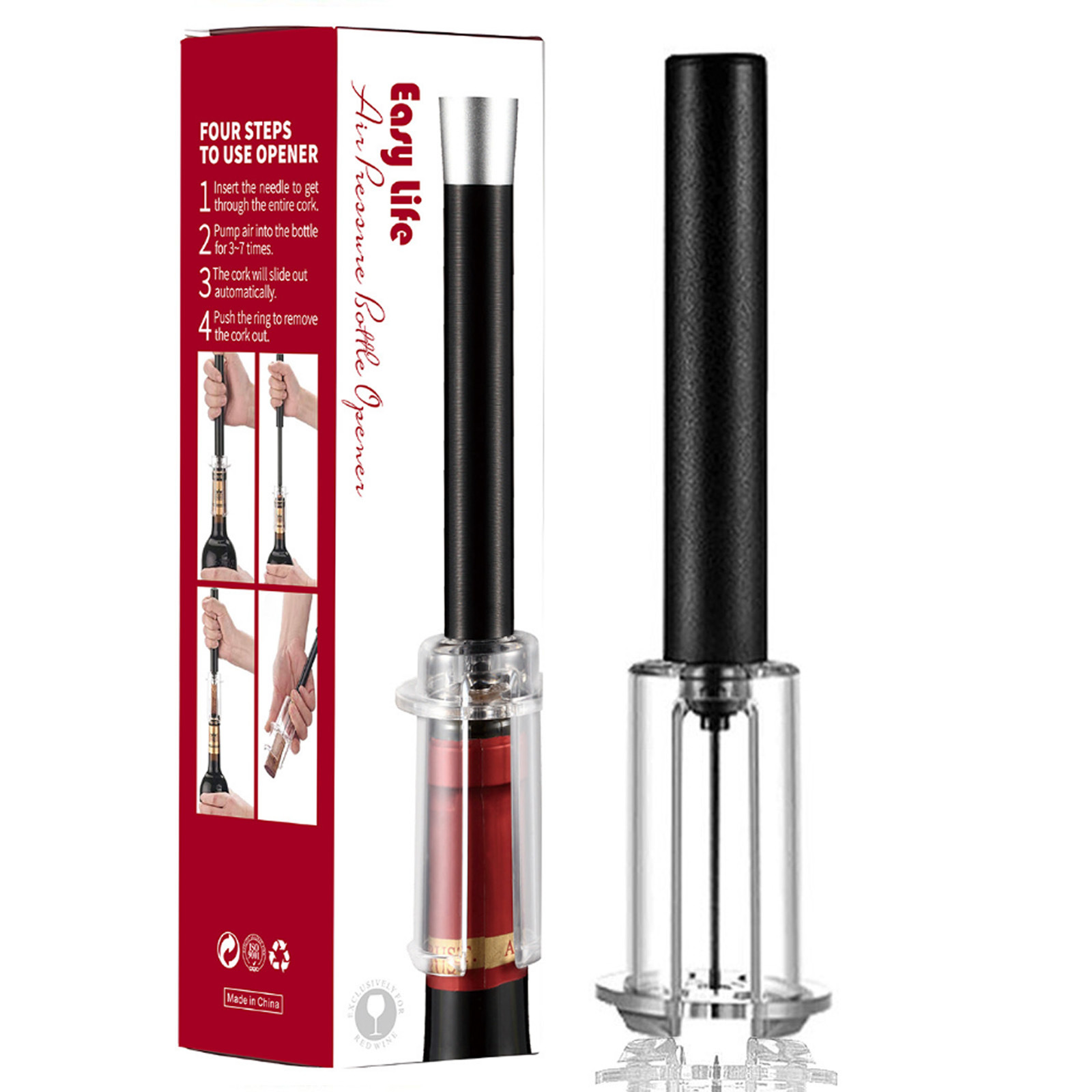 跨境红酒手动气压开瓶器 针式气压开瓶器4件套开酒器礼盒酒具套装