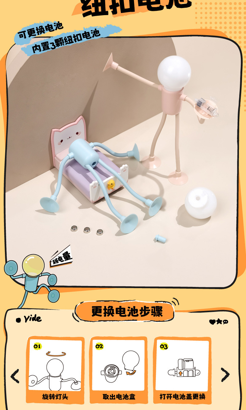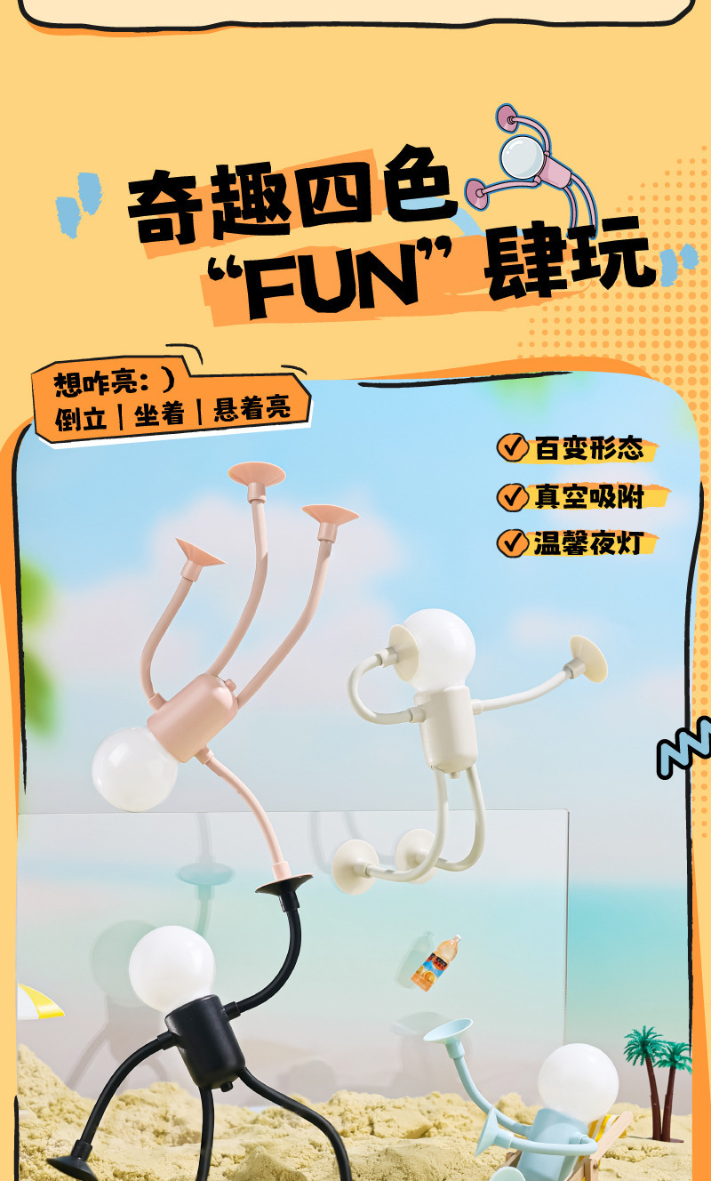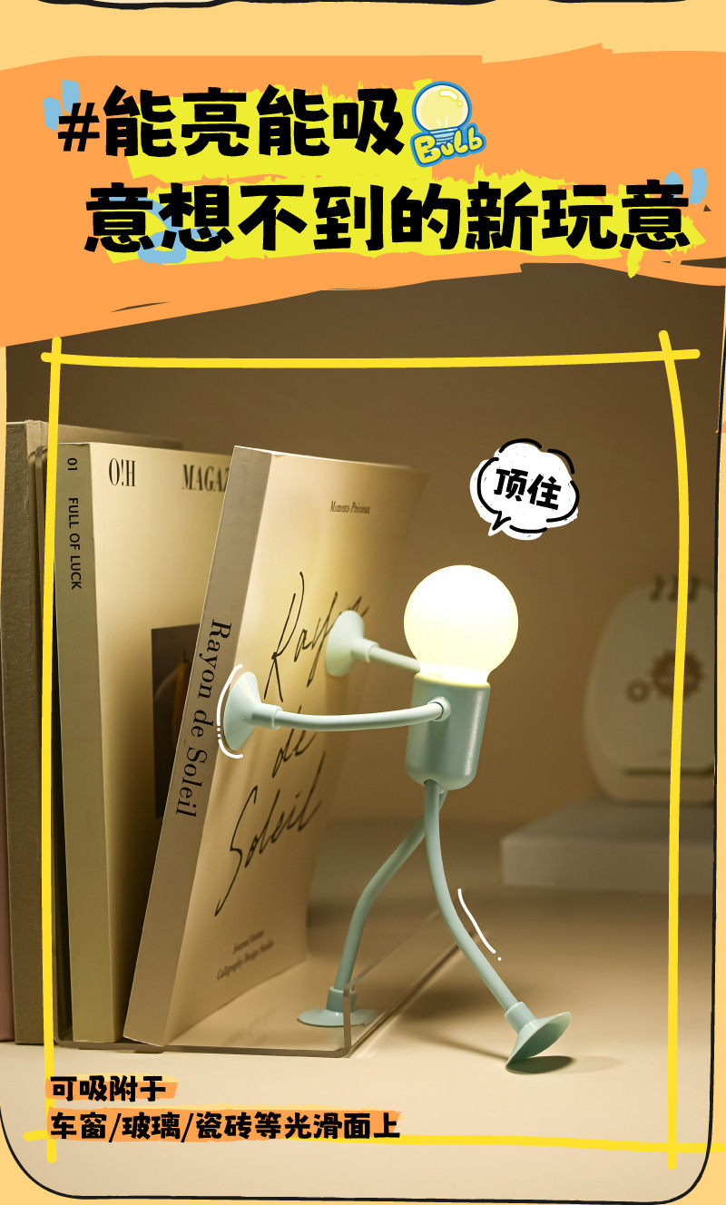 新品百变灯创意礼品趣味搞怪纽扣电池夜灯摆件真空吸附迷你小夜灯