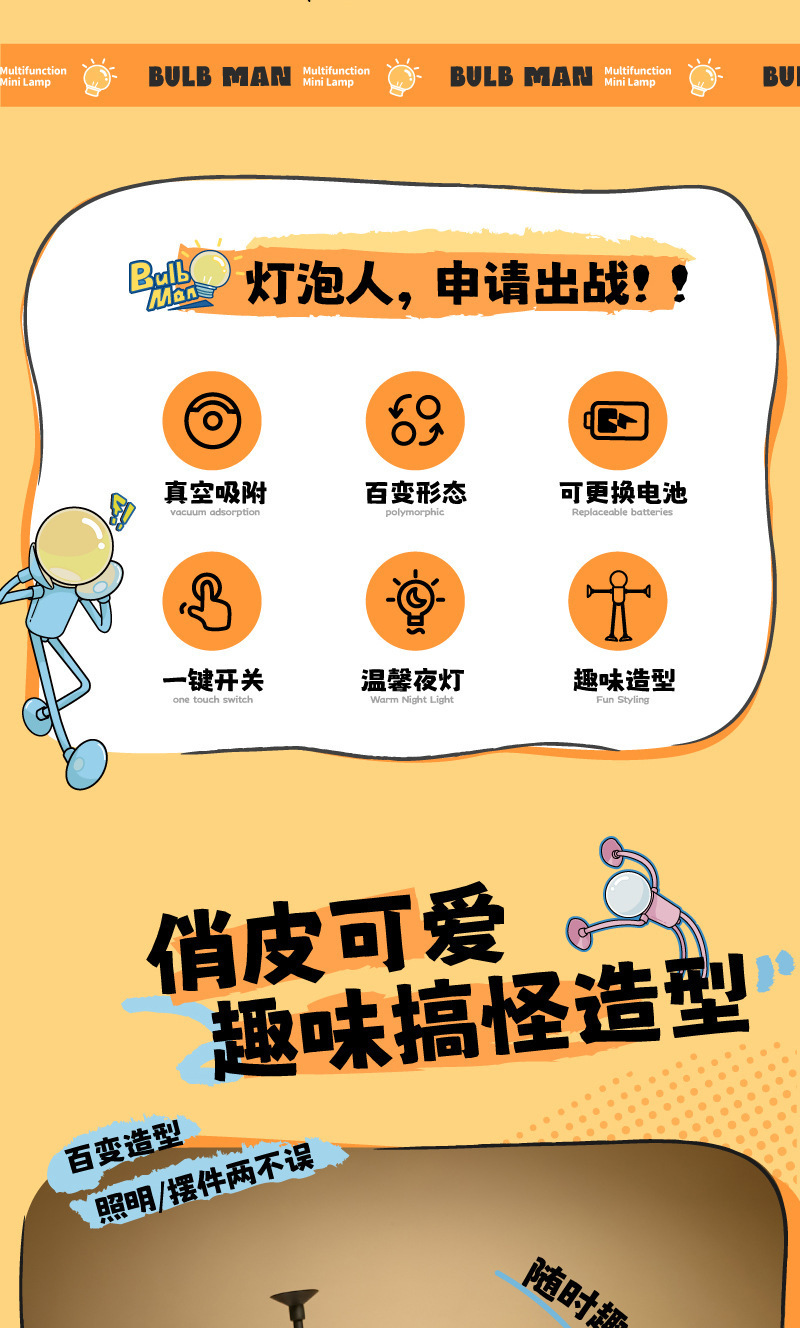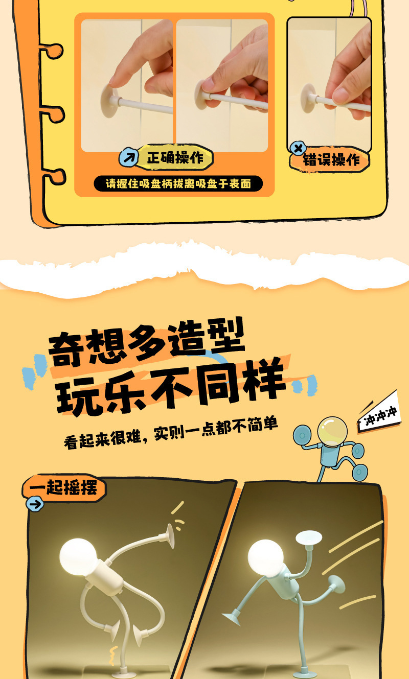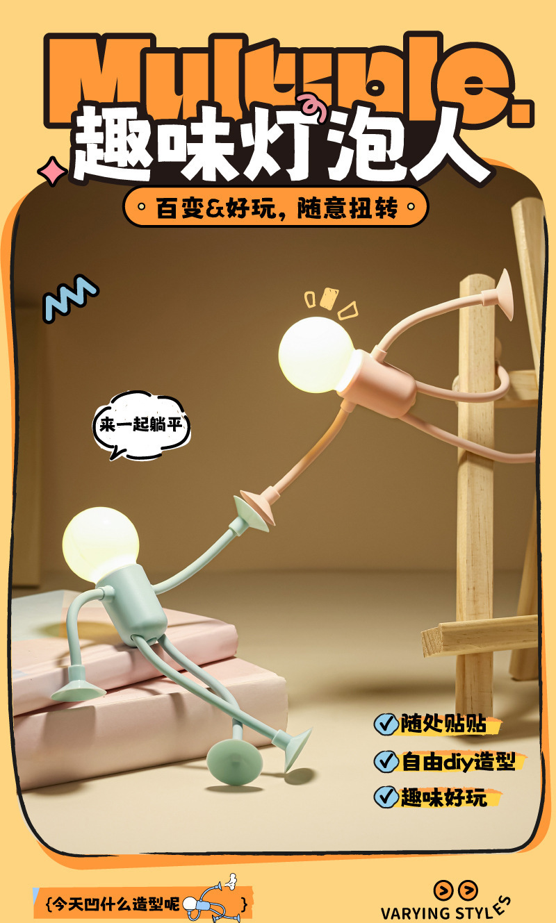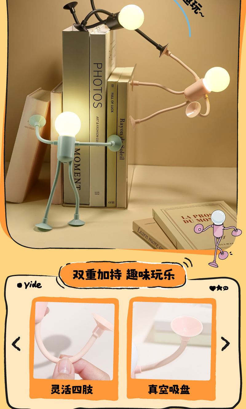 新品百变灯创意礼品趣味搞怪纽扣电池夜灯摆件真空吸附迷你小夜灯
