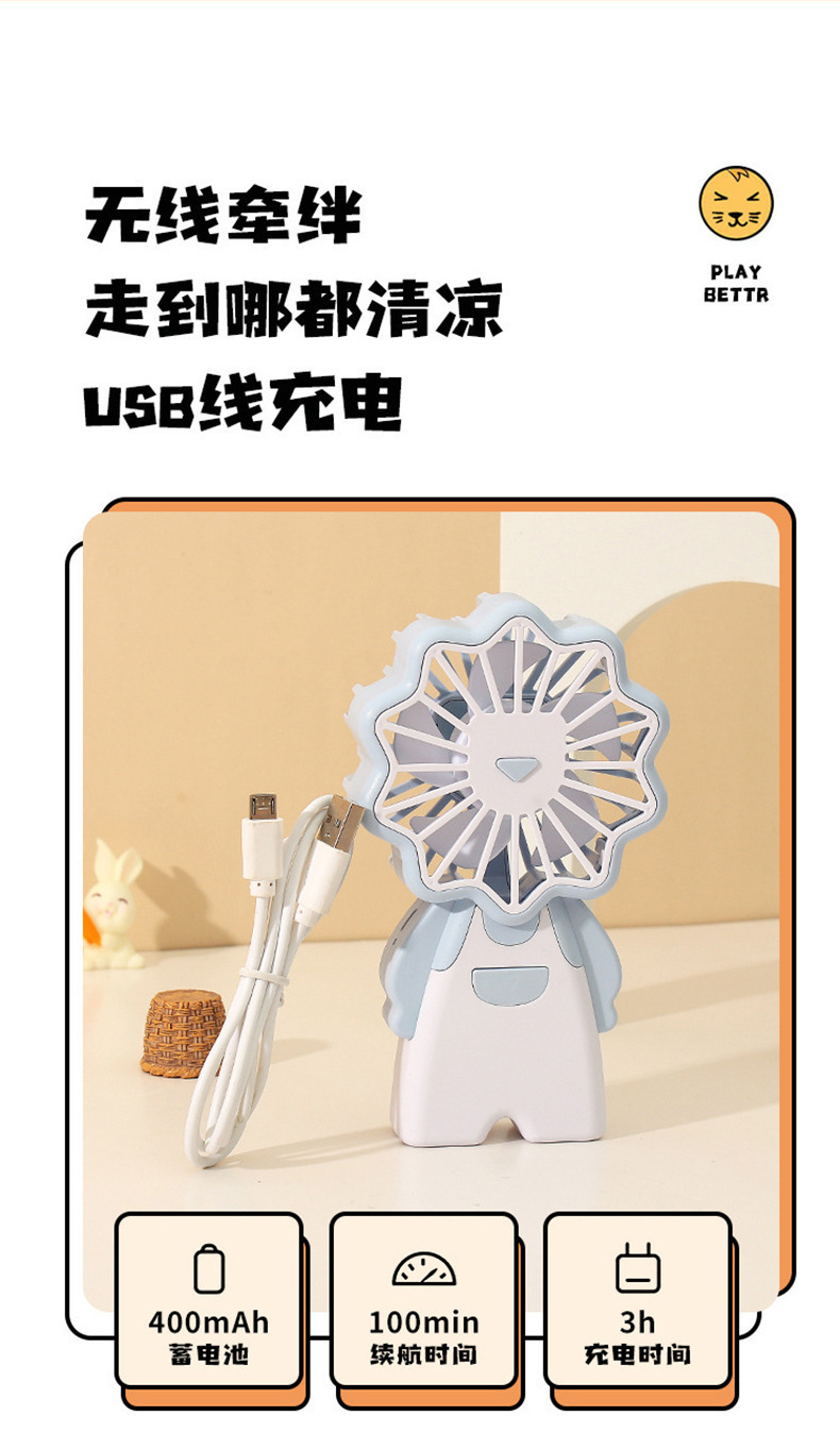 卡通可爱手持迷你简约小风扇 usb充电便携式电扇厂家批发制作LOGO
