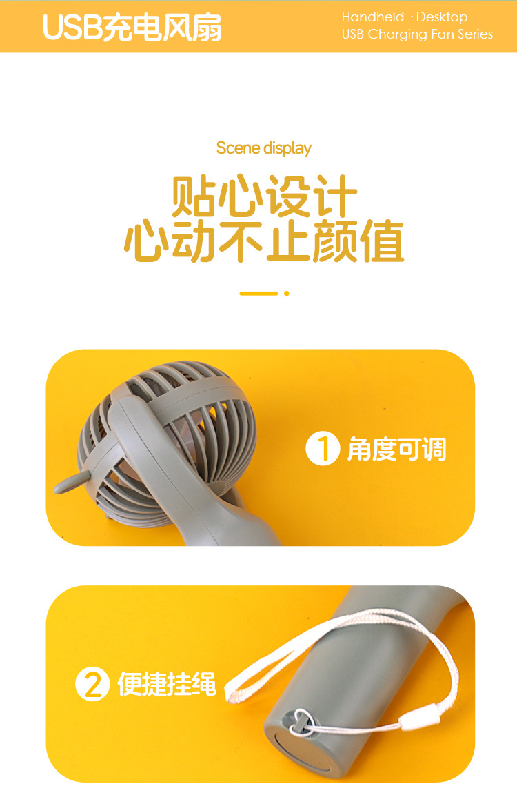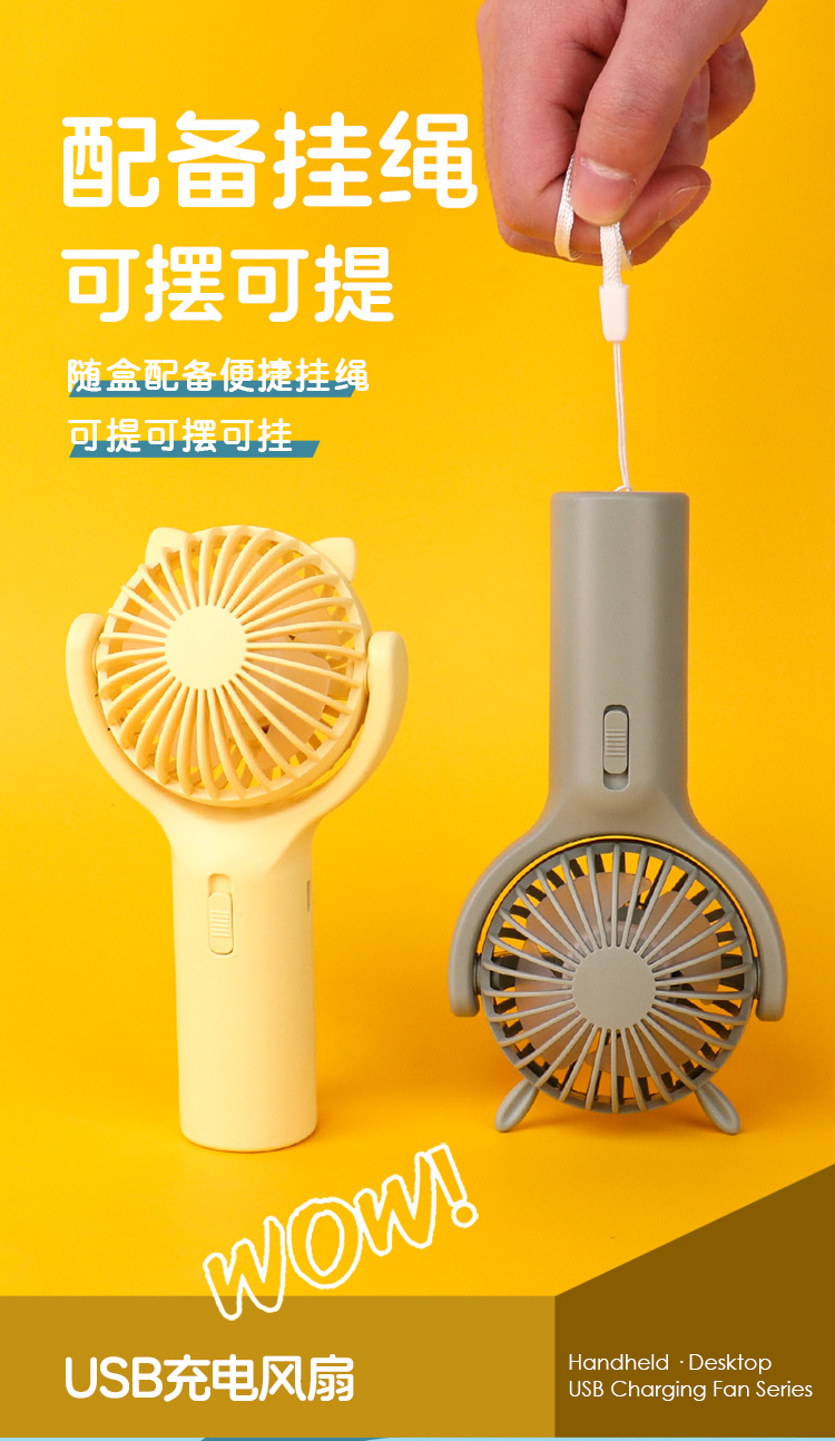 新款挂绳手持小风扇迷你便携式创意电扇批发 USB充电旋转风扇厂家