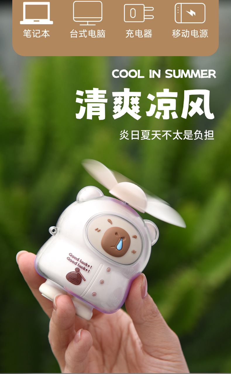 夏季迷你萌兔usb充电小风扇静音大风力学生便携式无叶风扇厂批发