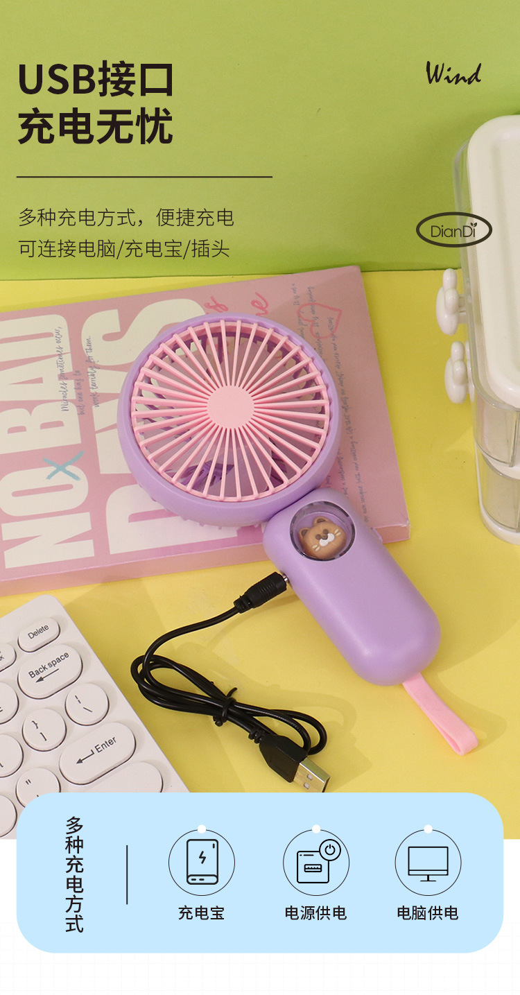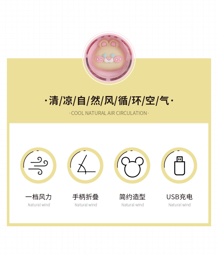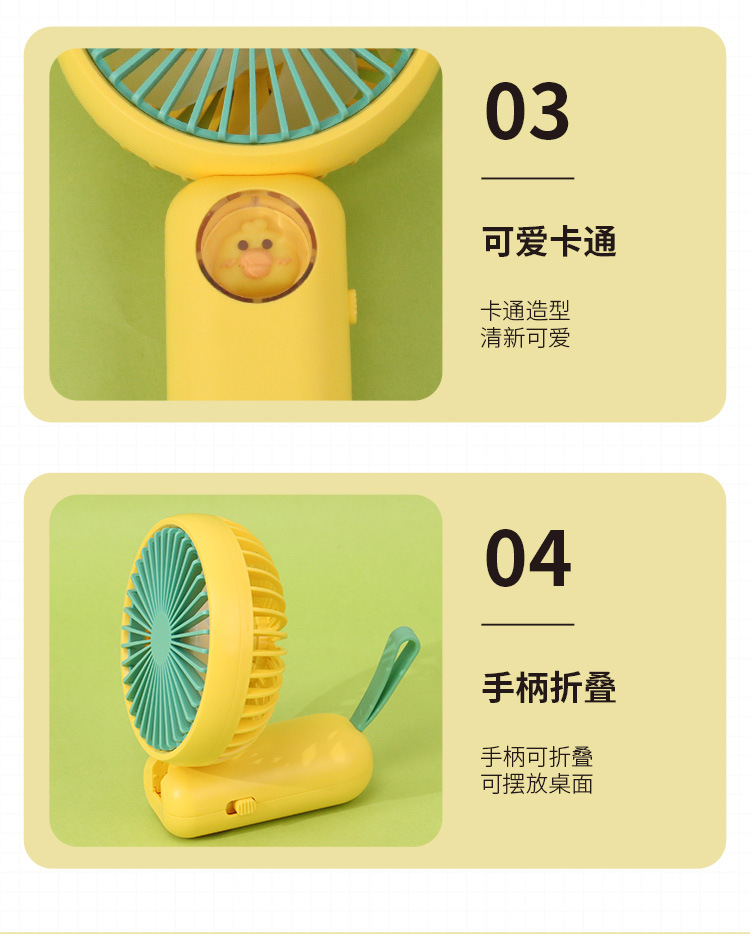 新款简约手持折叠小风扇迷你便携式卡通电扇 USB充电风扇厂家批发
