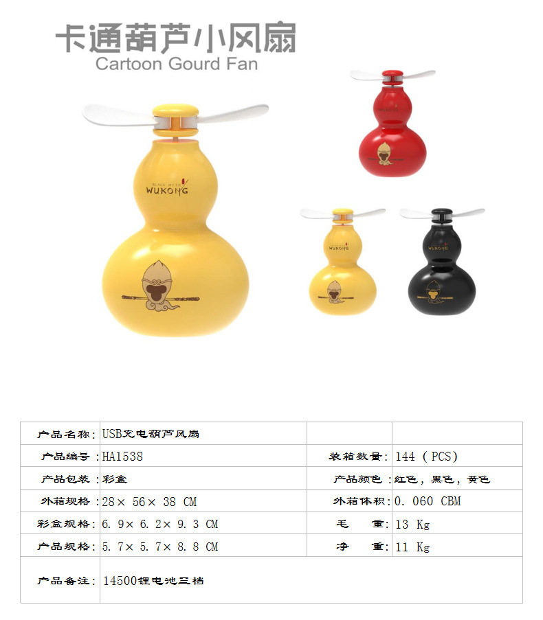 卡通小葫芦小风扇便携式迷你 USB充电手持小电扇夏日学生风扇批发