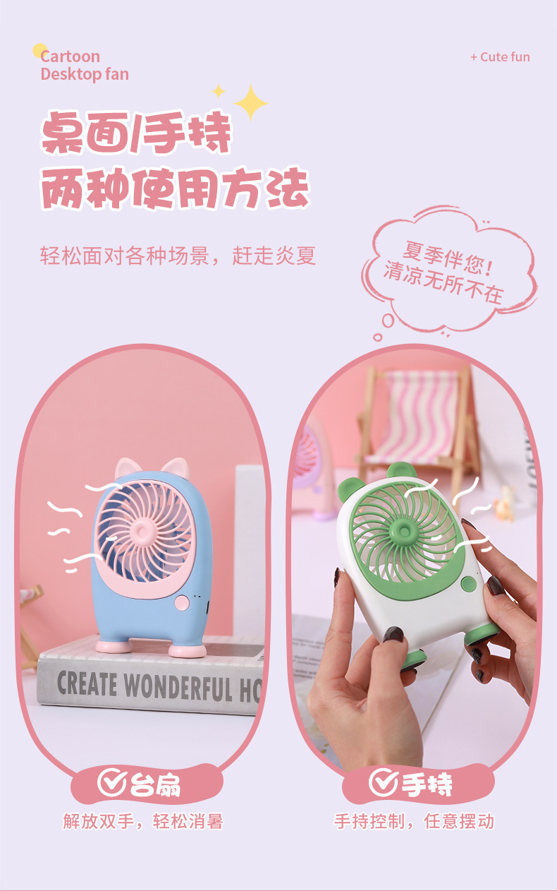 新款卡通桌面小风扇 usb充电创意手持大风力儿童礼物电扇厂家批发