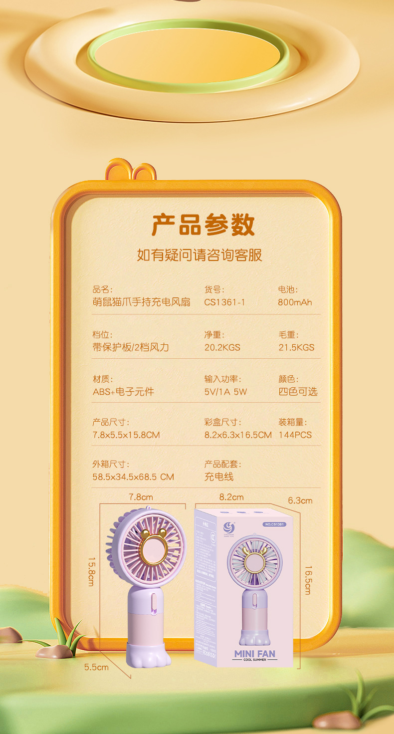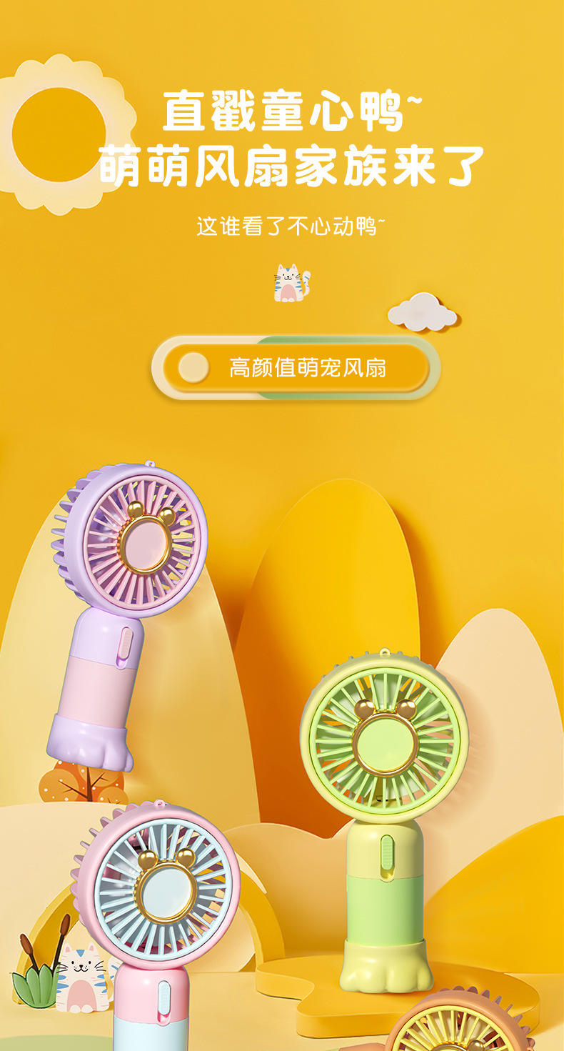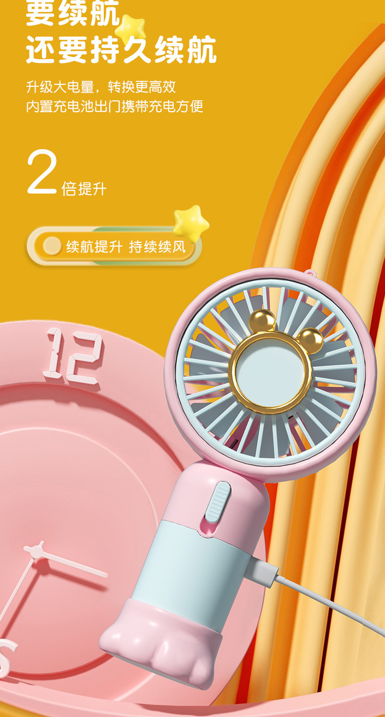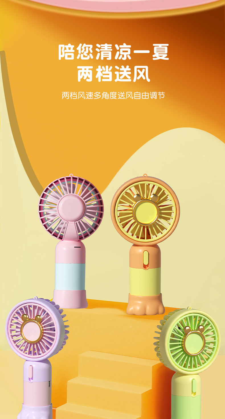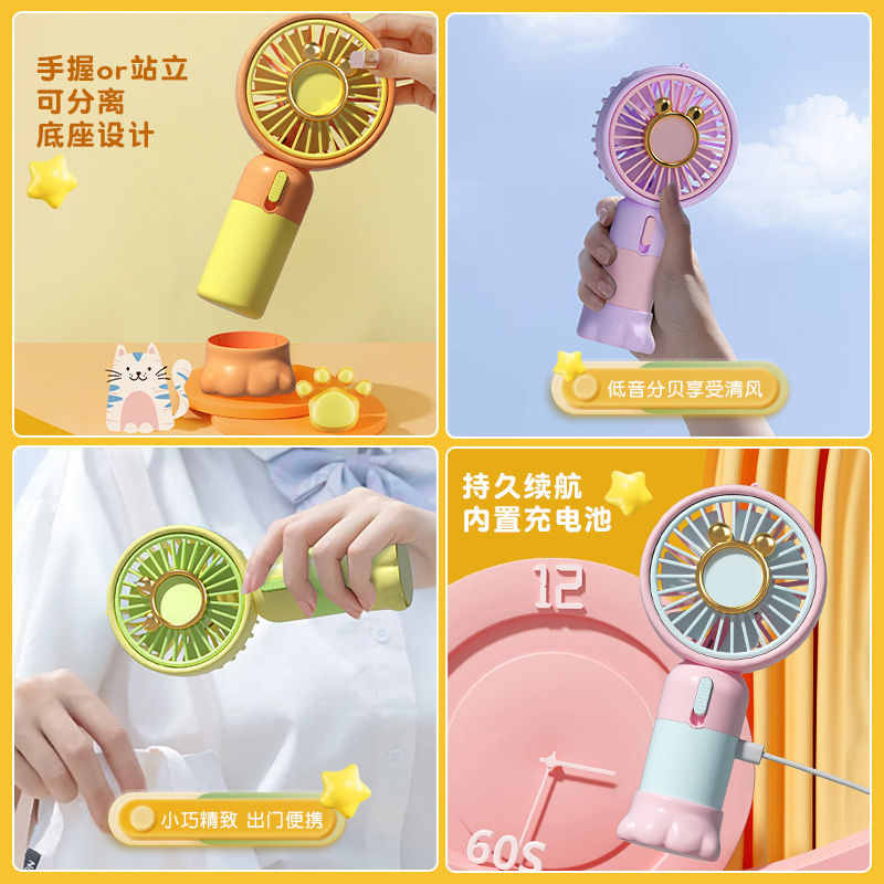 创意撞色拼接卡通可爱手持小风扇usb充电迷你静音儿童学生电扇厂
