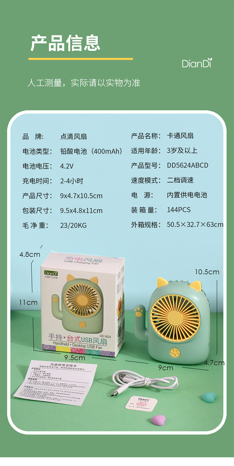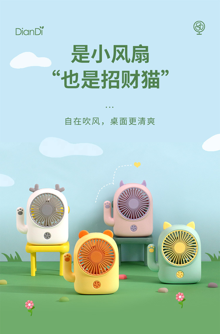 可爱猫咪手持小风扇迷你便携式卡通电扇批发 USB充电学生礼品风扇