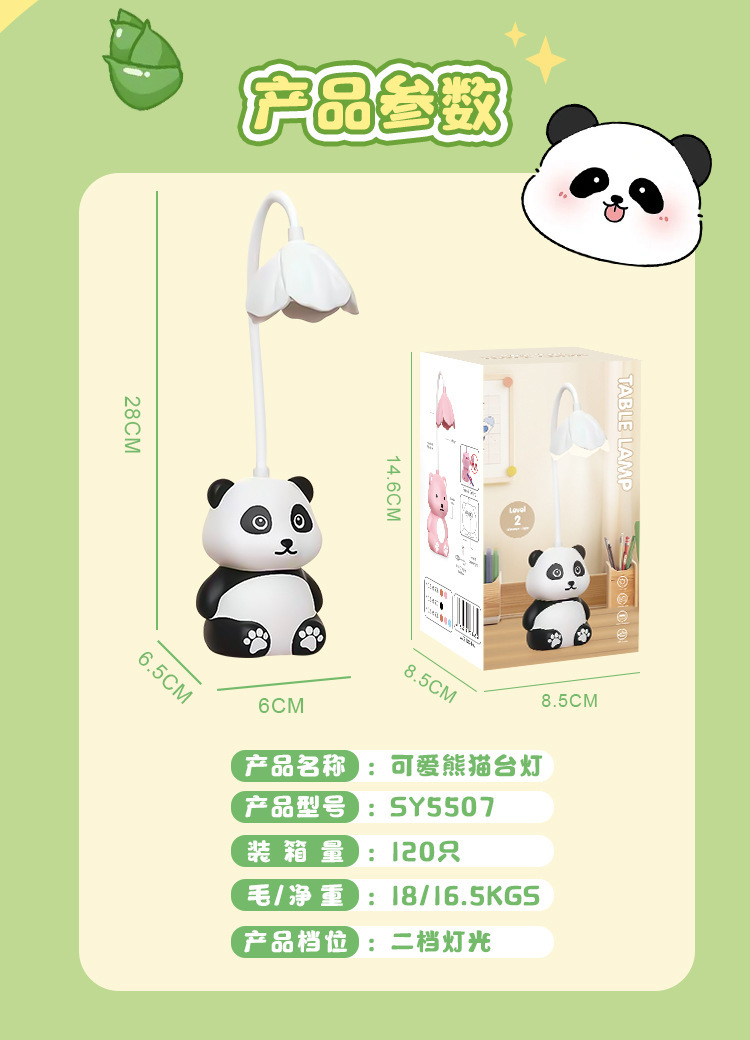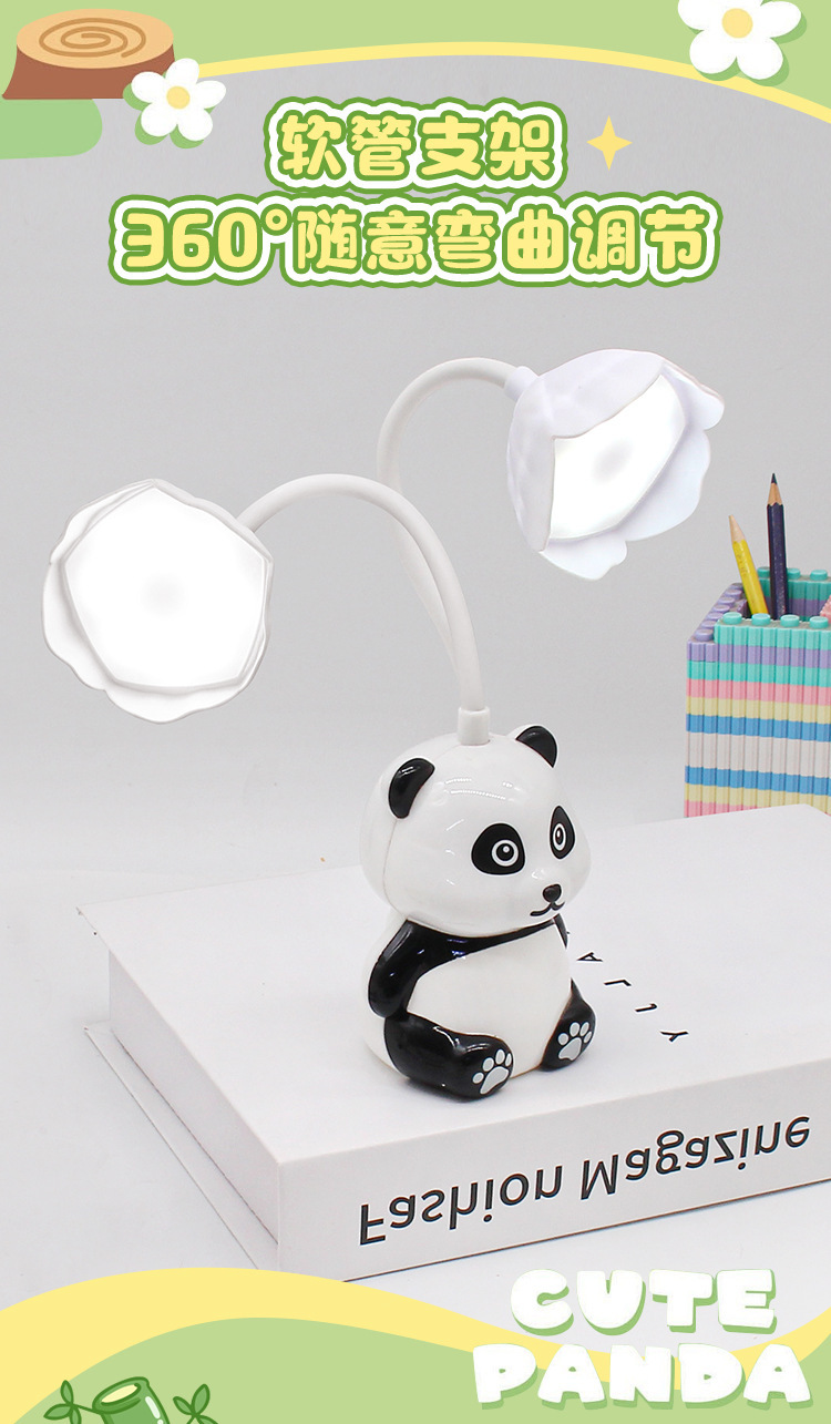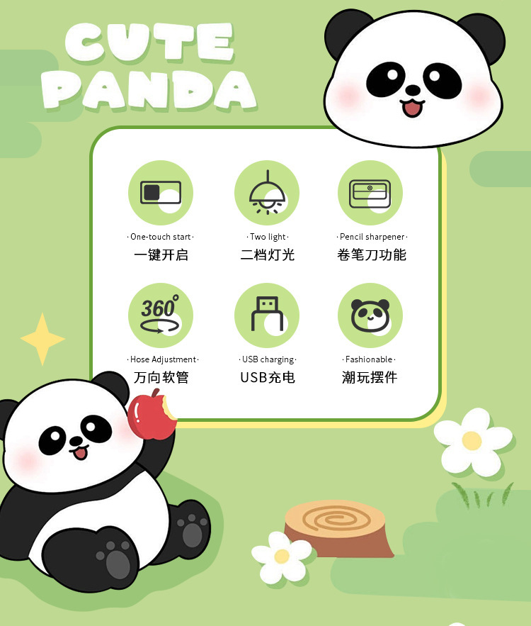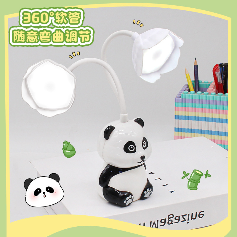 LED多功能学生学习充电台灯卡通熊猫护眼小夜灯配铅笔削二档灯光