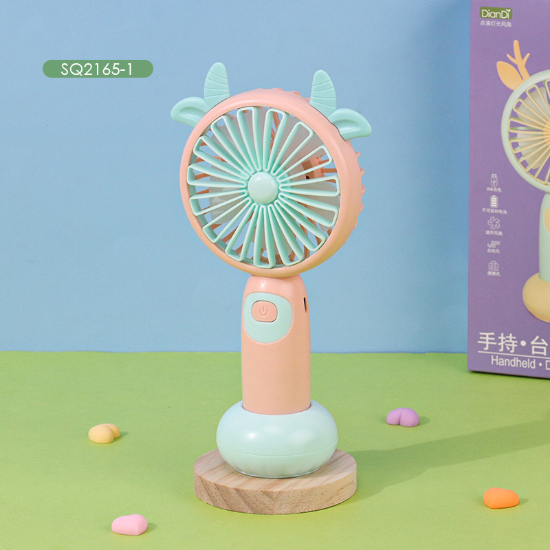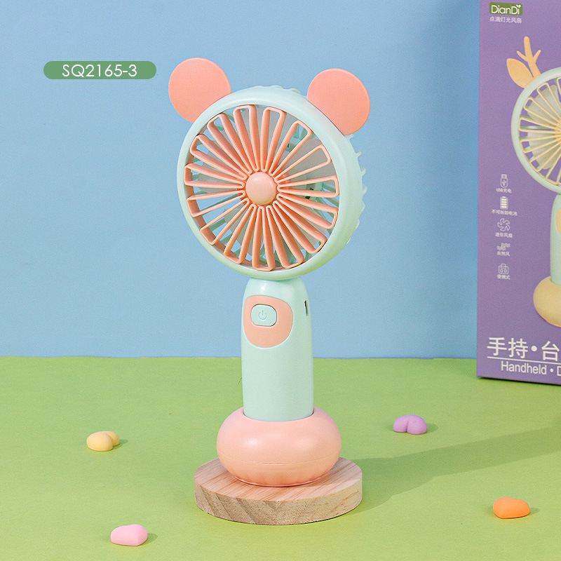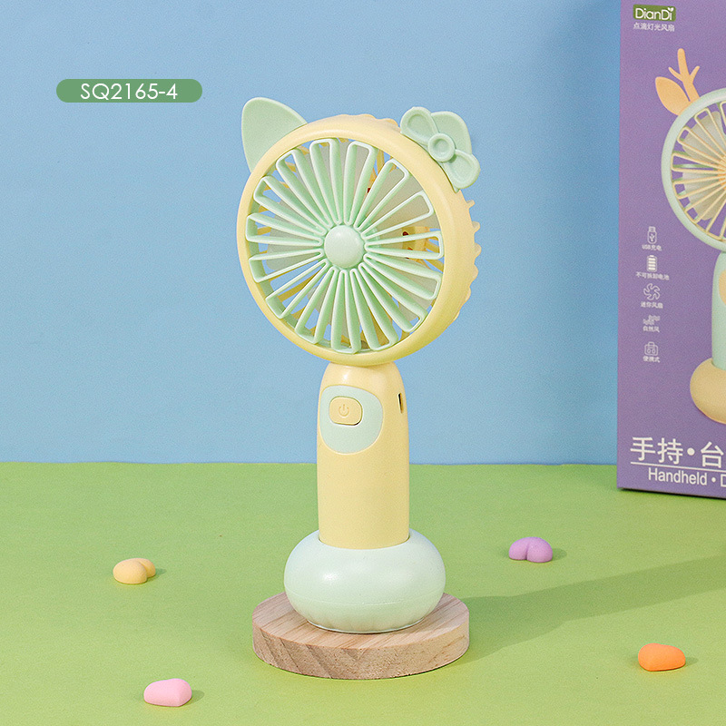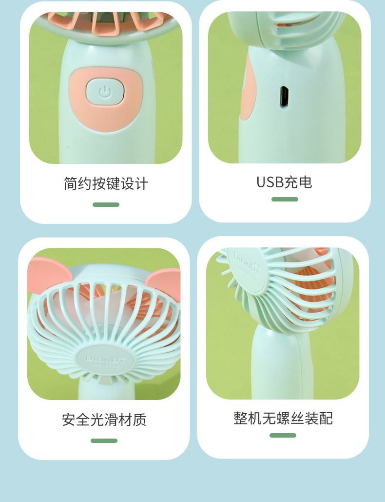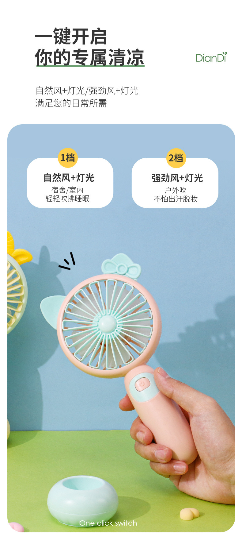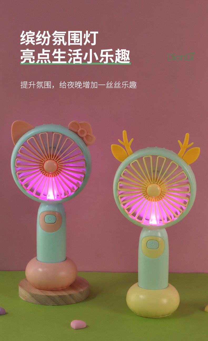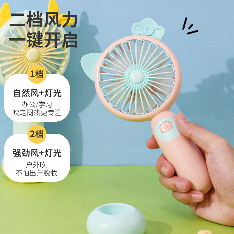 卡通可爱手持迷你静音灯光款小风扇 usb充电便携式电扇厂家批发