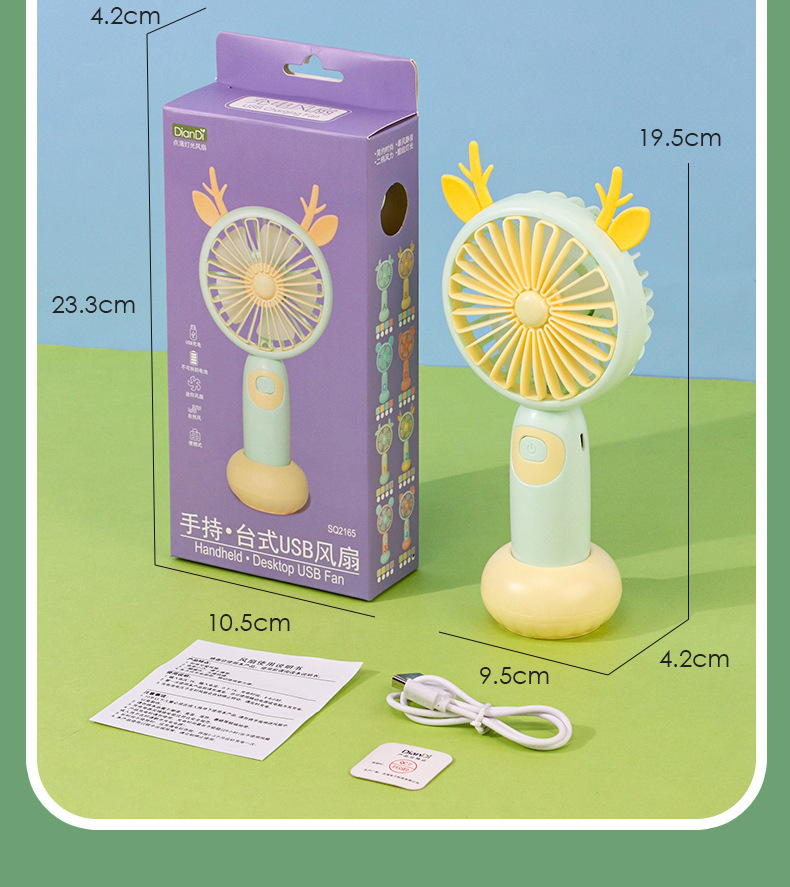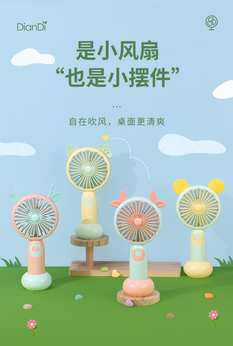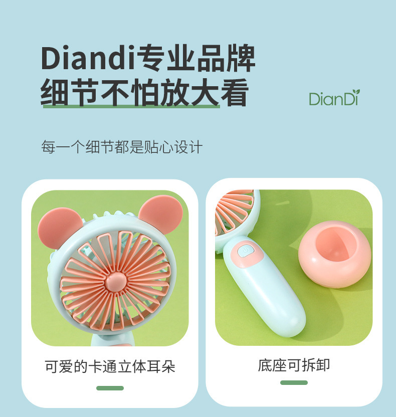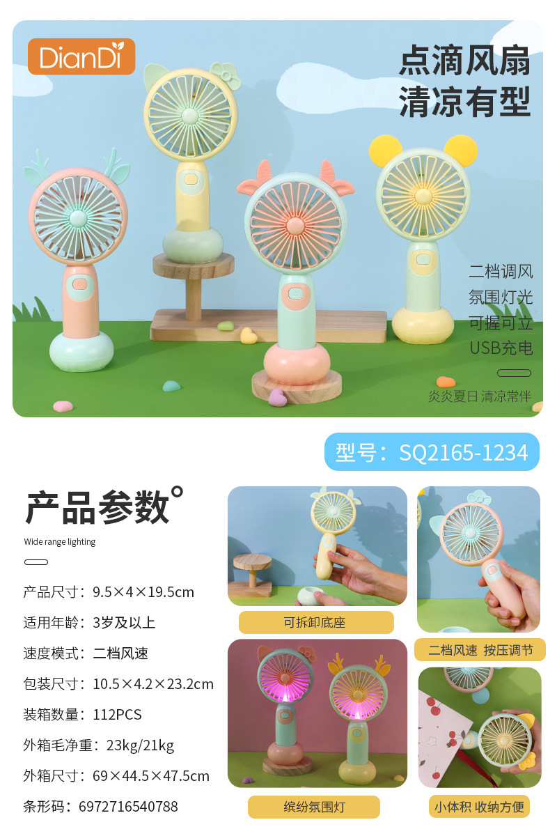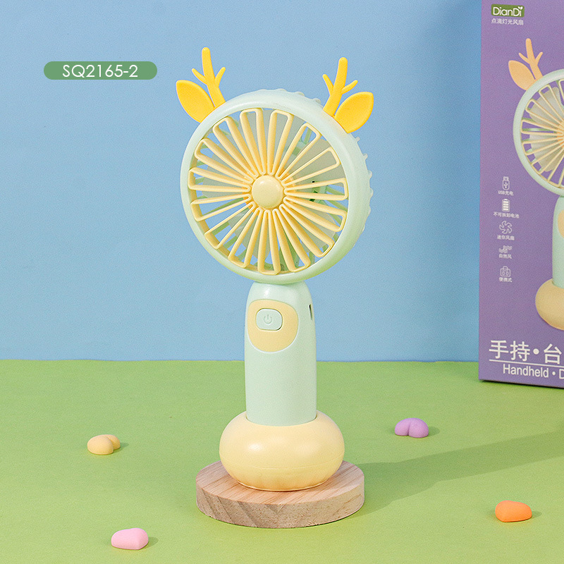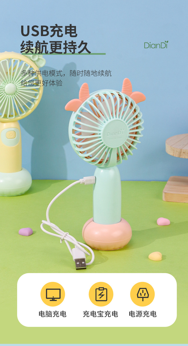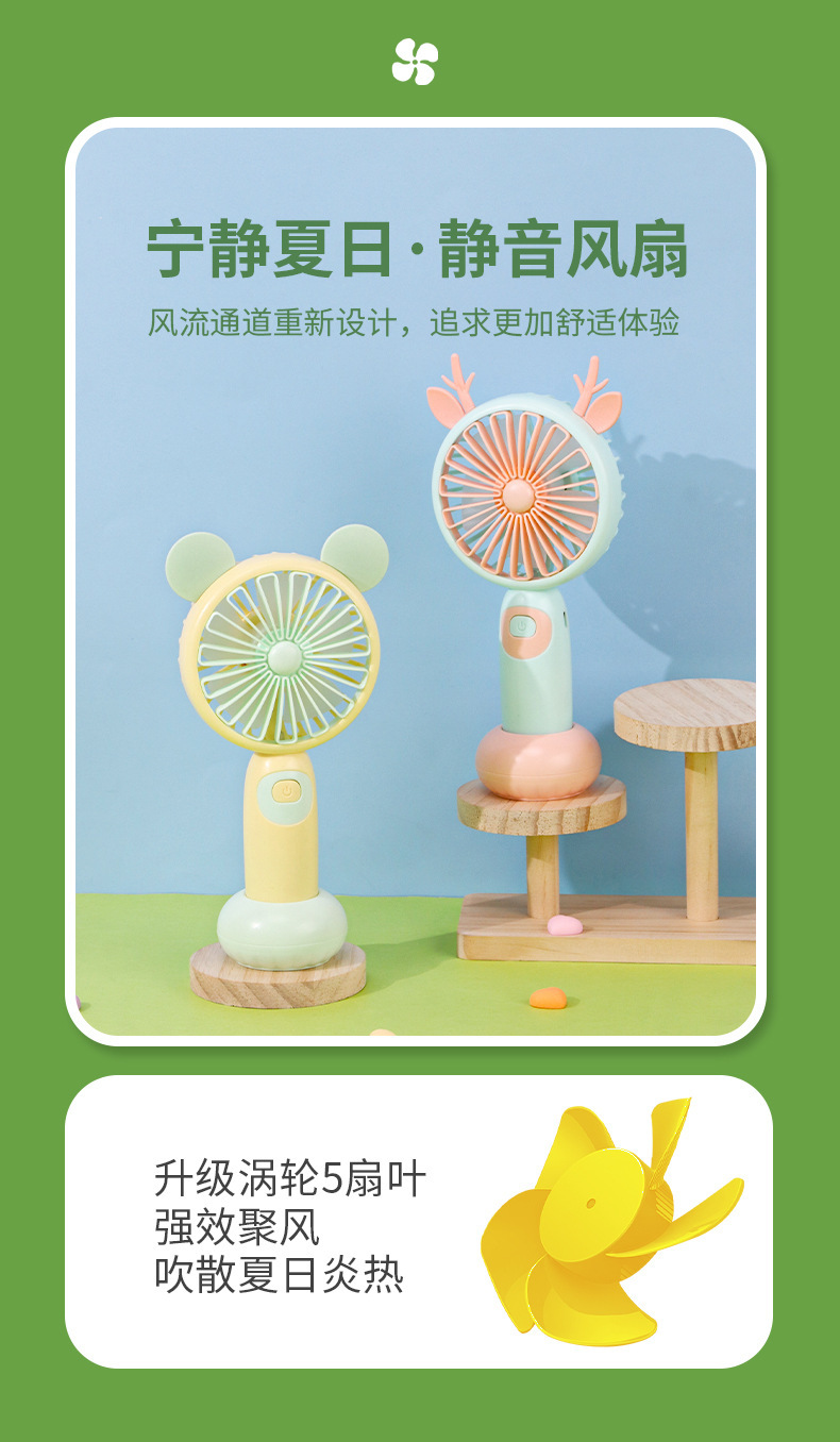 卡通可爱手持迷你静音灯光款小风扇 usb充电便携式电扇厂家批发