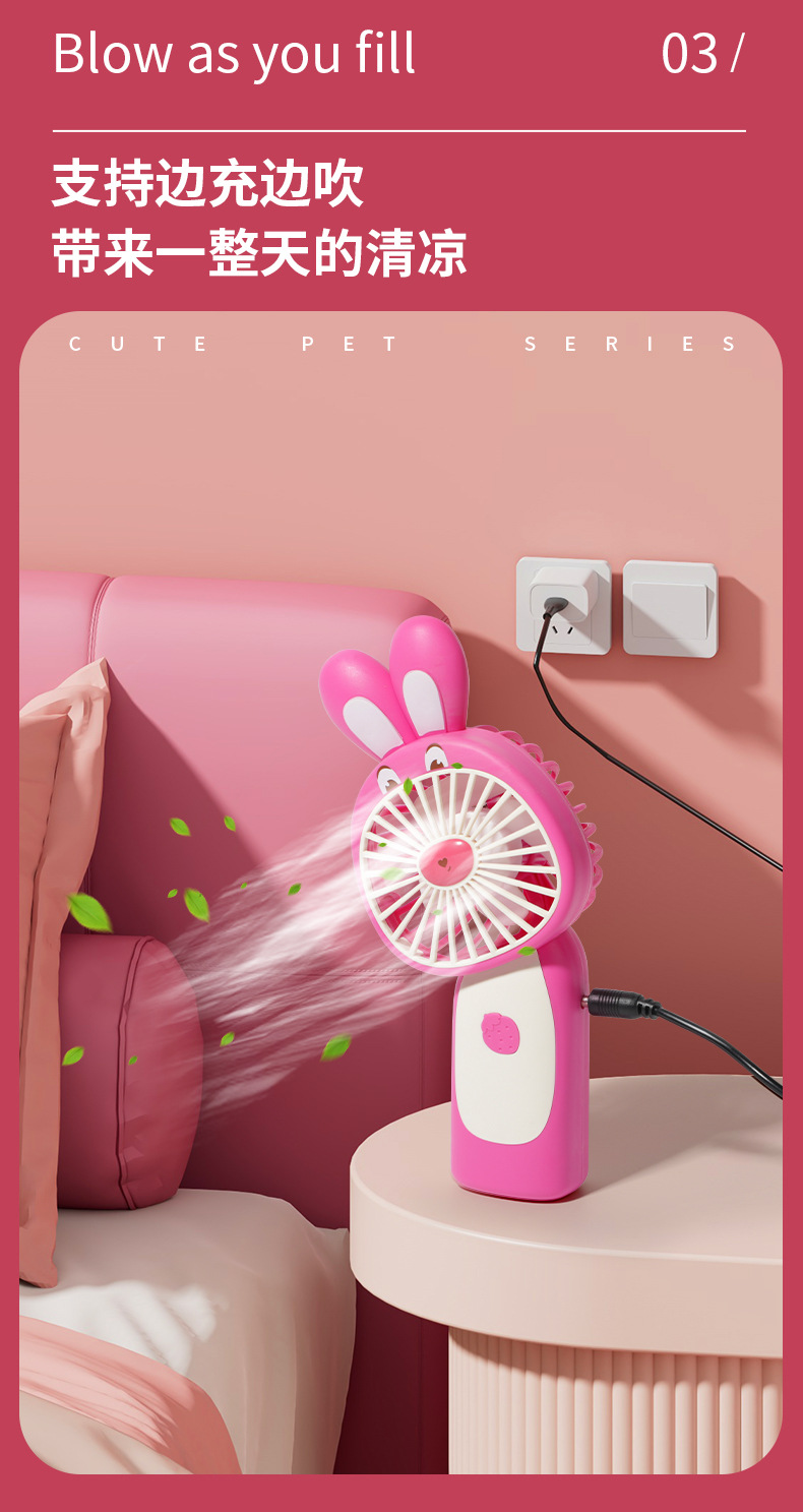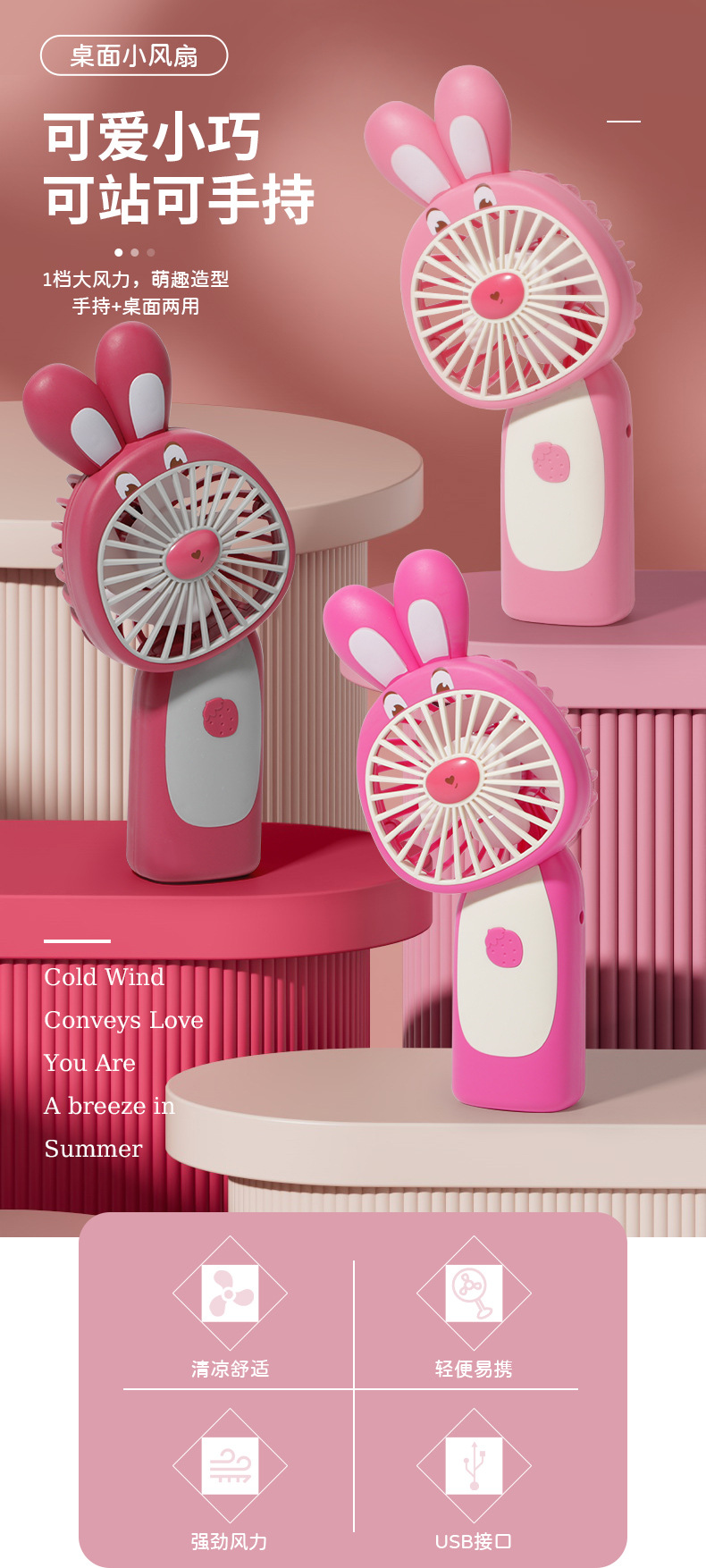 新款卡通手持小风扇厂家批发 USB充电便携式迷你儿童印制LOGO电扇