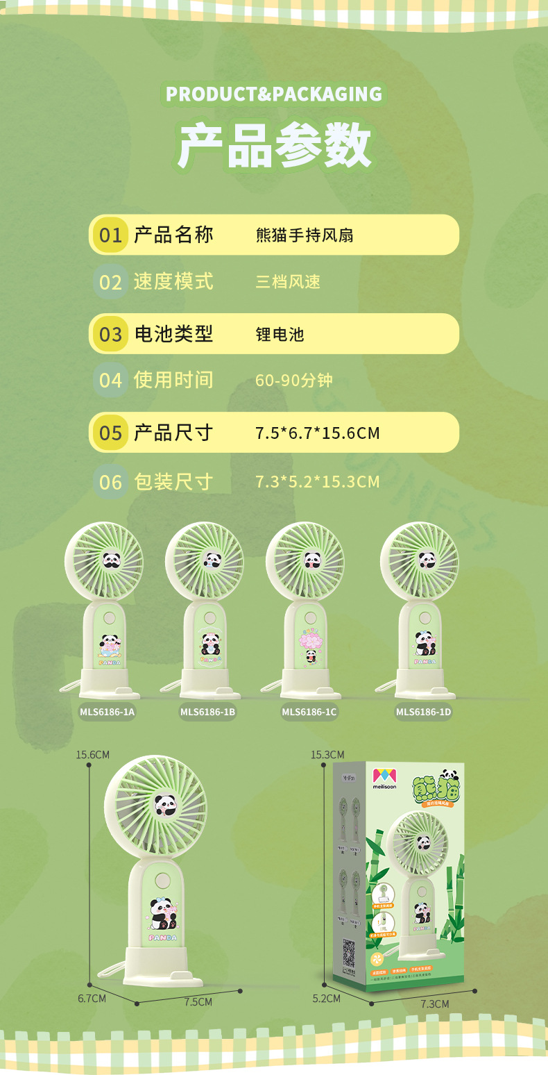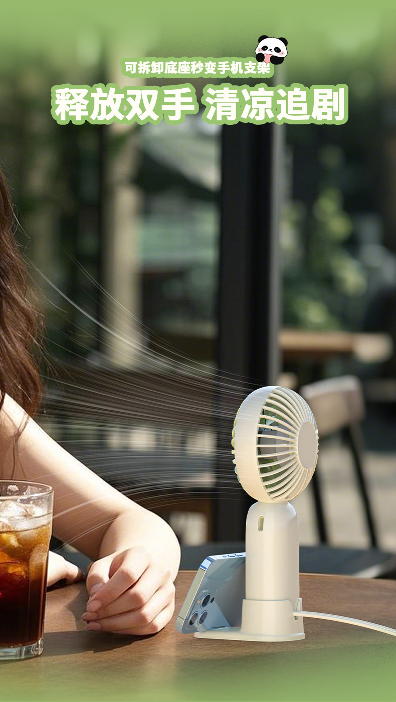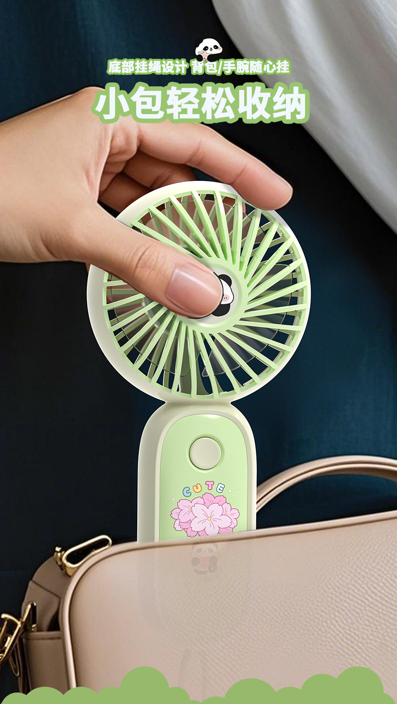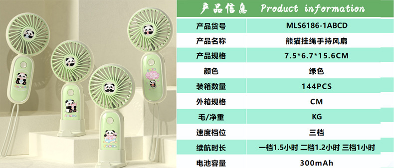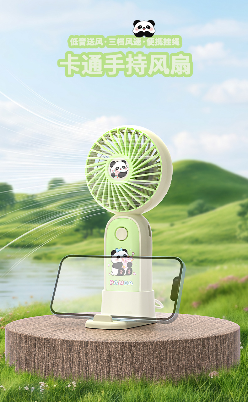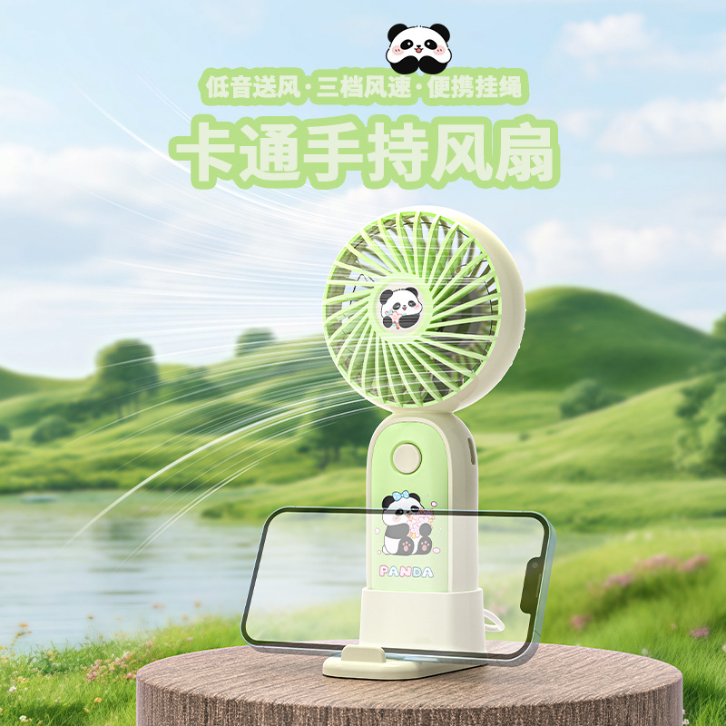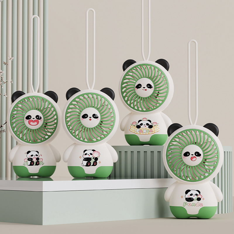 可爱熊猫手持小风扇USB充电风扇迷你便携式卡通跨境桌面风扇厂家
