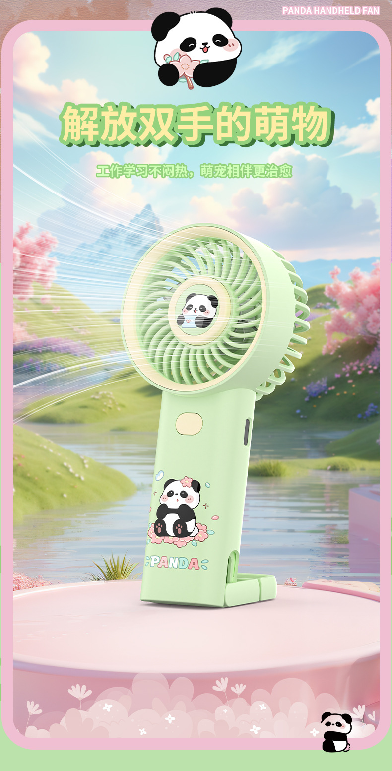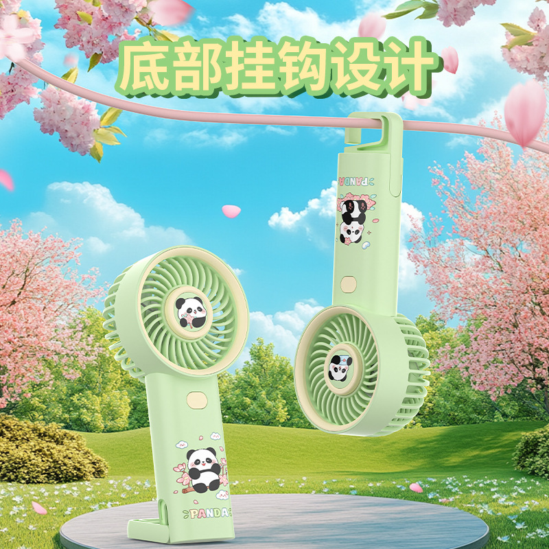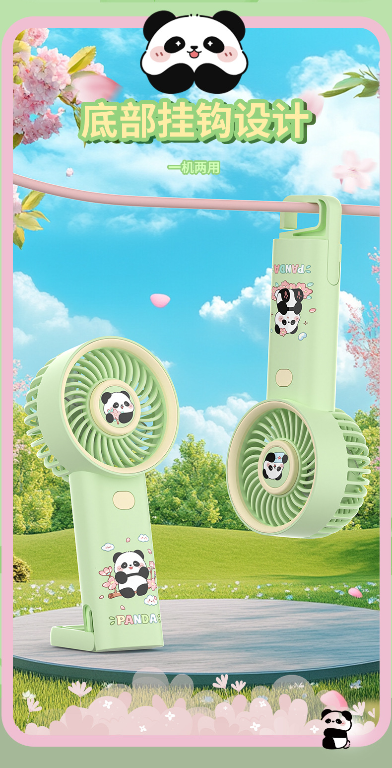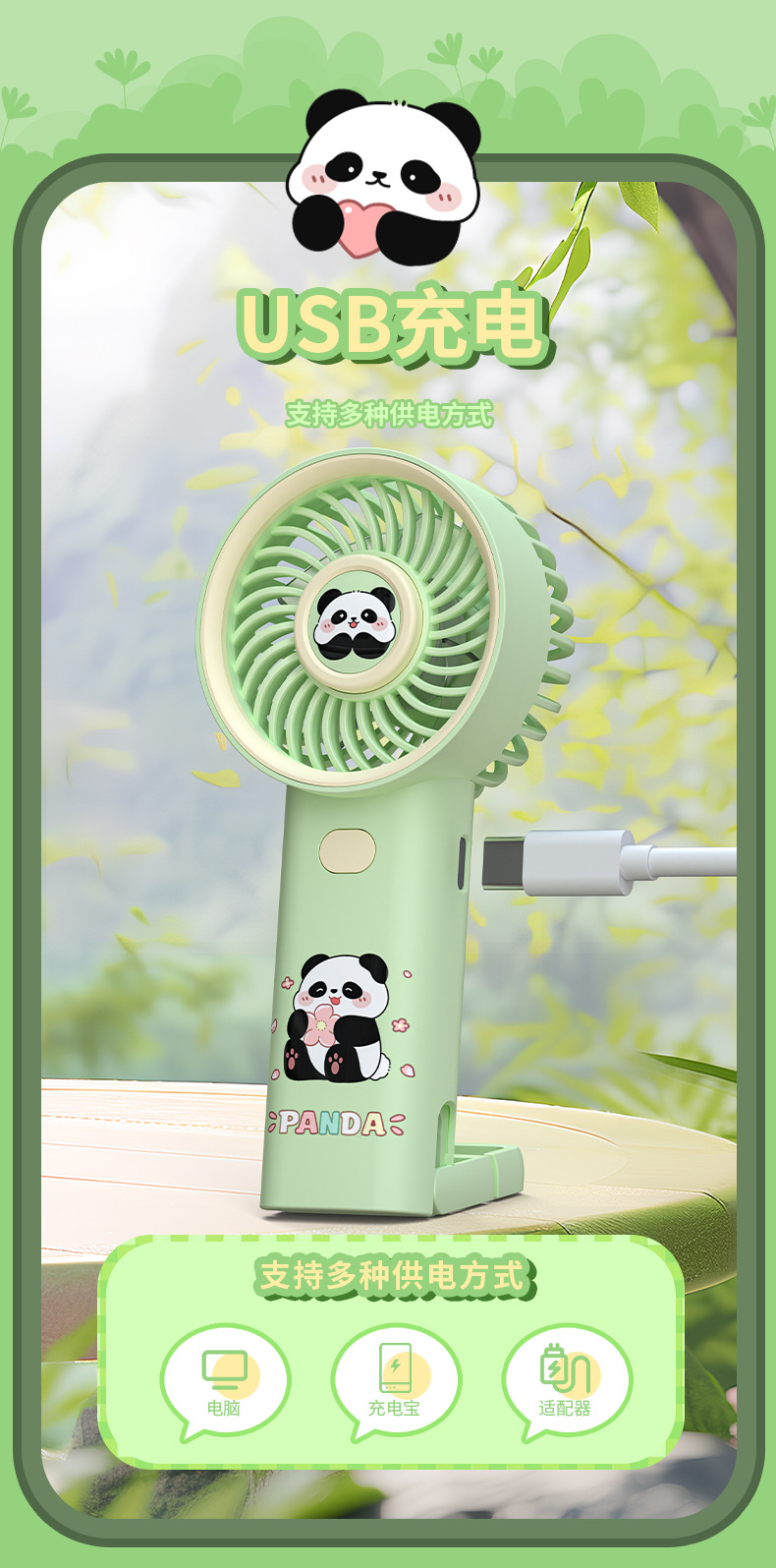 创意熊猫手持小风扇迷你USB充电风扇便携式挂钩卡通学生礼品风扇