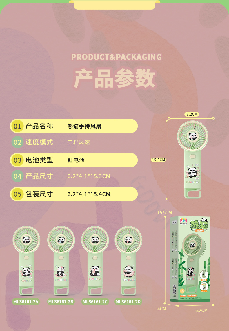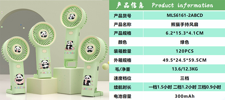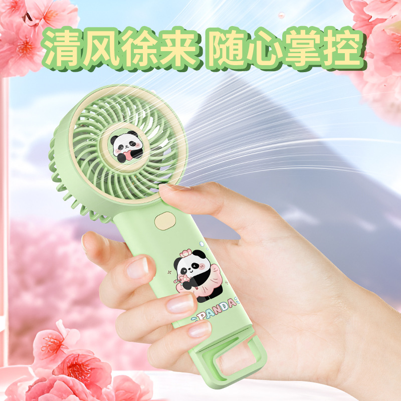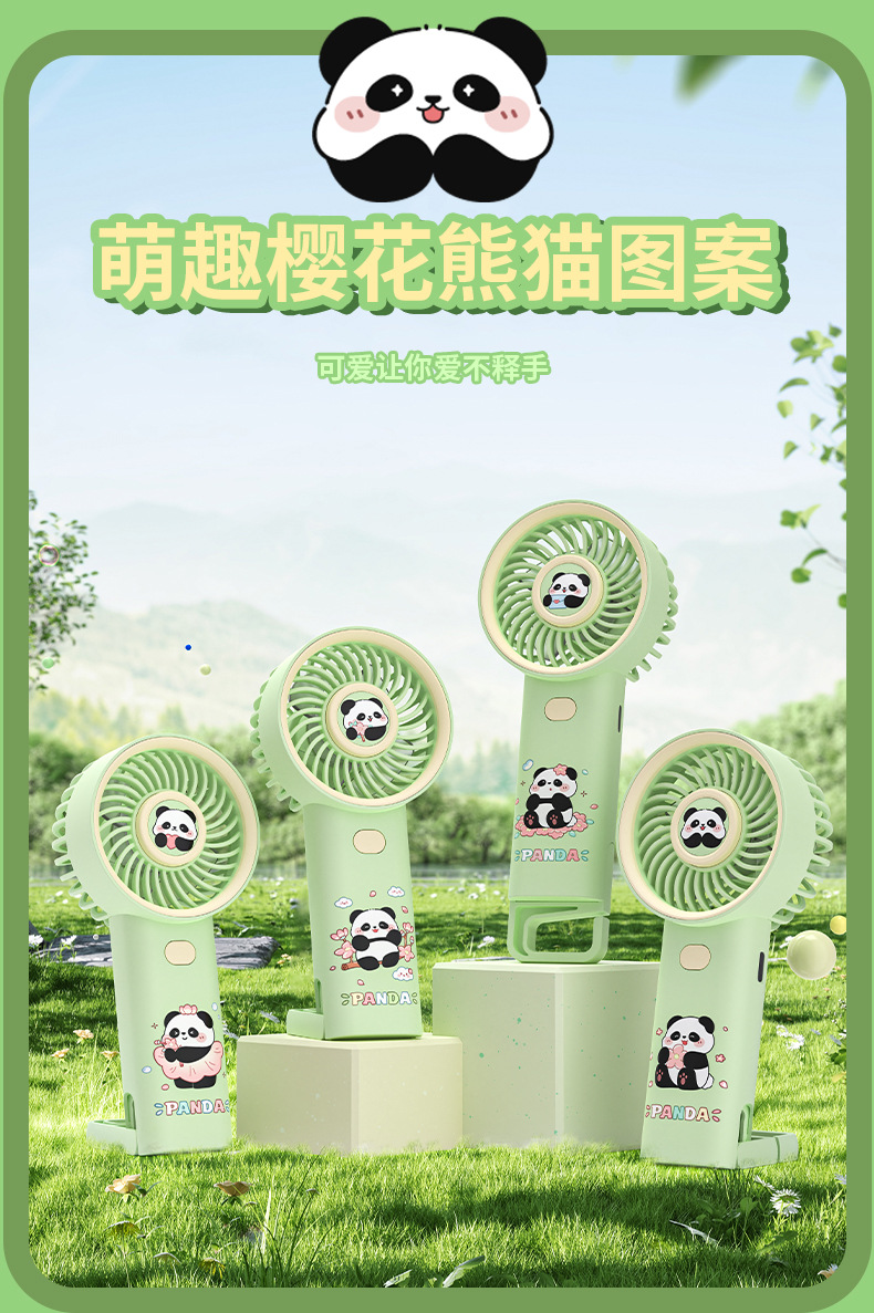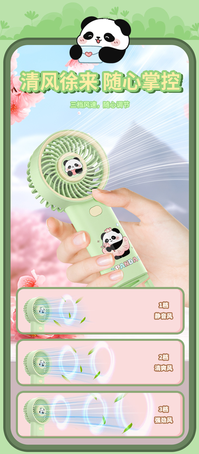 创意熊猫手持小风扇迷你USB充电风扇便携式挂钩卡通学生礼品风扇