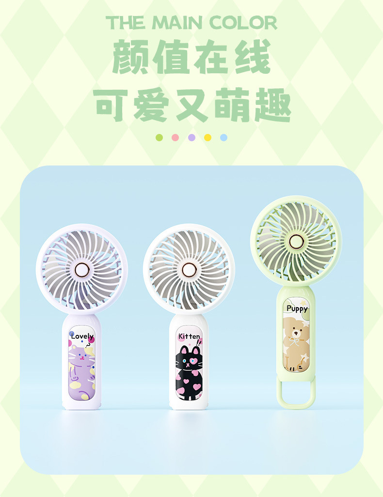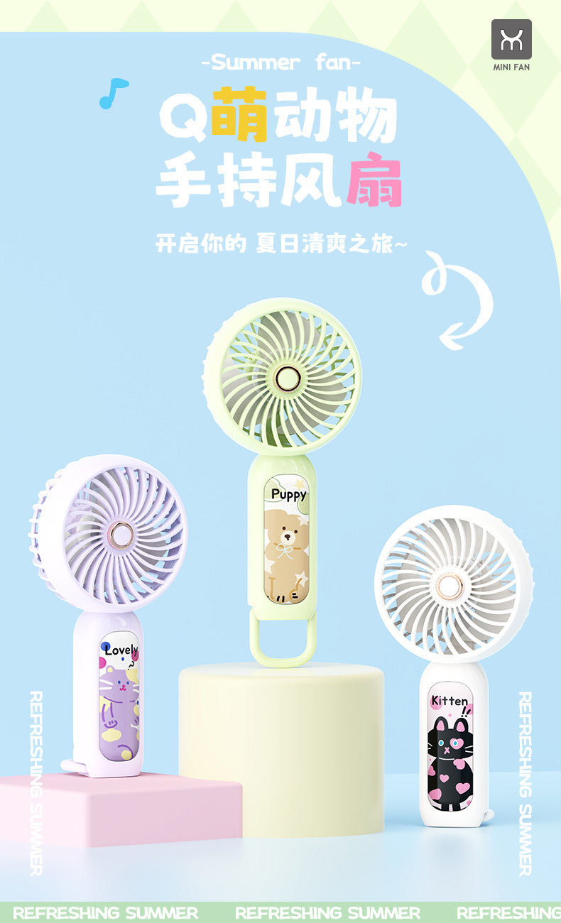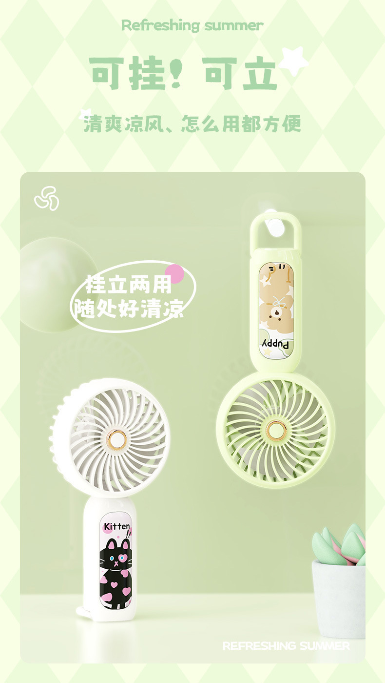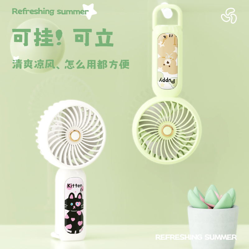 新款简约手持小风扇便携式挂钩学生桌面USB充电迷你跨境风扇批发