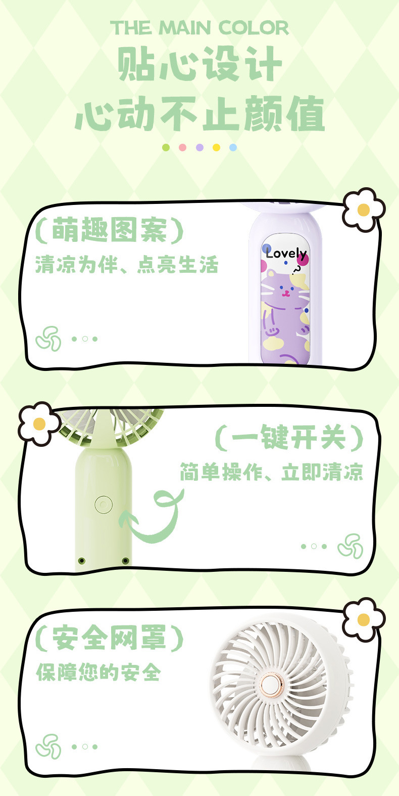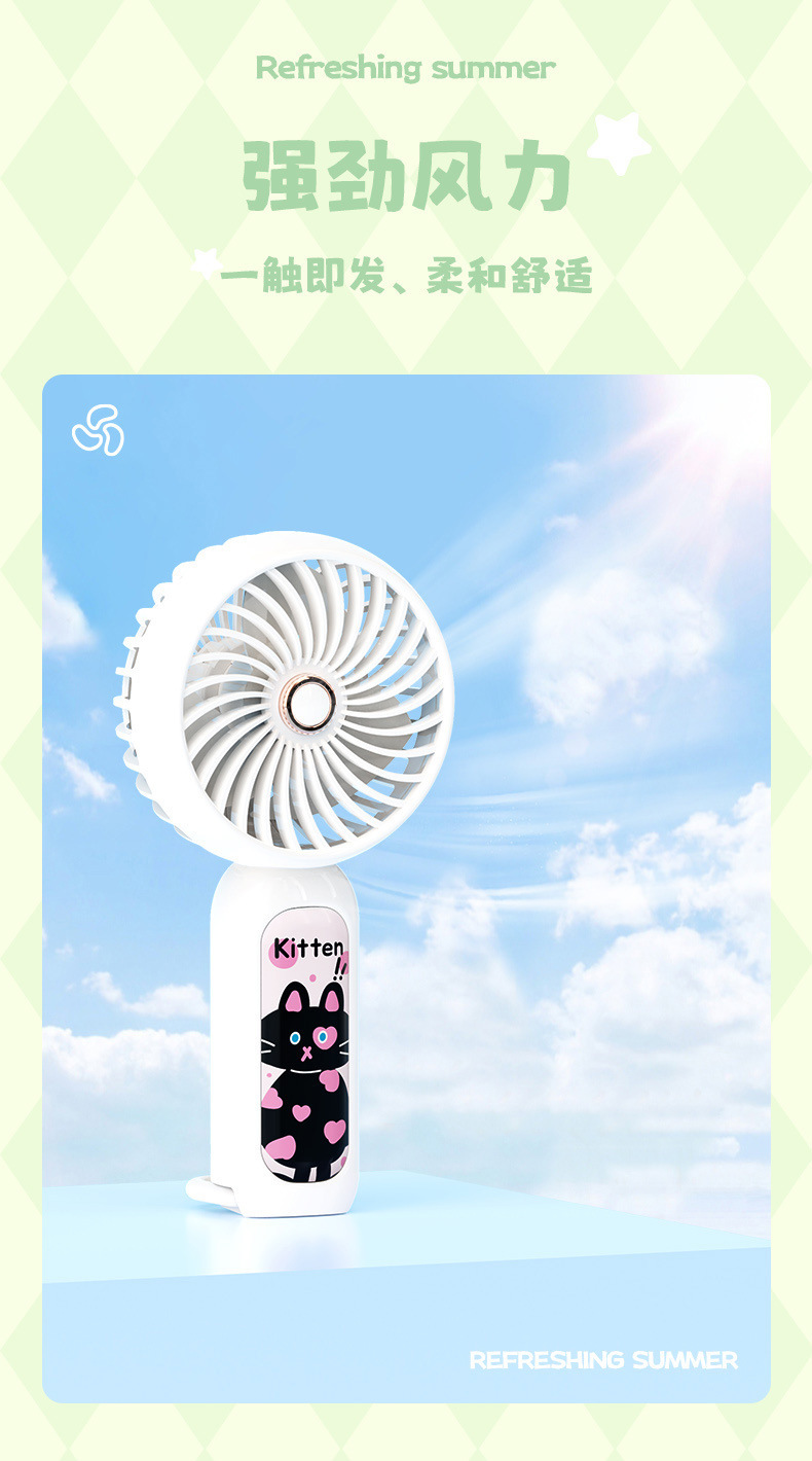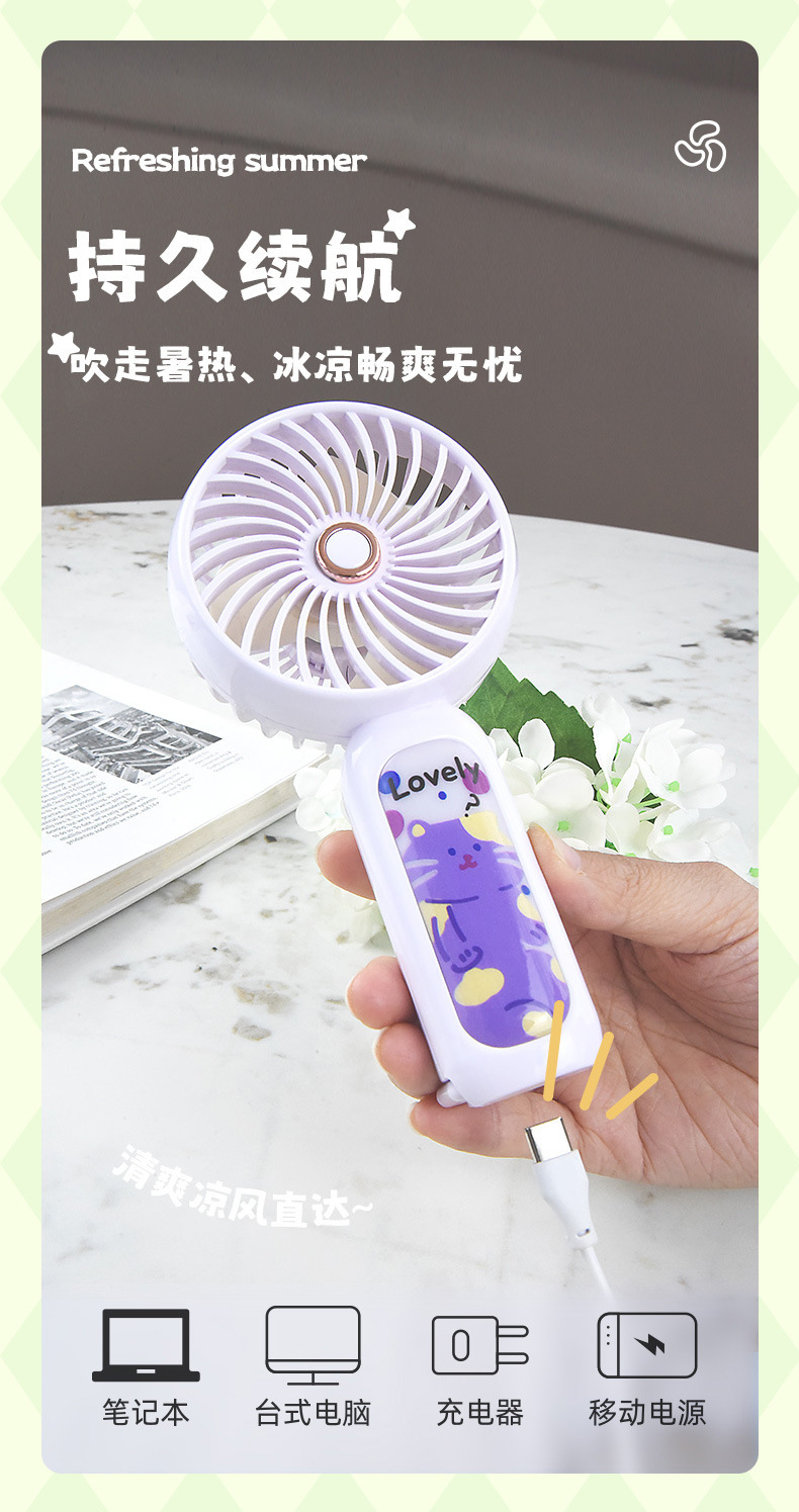 新款简约手持小风扇便携式挂钩学生桌面USB充电迷你跨境风扇批发